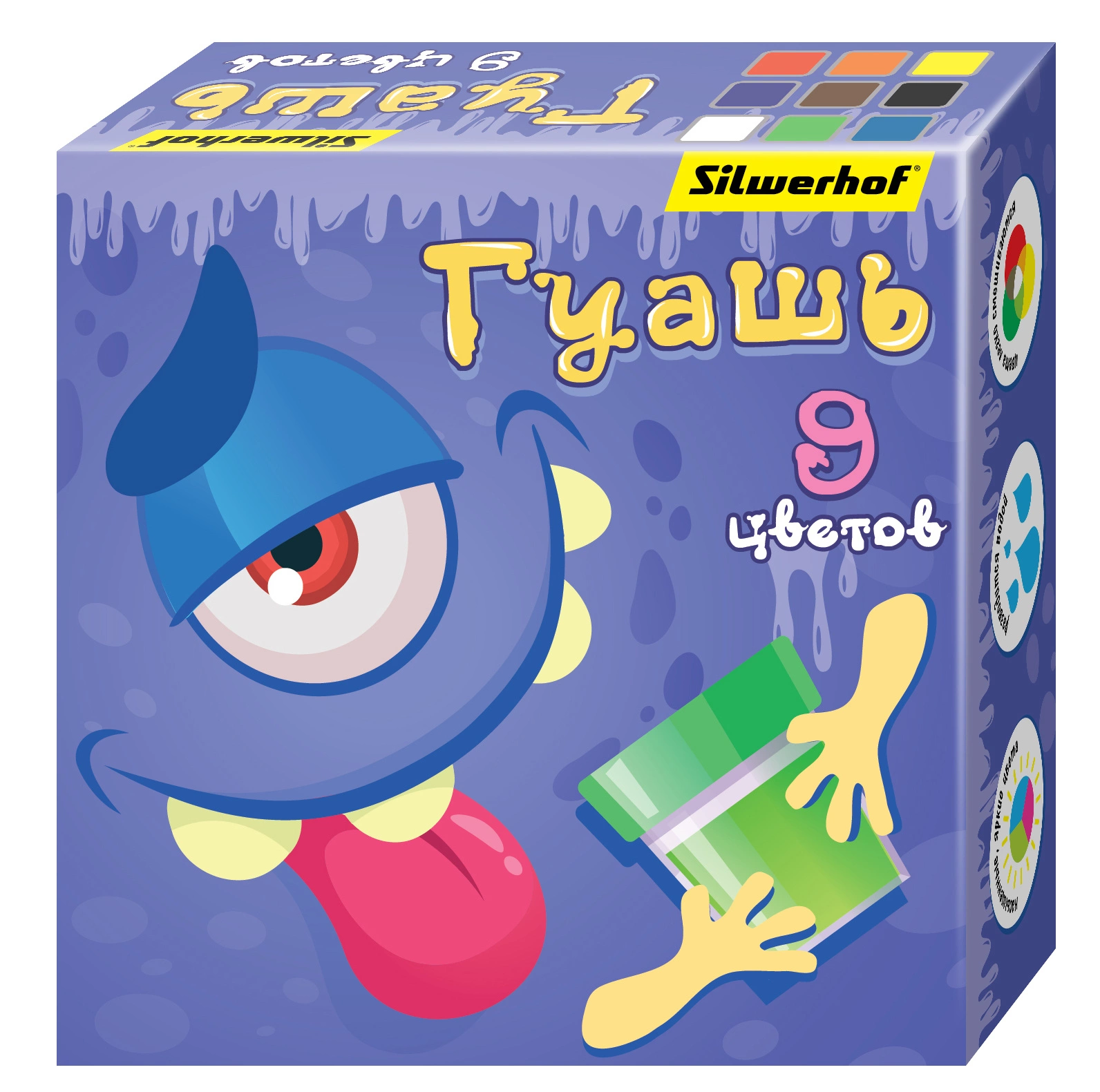 Гуашь Silwerhof Монстрики 9цв. бан. 20мл. картон.кор.