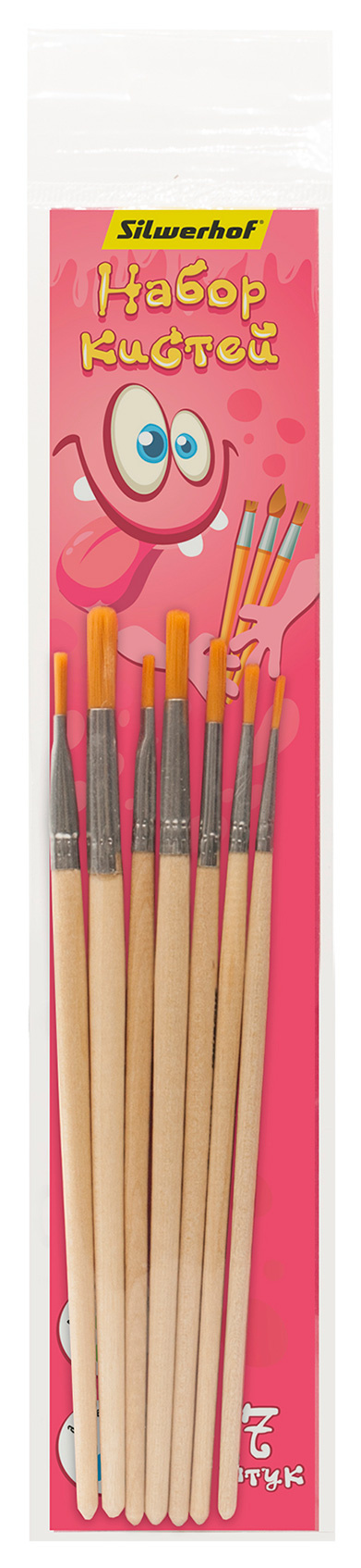 Набор кистей Silwerhof Монстрики (наб.7шт) синт.круг.№1-5/плос.№ 4,6 дерев.лакир.ручка