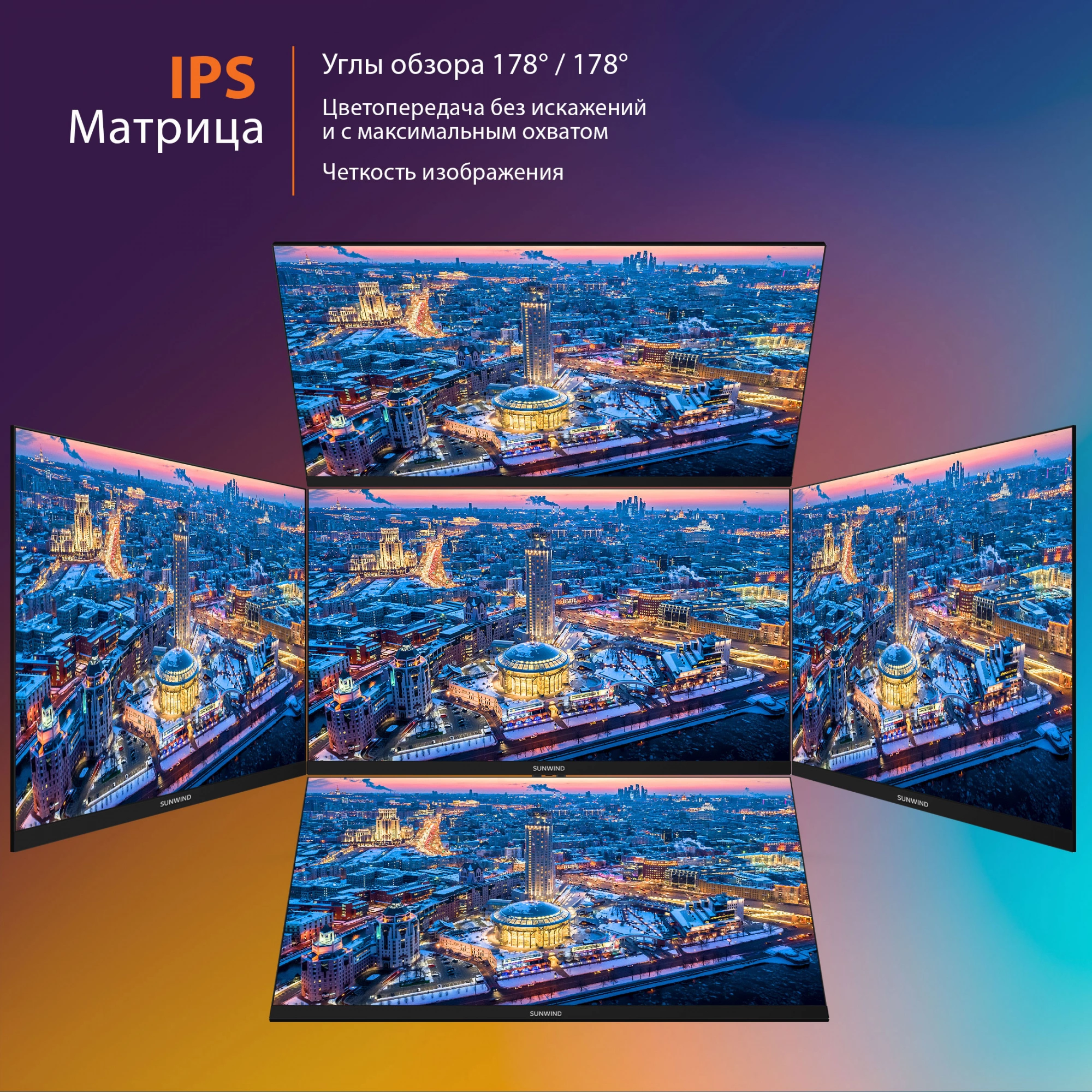 Также прибор воспроизводит видео в формате FULL HD (1080p) с разрешением до 1920х1080 пикселей. Благодаря поддержке HDR10 и широким углам обзора, достигающим 178 градусов по вертикали и горизонтали, происходящее на дисплее выглядит динамично, детально и красочно. Дисплей выполнен по технологии IPS, обеспечивающей оптимальные значения яркости, контрастности и времени отклика. Наклон SunWind SUN-M27BA107 можно подстраивать для комфорта пользователя.