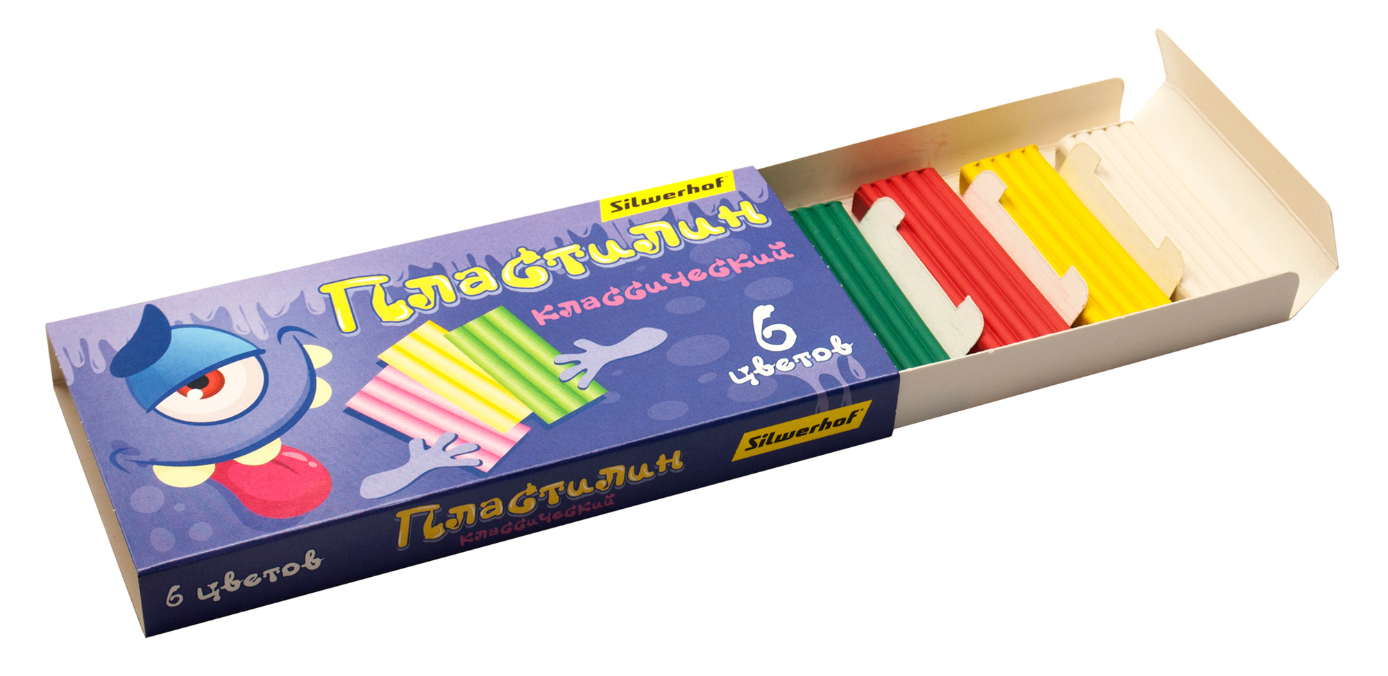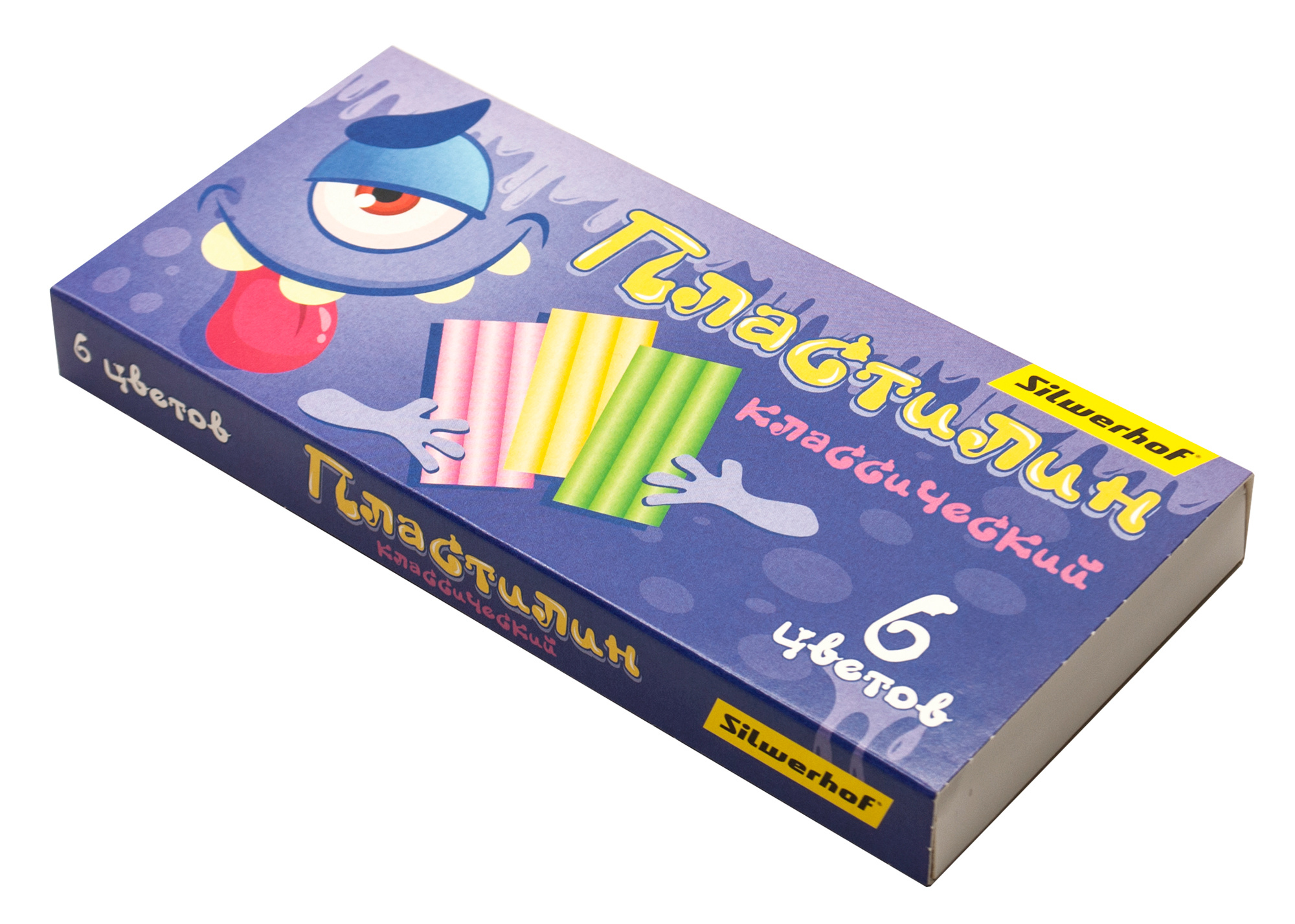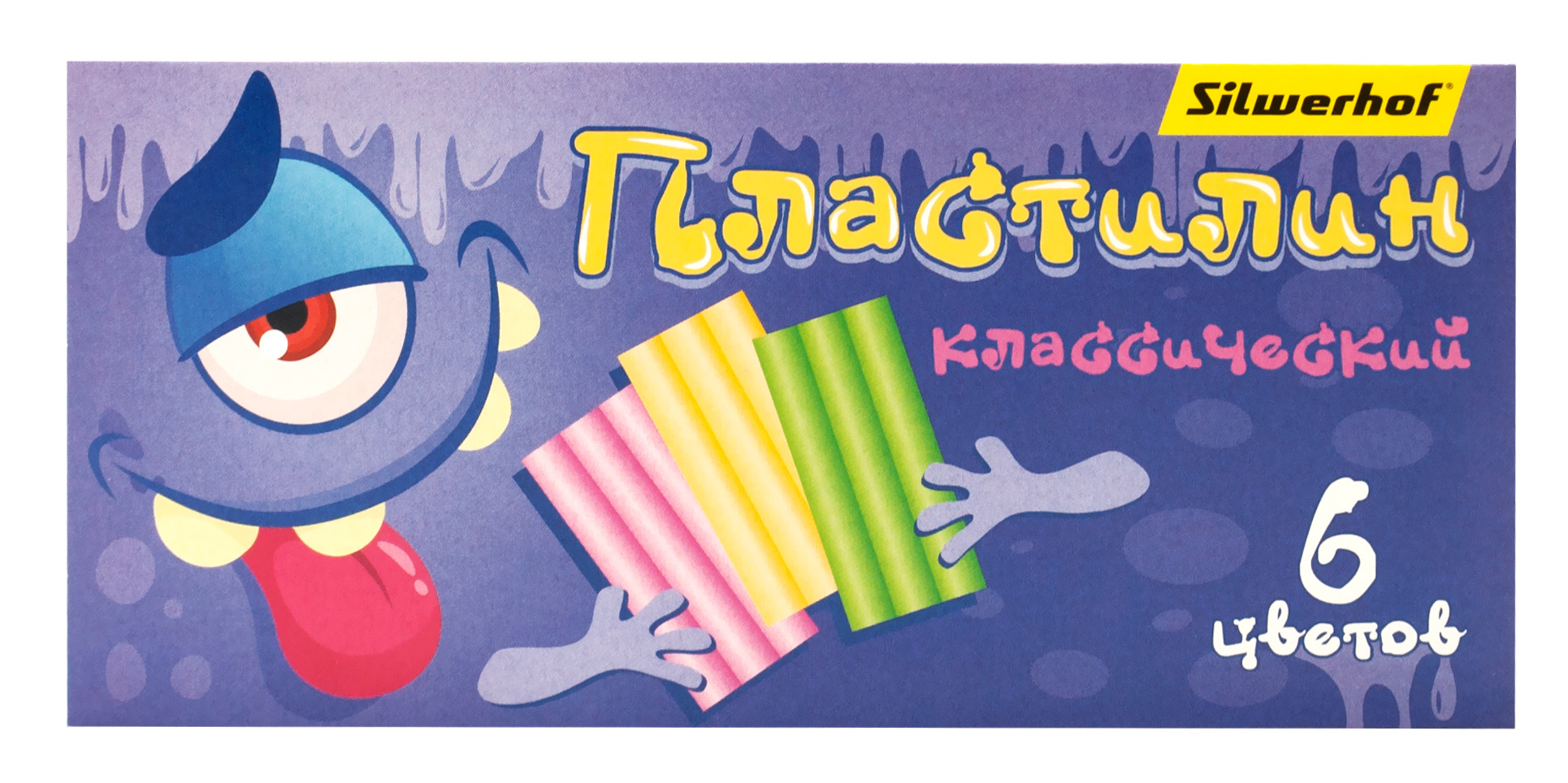 Пластилин Silwerhof Монстрики 6цв. 90гр. стек картон.кор.