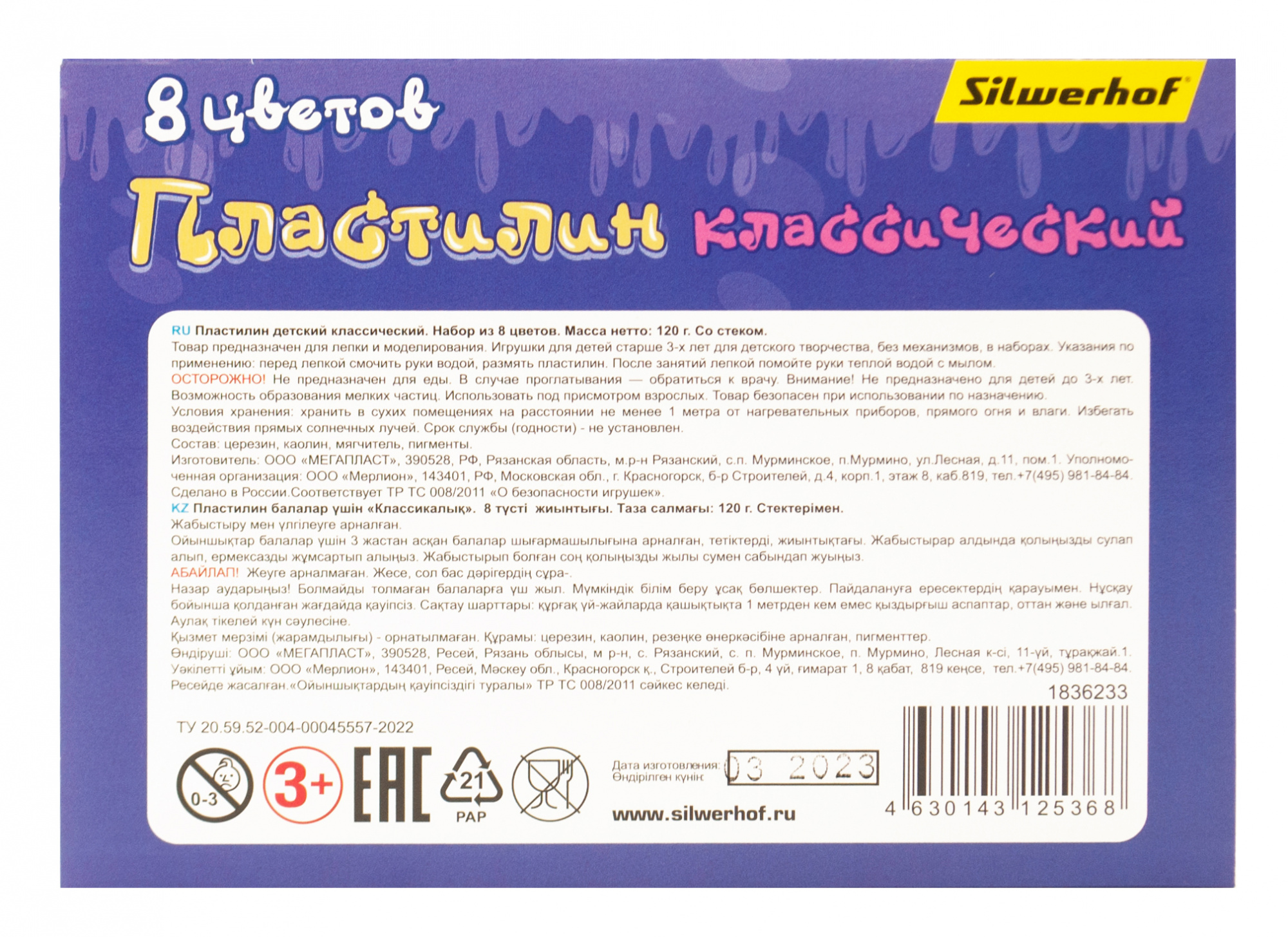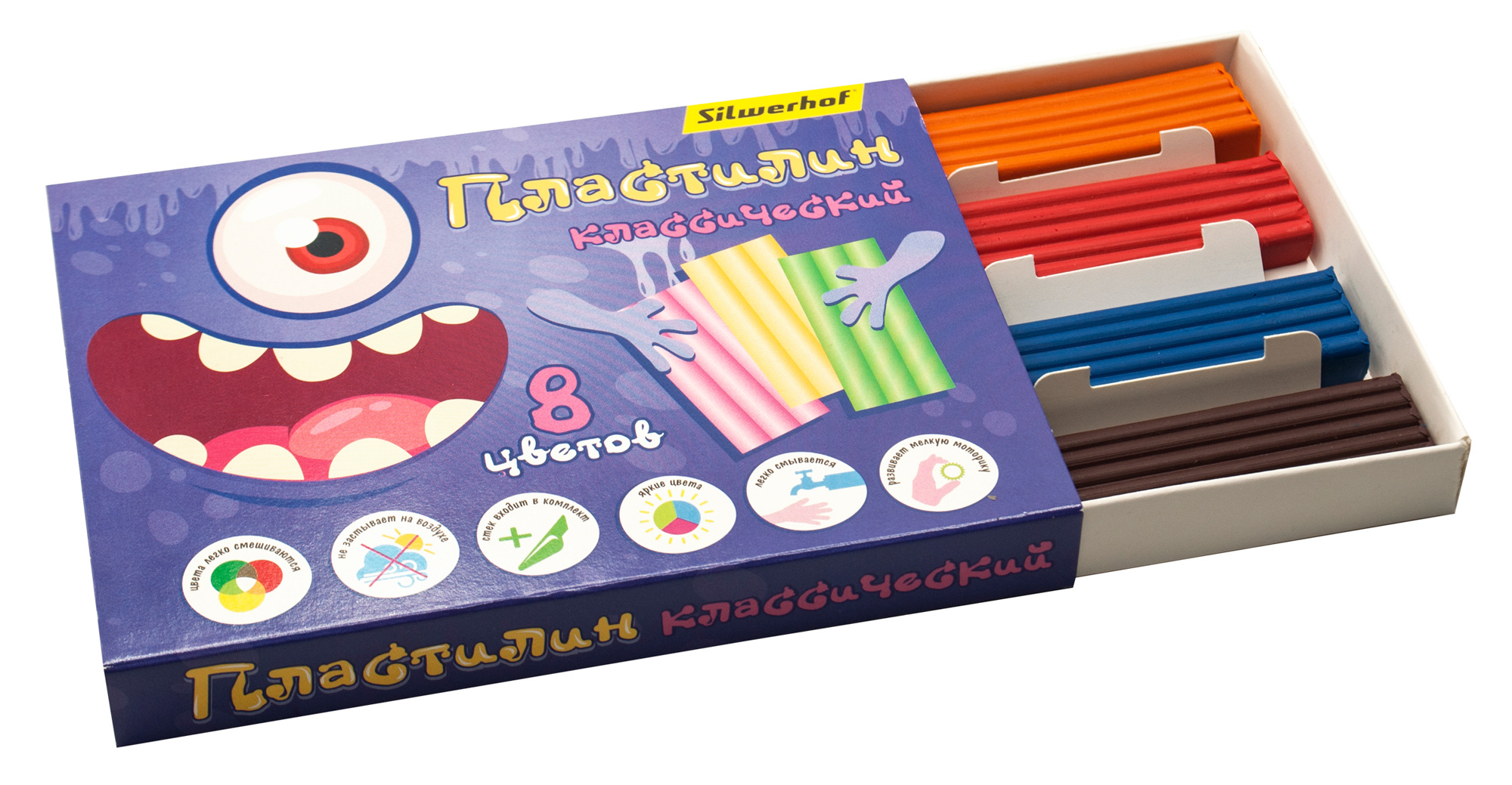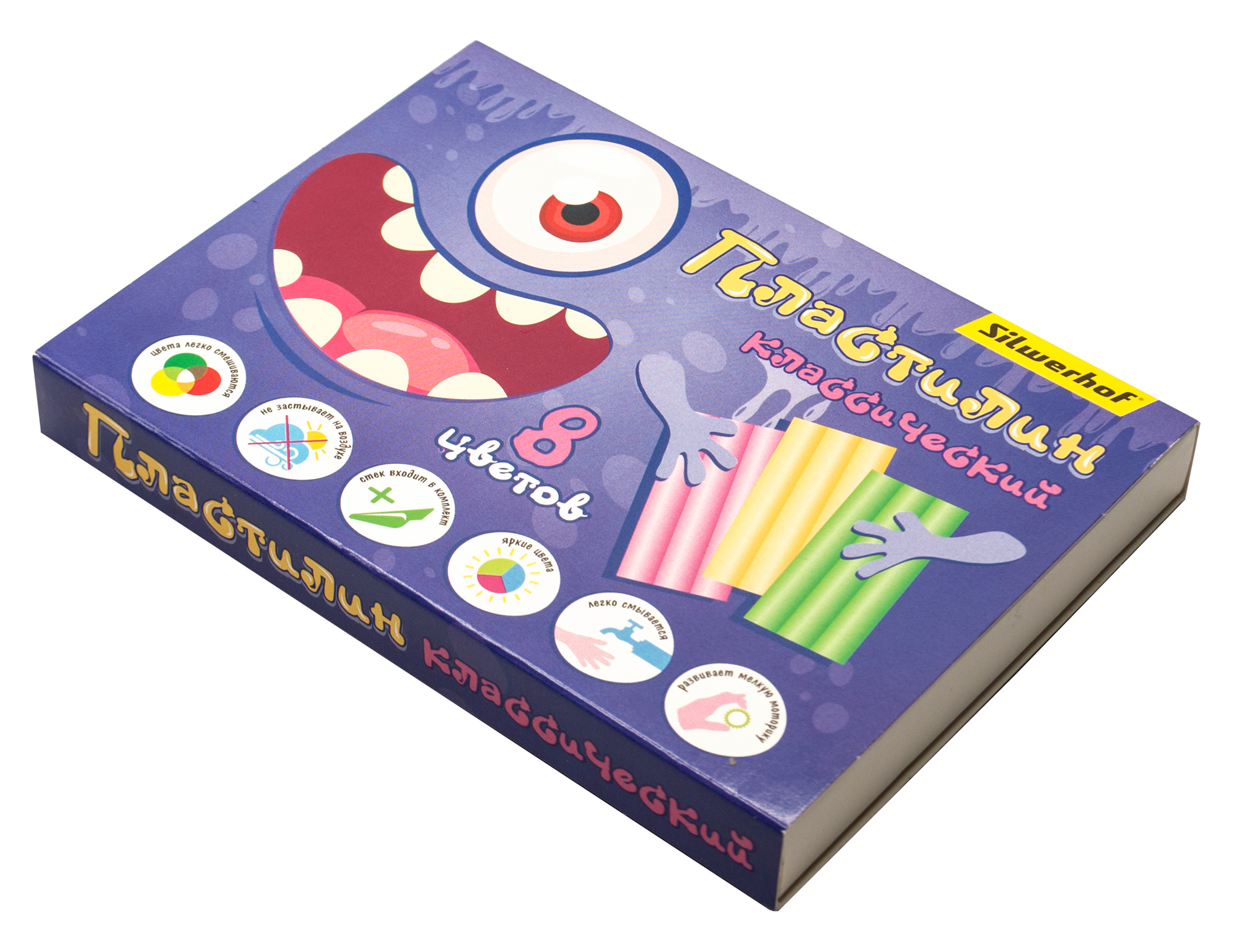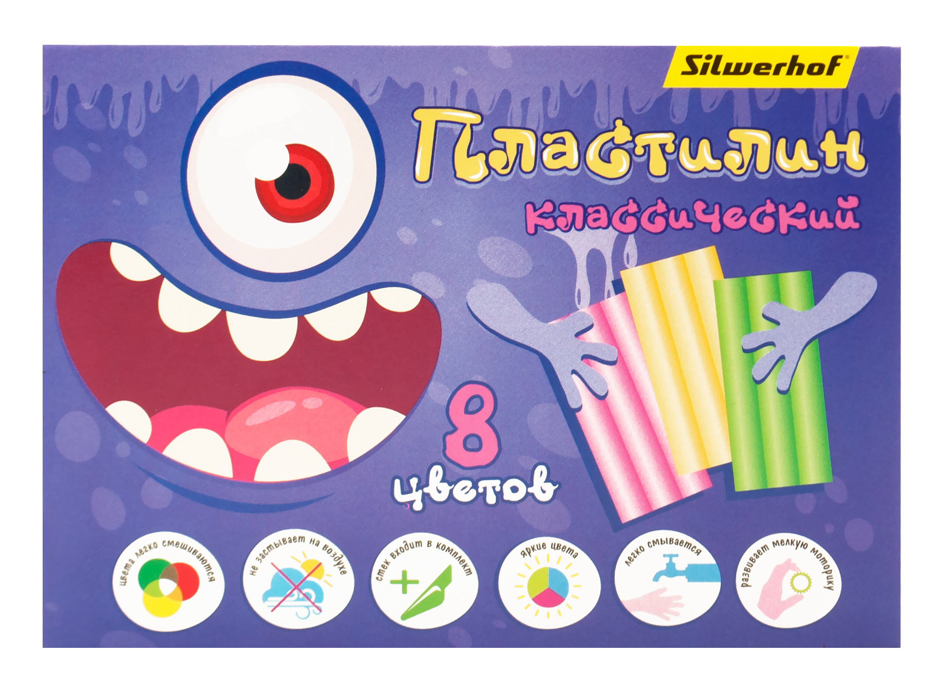 Пластилин Silwerhof Монстрики 8цв. 120гр. стек 1шт картон.кор.