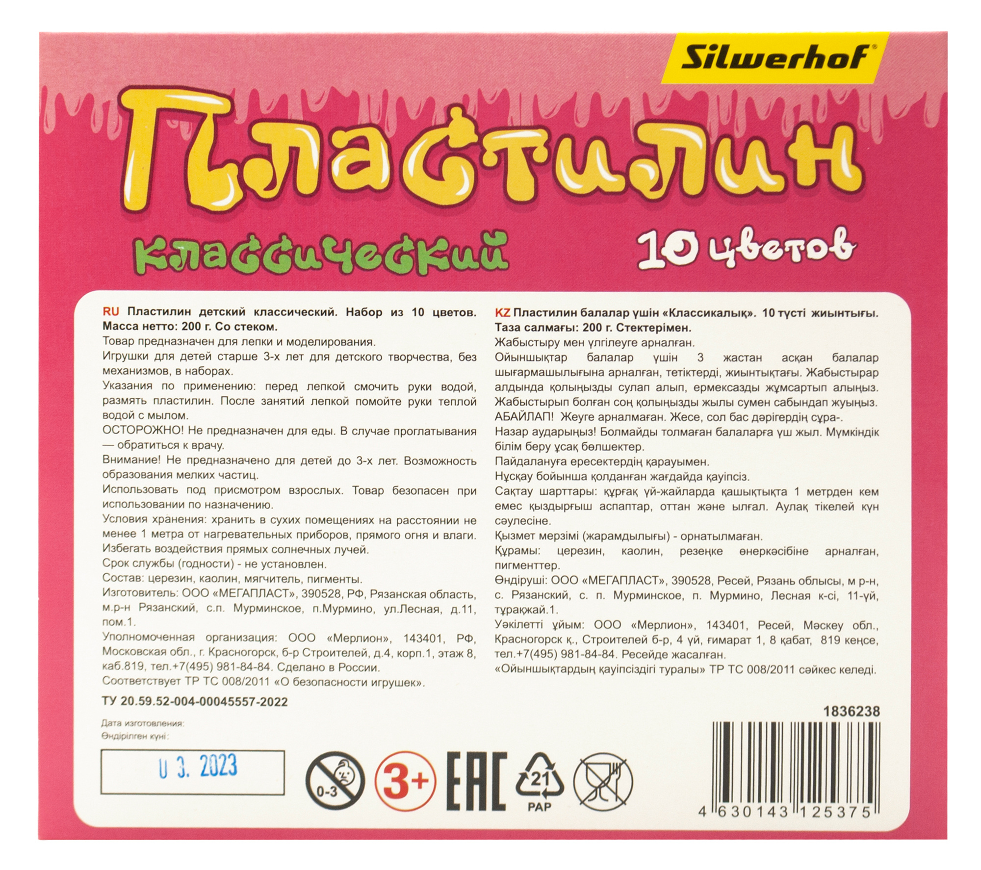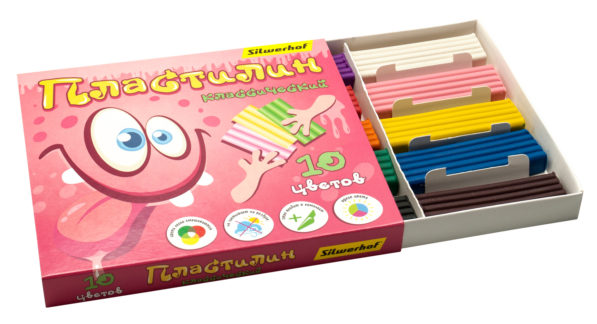 Пластилин Silwerhof Монстрики 10цв. 200гр. стек картон.кор.