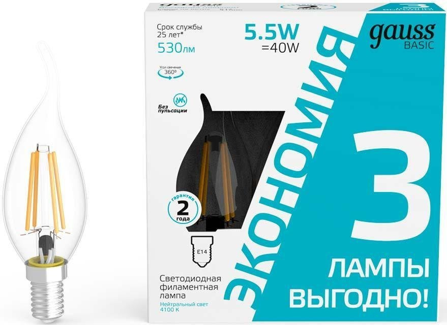 5.5Вт цок.:E14 свеча 220B св.свеч.бел.нейт. (упак...