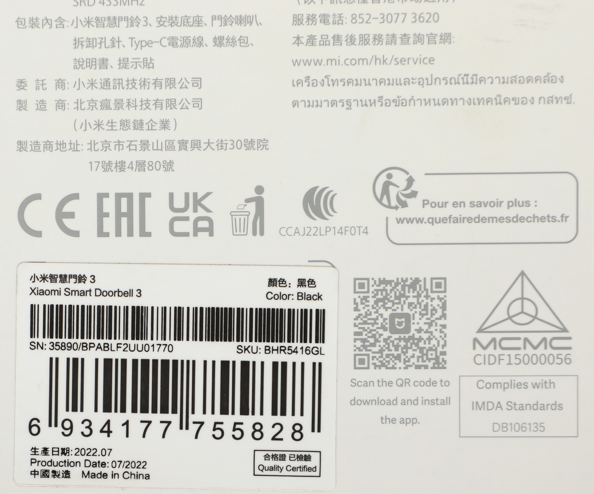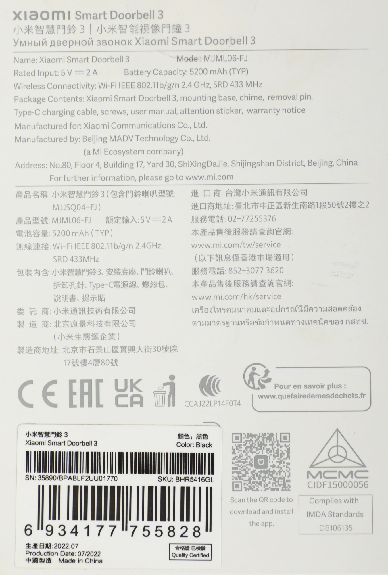 Видеозвонок Xiaomi Smart Doorbell 3