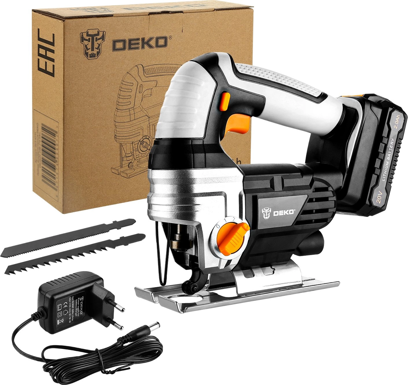 Лобзик, аккумулятор, 2 шт. пильное лезвие, зарядное устройство, коробка.
