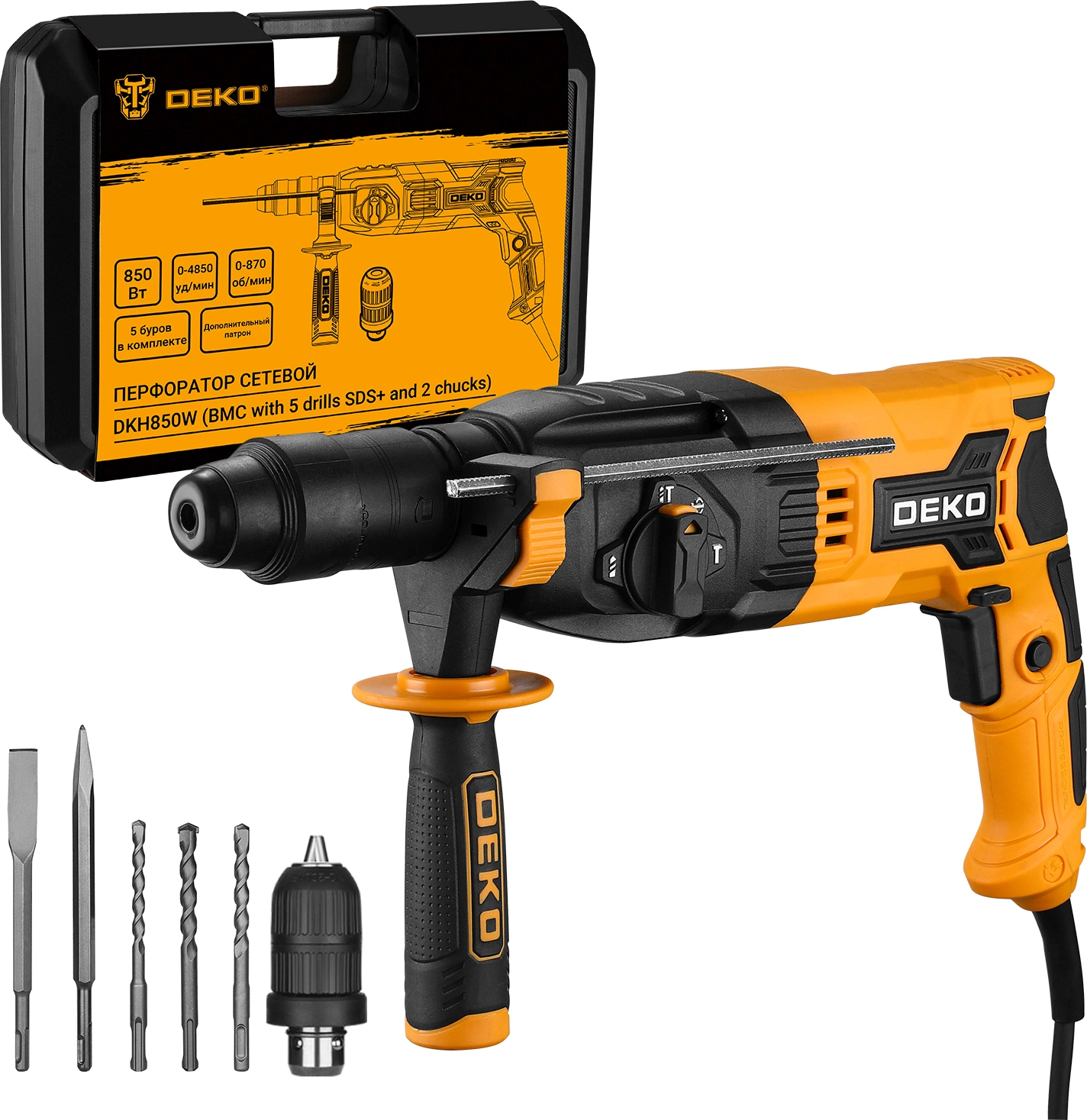 дополнительная рукоятка, ограничитель глубины сверления, предохранительная муфта, реверс