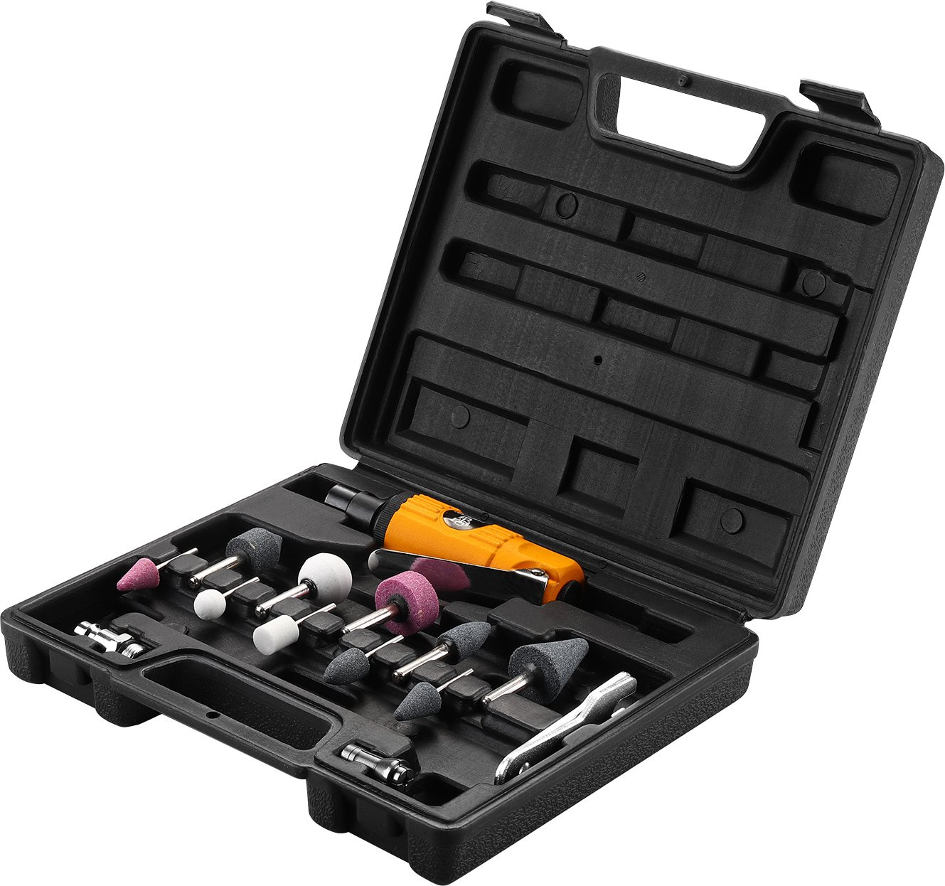Пневматическая шлифмашина DEKO DKPT02 SET 3 в чемодане с набором 15 предметов.