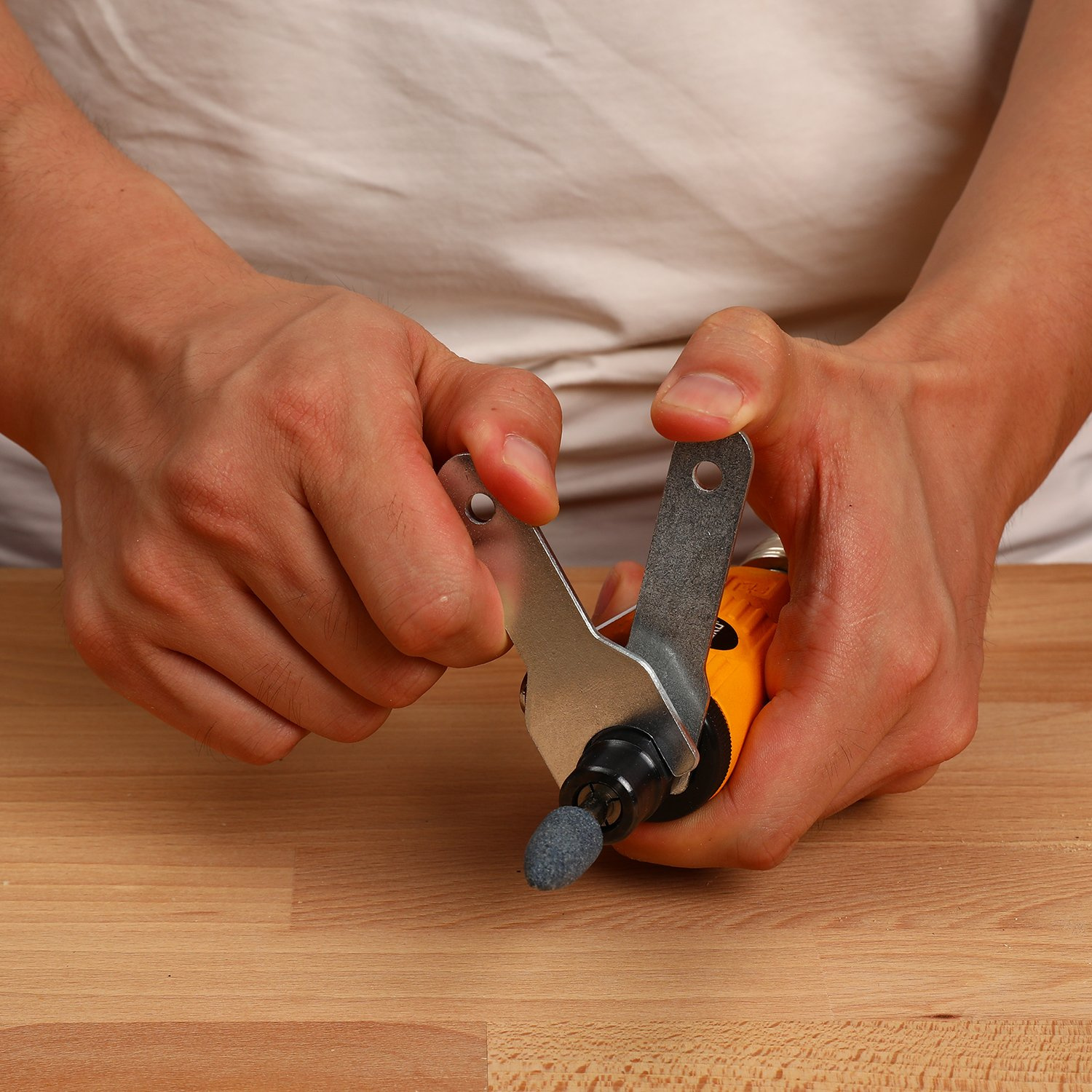 Шлифовальная машина, 2 шт. гаечный ключ, 1/8" (3 мм.) цанга, 5 шт 1/8" (3 мм.) шлифовальные камни, 5 шт. 1/4" (6 мм.) шлифовальные камни, ниппель, кейс.