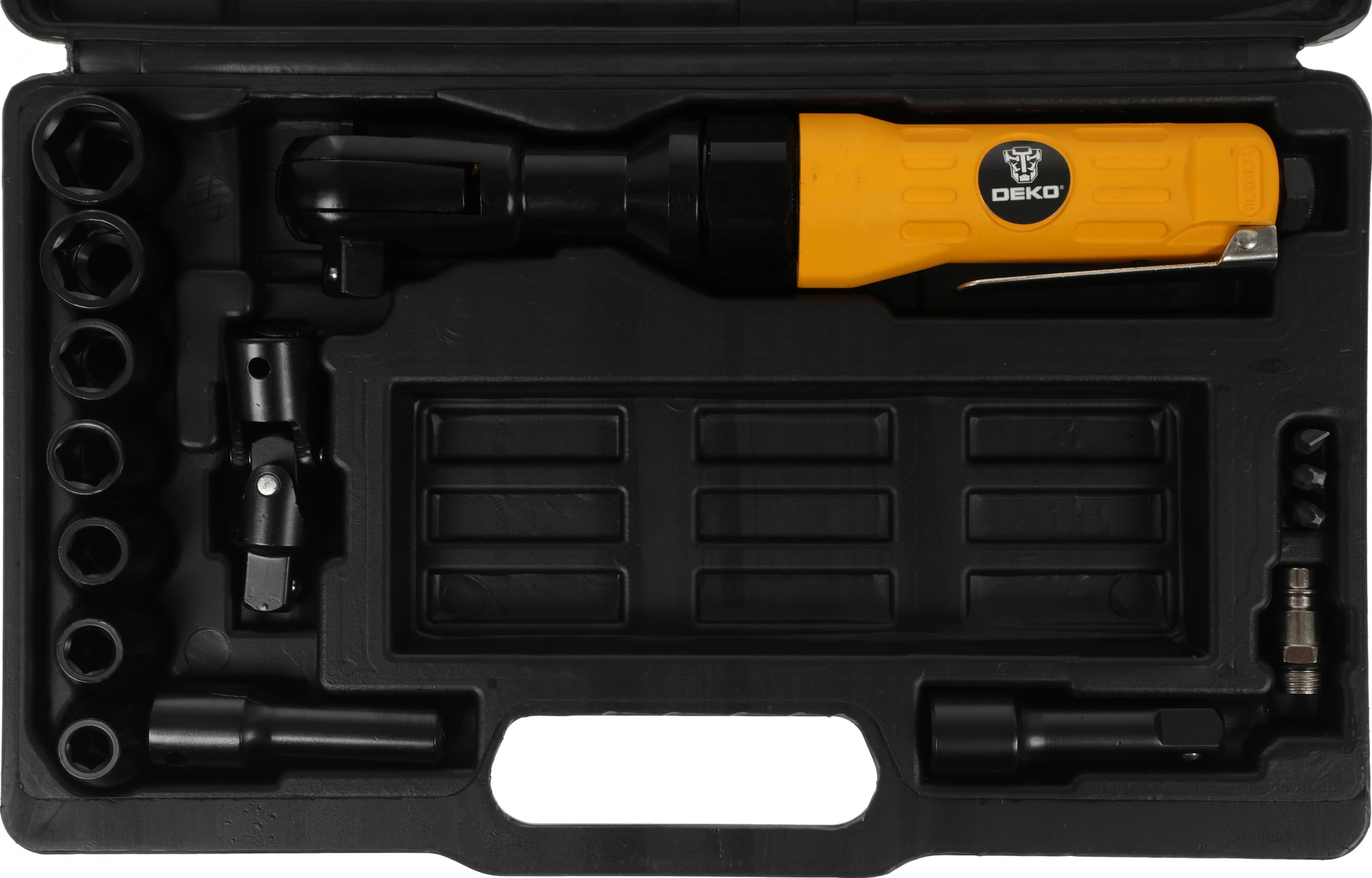 Пневматическая трещотка DEKO DKPT03 SET 3 в чемодане с набором 15 предметов.
