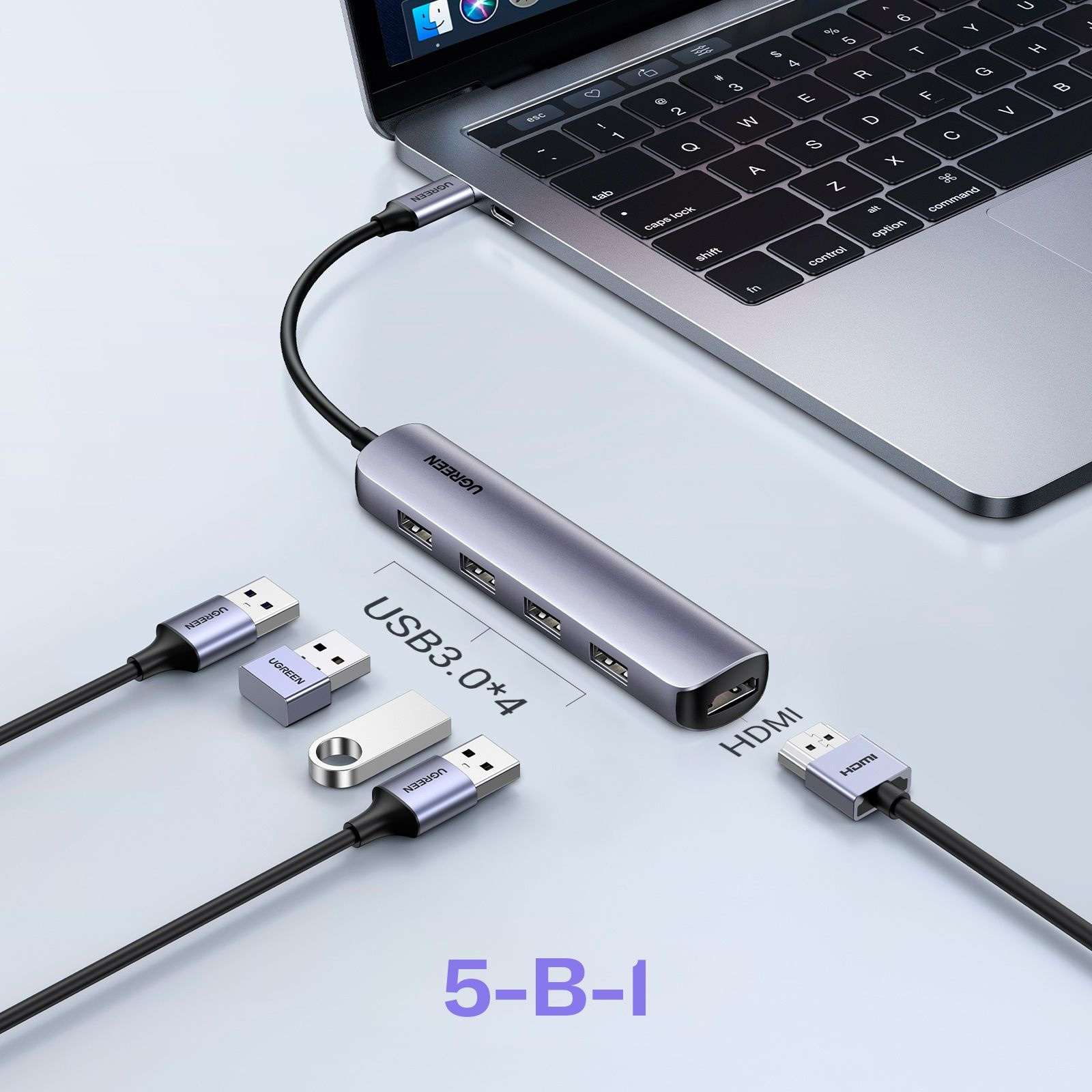 Ugreen CM417 5 в 1 – многофункциональный USB Type-C хаб в компактном корпусе с разъемом HDMI с возможностью выводить изображение в разрешении 4K и четырьмя полноразмерными USB 3.0. Корпус Ugreen сделан из анодированного алюминия, который отлично выглядит и устойчив к внешнему воздействию.