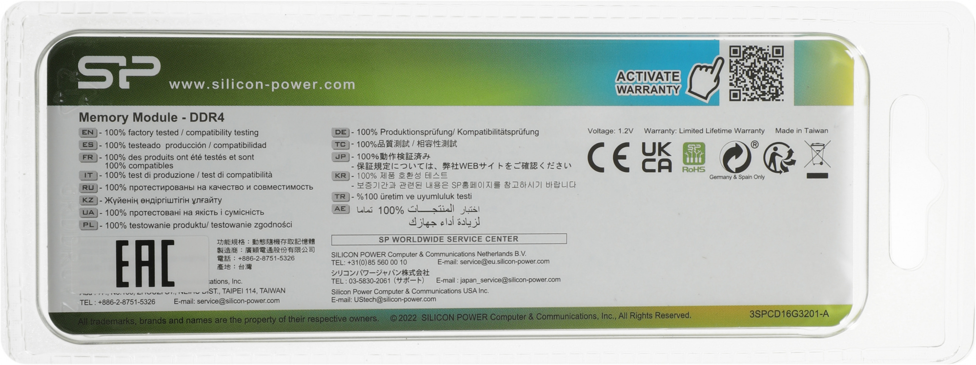 Память DDR4 16Gb 3200MHz Silicon Power SP016GBLFU320B02