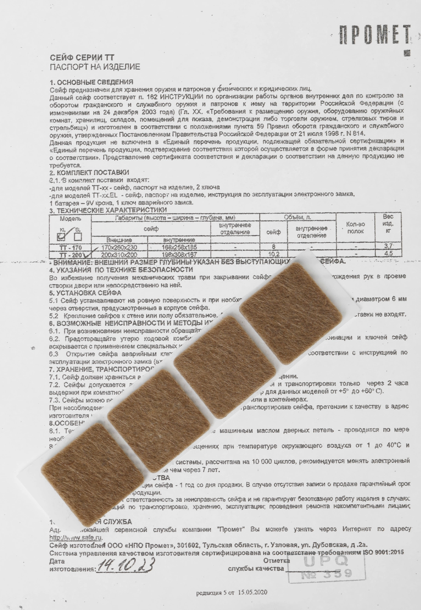 Сейф оружейный Aiko TT 200