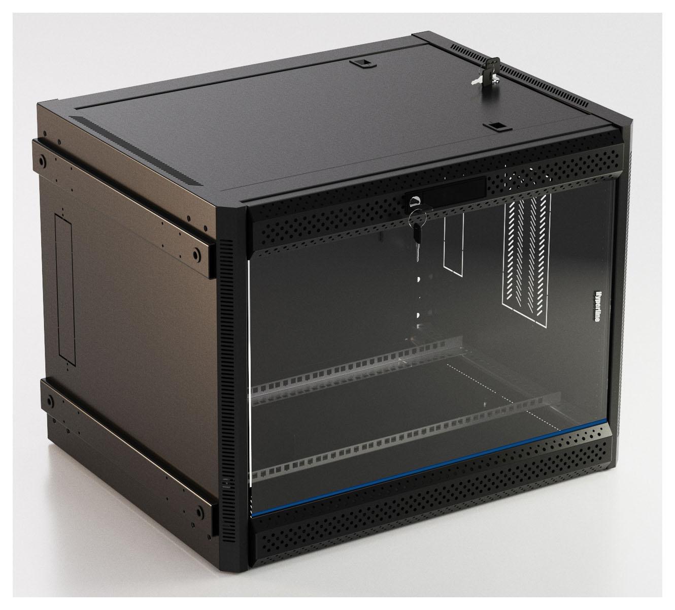 Шкаф коммутационный Hyperline (TWB-FC-2245-GP-RAL9004) настенный 22U 600x450мм пер.дв.стекл 60кг черный 180град. 1098мм IP20 сталь
