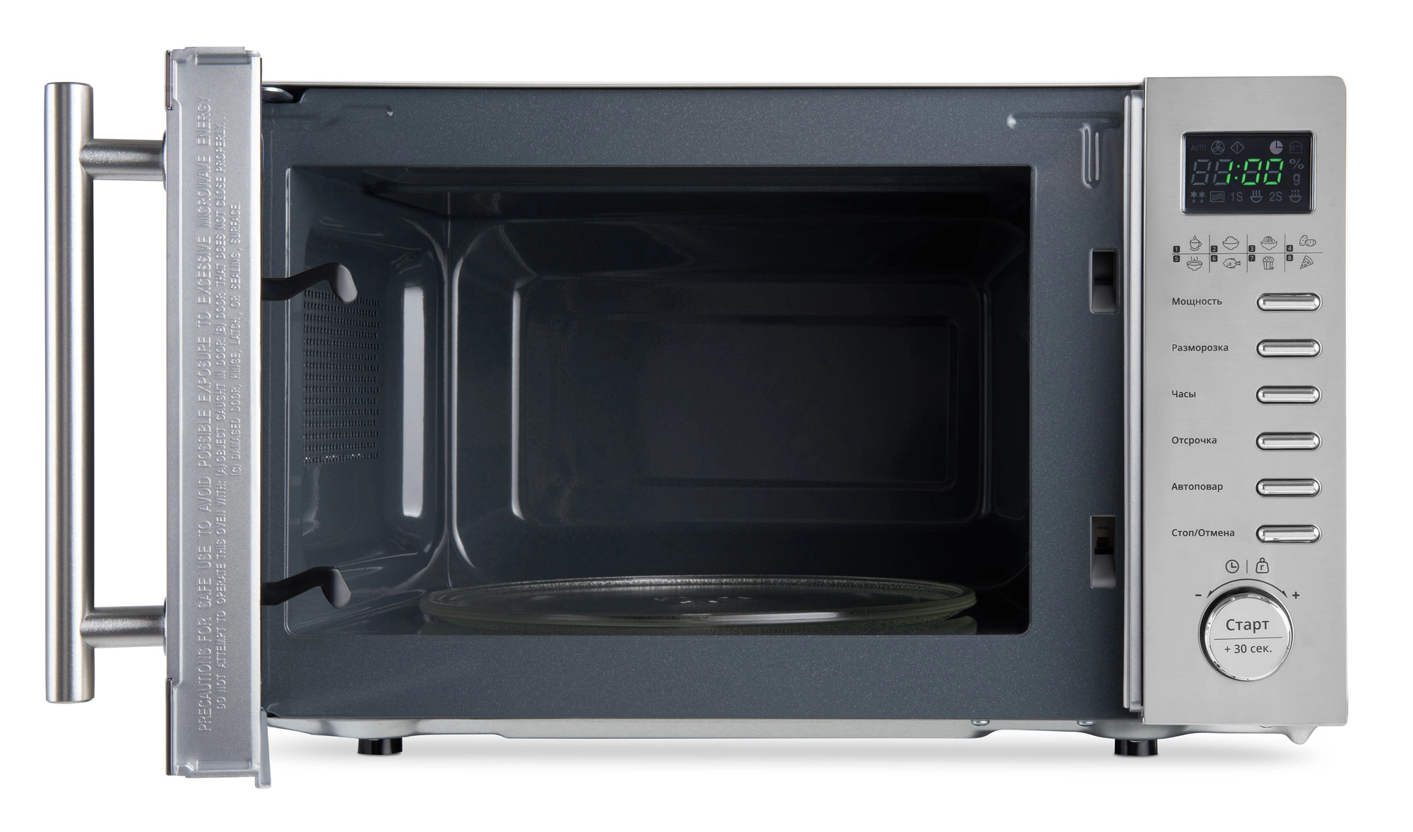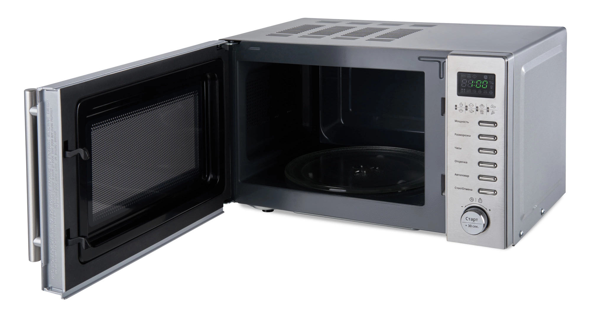 Стильная микроволновая печь DOMFY DSS-MW301 объемом 20 л и мощностью 700 Вт с поворотным столом диаметром 24,5 см цвета металлик понравится тем, кто часто использует СВЧ не только для подогрева и разморозки продуктов, но и для приготовления блюд. Модель являет собой удачный симбиоз широких возможностей для настройки необходимых параметров простоты и удобства эксплуатации. Отдельные функциональные клавиши и информативный дисплей позволяют быстро подобрать оптимальный режим для конкретной задачи.