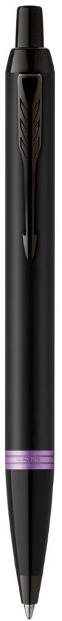 Ручка Parker с полностью черной отделкой корпуса, а также акцентами в виде аметистово-фиолетовых колец.