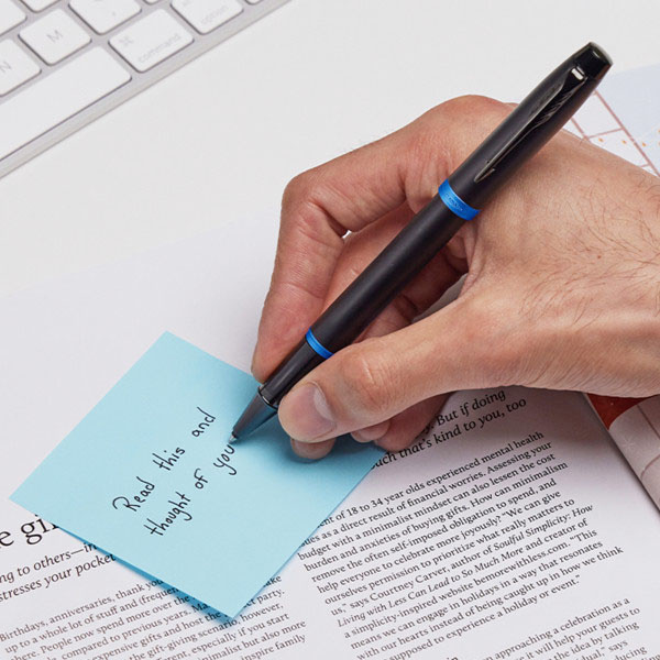 Представленная в подарочной упаковке Parker со сменным стержнем для ручек роллеров, она также будет изысканным подарком для молодых специалистов.