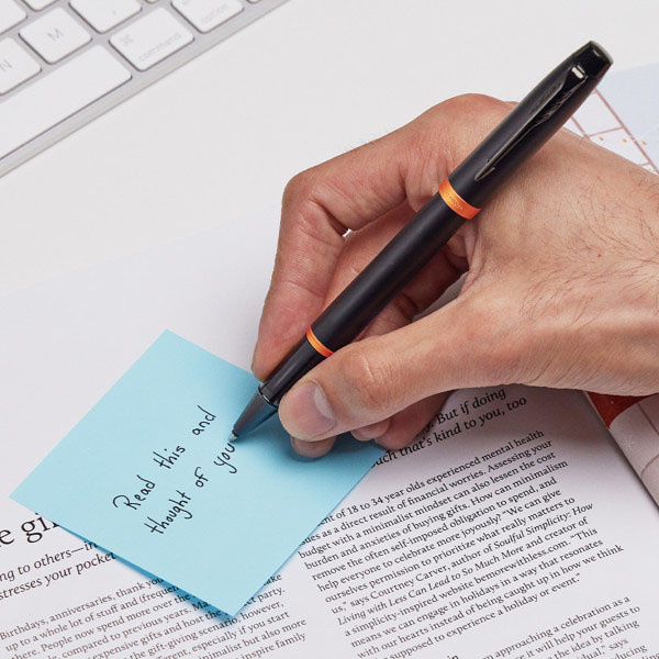 Представленная в подарочной упаковке Parker со сменным стержнем для ручек роллеров, она также будет изысканным подарком для молодых специалистов.