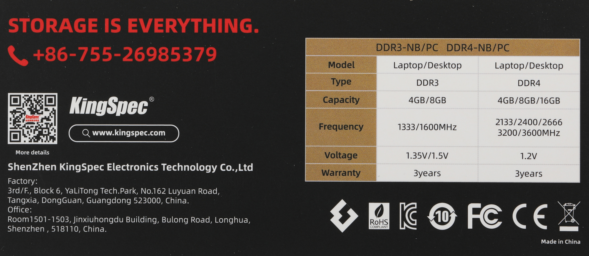 Память DDR4 8GB 3200MHz Kingspec KS3200D4M13508G