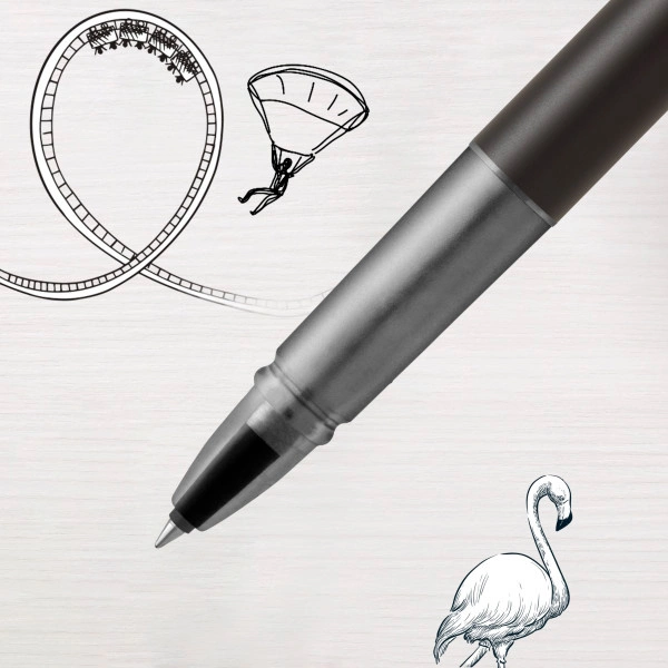 Корпус в цвете матово-черный металлик с хромированной отделкой деталей и фирменным клипом в виде стрелы PARKER.
