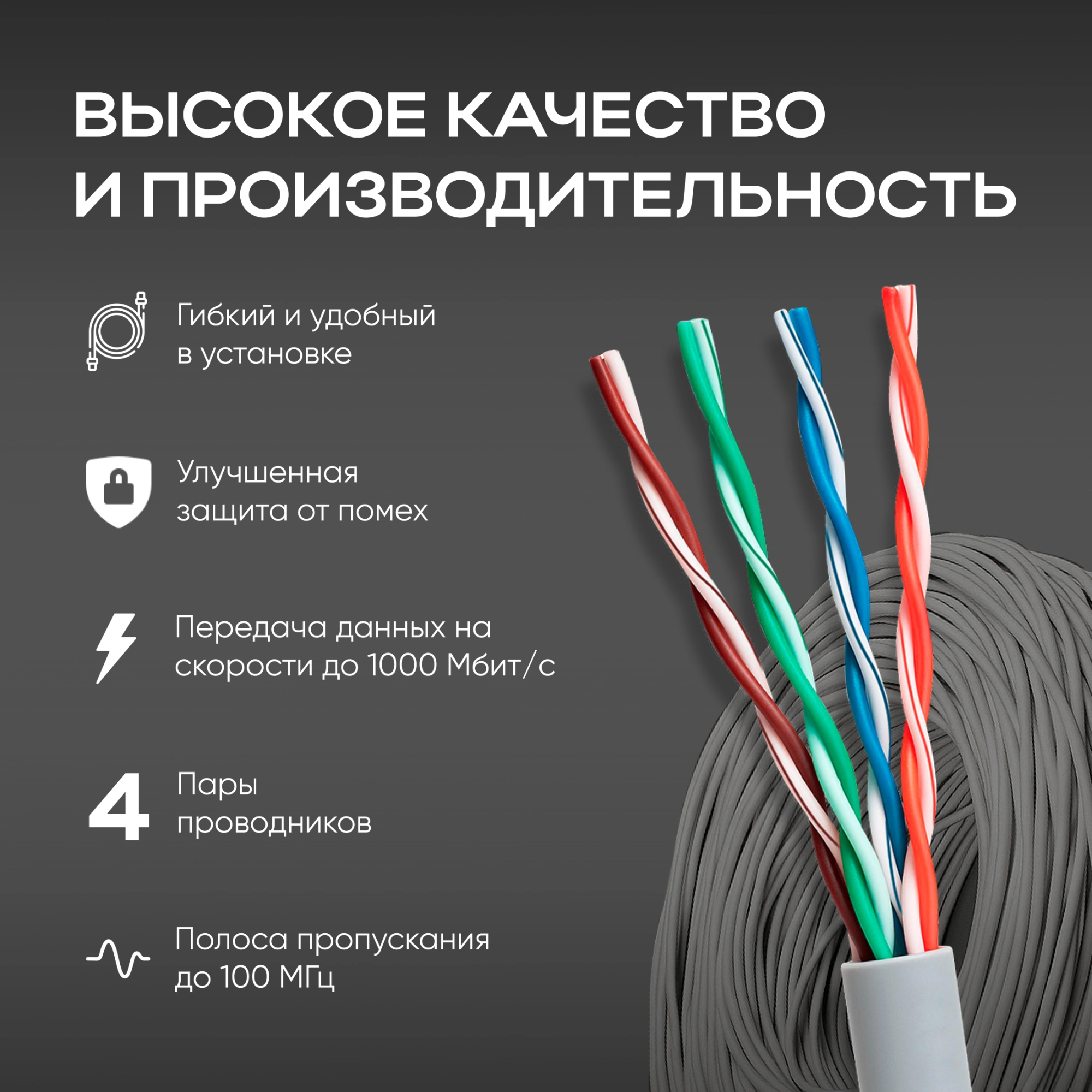 Кабель сетевой UTP 4 пары cat.5E solid 0.50мм CCA 305м серый