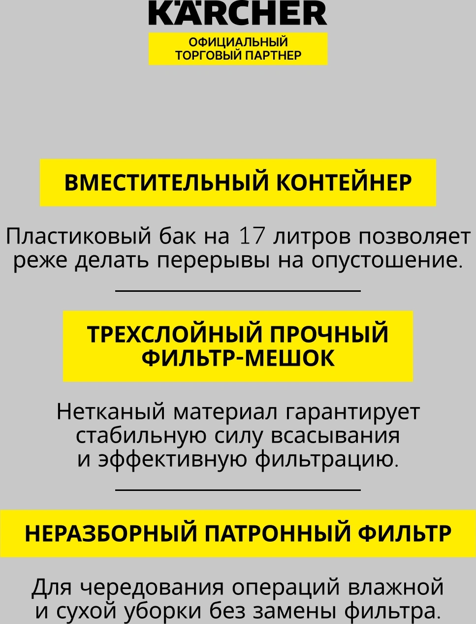 Удлинительные трубки, 2 шт., 0.5 м, 35 мм, пластмасса. Насадка для влажной и сухой уборки, со вставками. Щелевая насадка. Гибкий всасывающий шланг, 2 м, 35 мм. Адаптер для соединения с электроинструментами. Насадка-кисть с мягкой щетиной