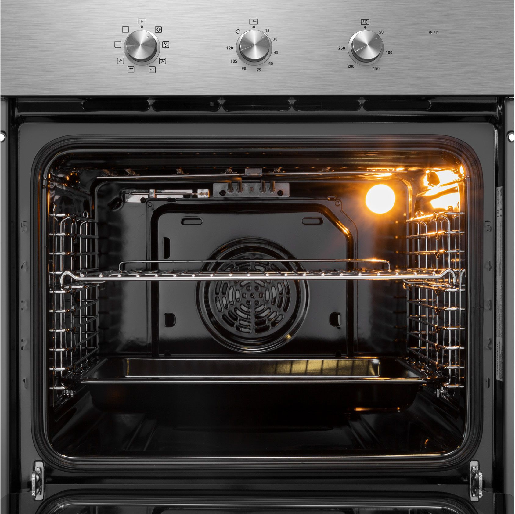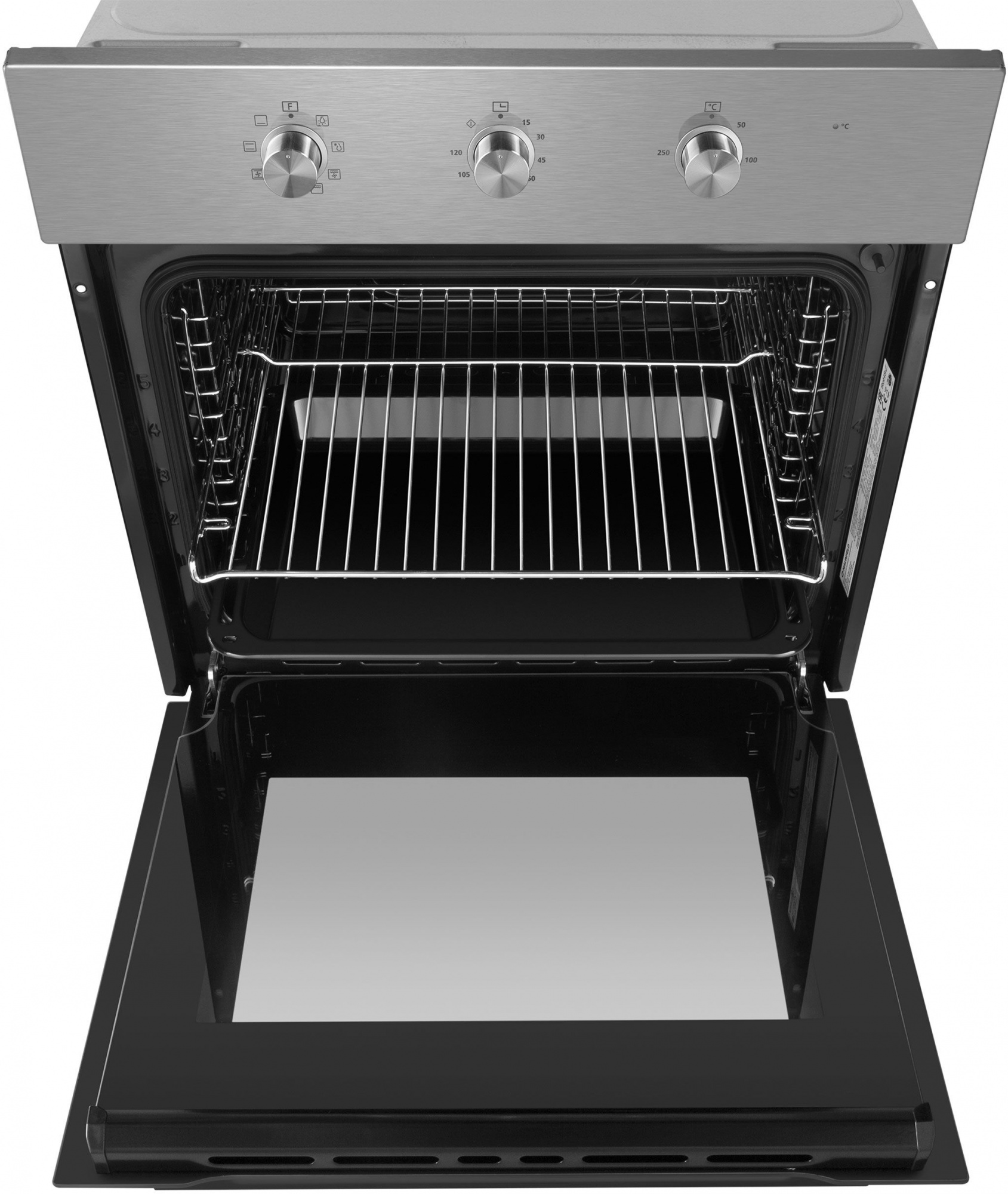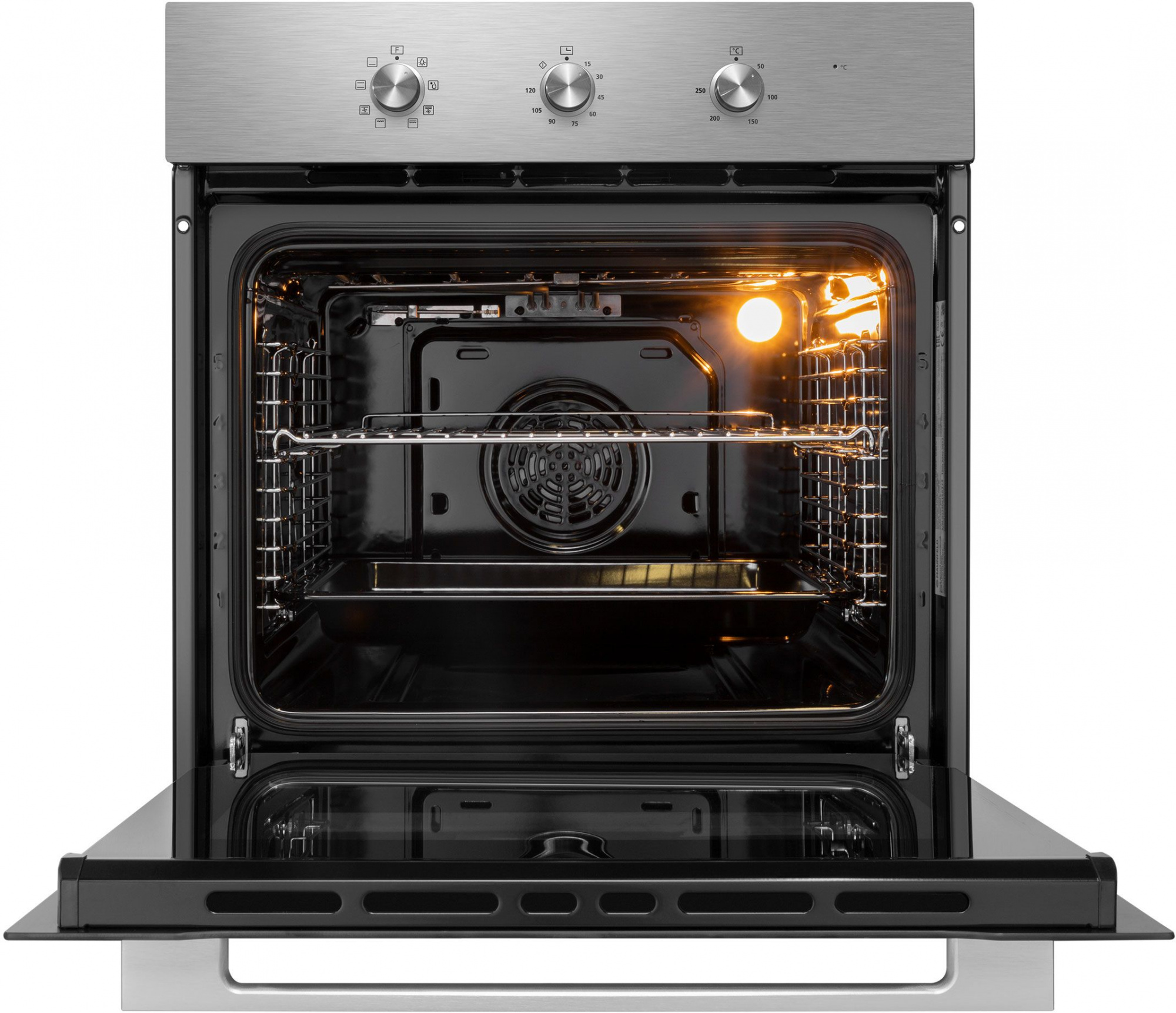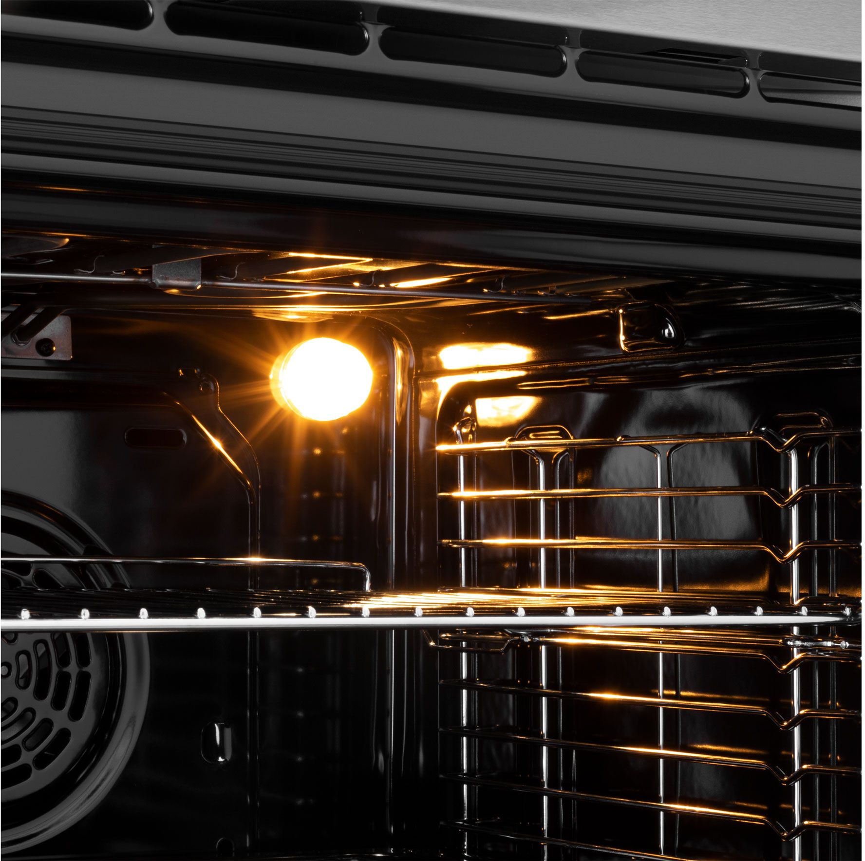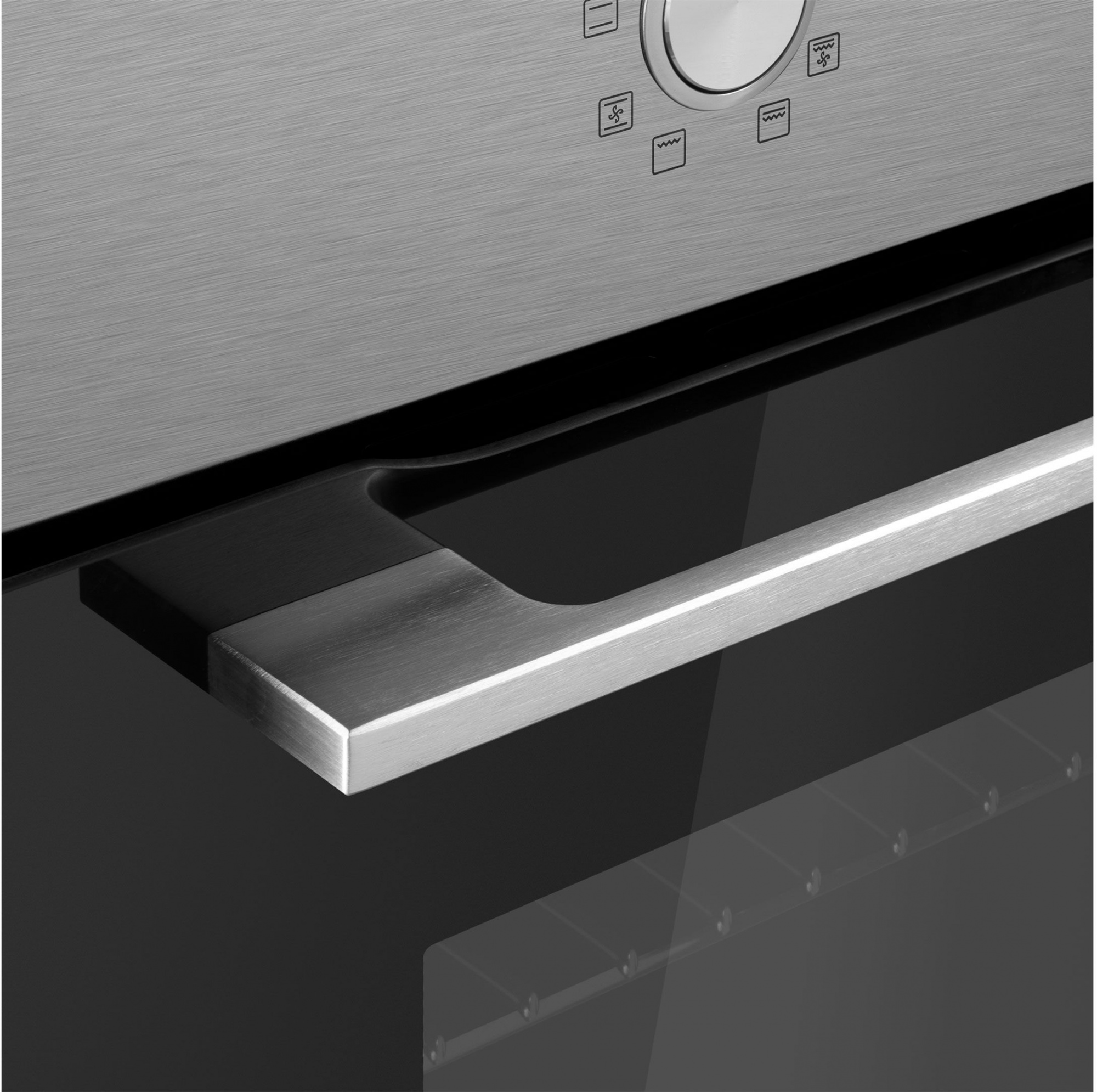 вентилятор охлаждения, полностью стеклянная внутренняя поверхность дверцы духовки, утапливаемые переключатели