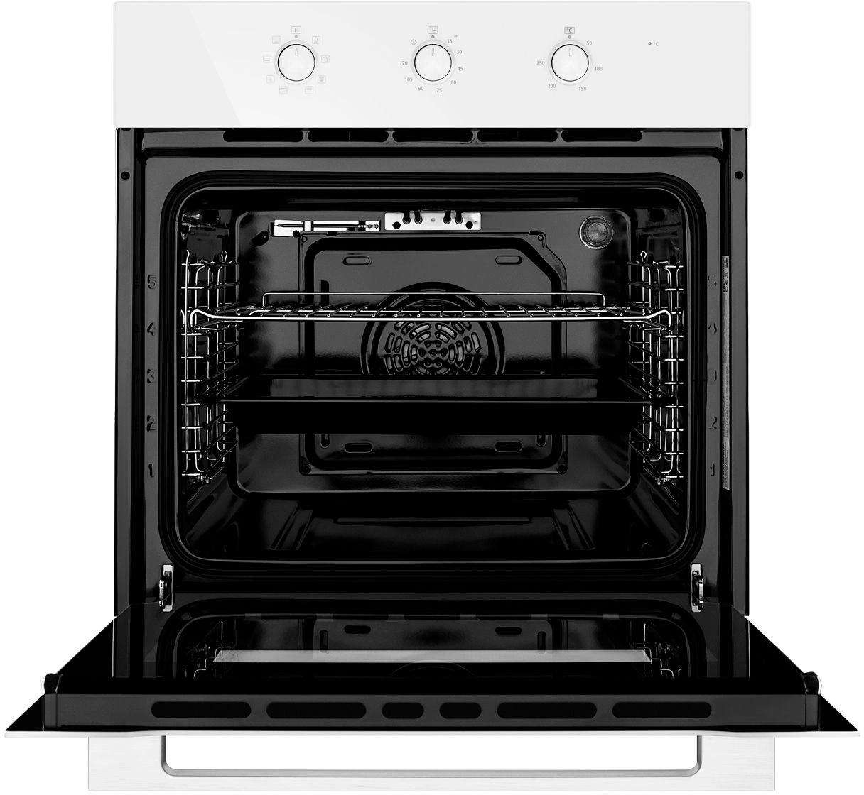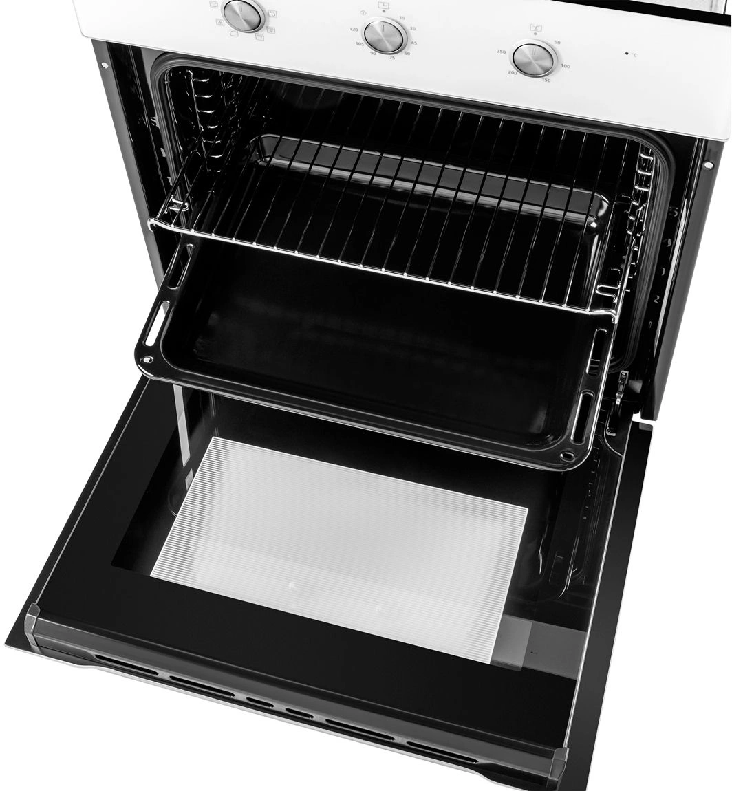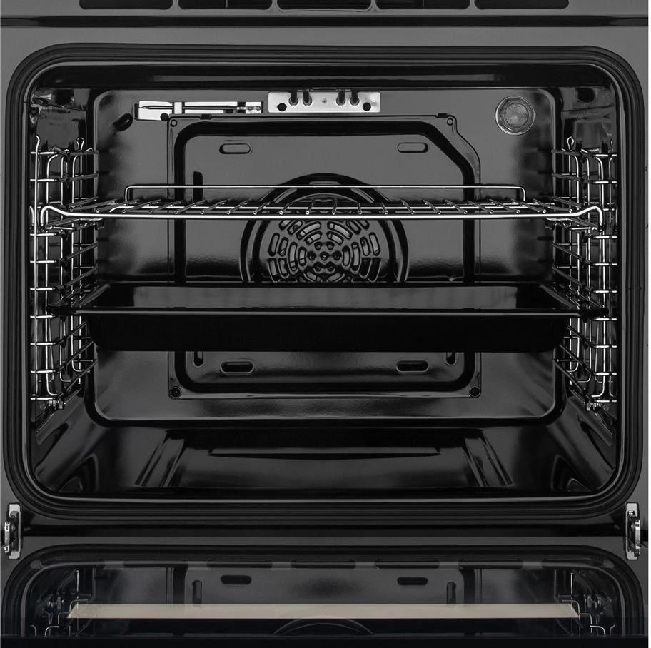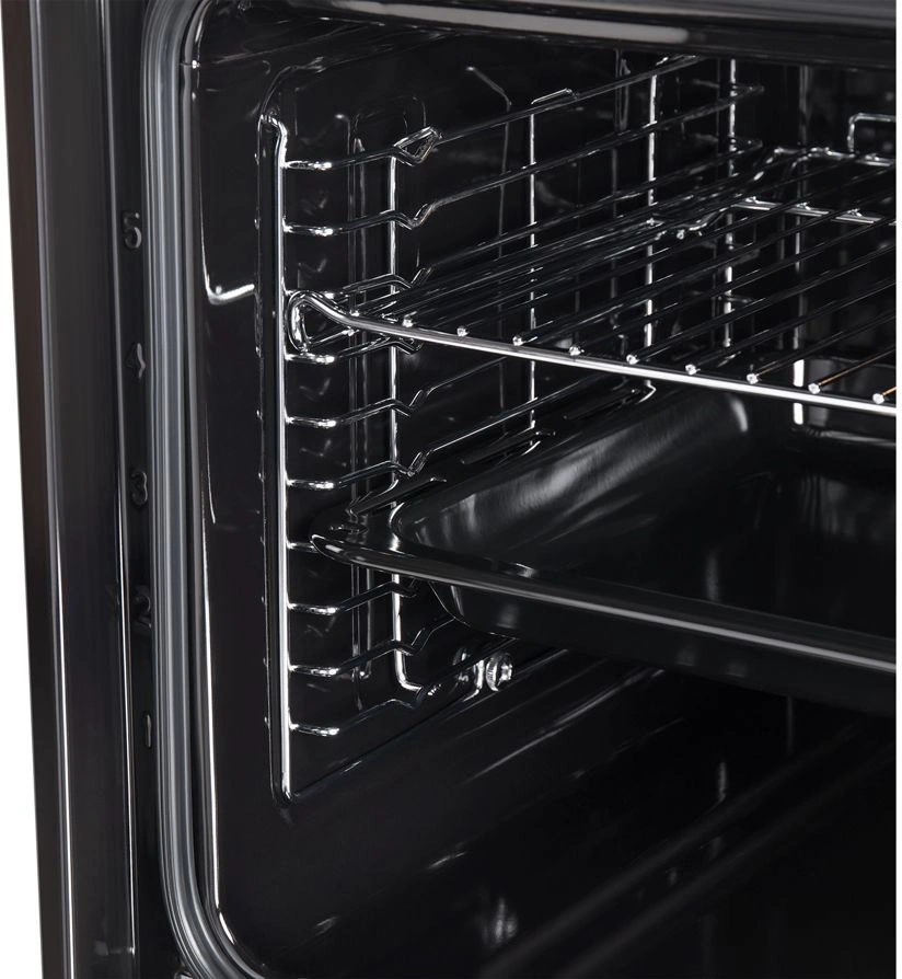 вентилятор охлаждения, полностью стеклянная внутренняя поверхность дверцы духовки, утапливаемые переключатели