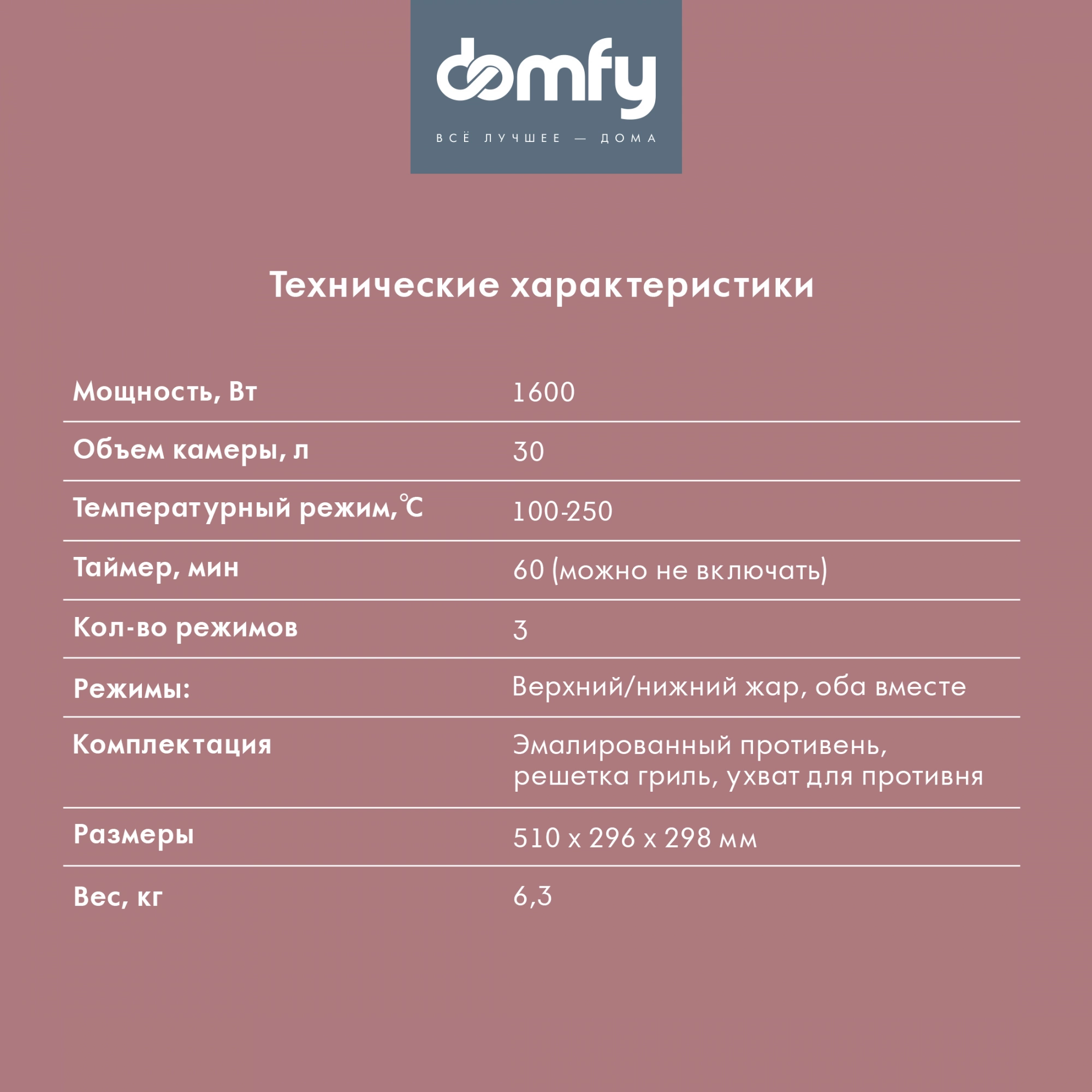 Мини-печь DOMFY DSB-EO102 отлично подойдёт для повседневного использования в случаях, когда использование большого стационарного духового шкафа не рационально. С её помощью можно легко приготовить выпечку или запеканку, быстро зажарить мясо или рыбу с хрустящей корочкой. А когда печь не используется, её можно хранить в шкафу или кладовой.