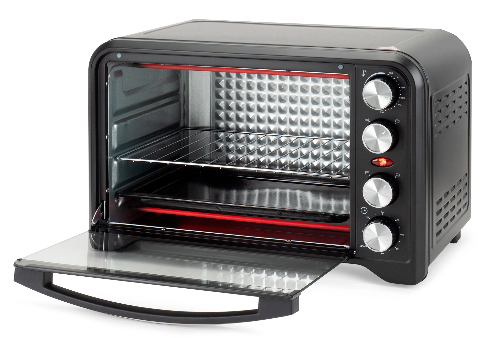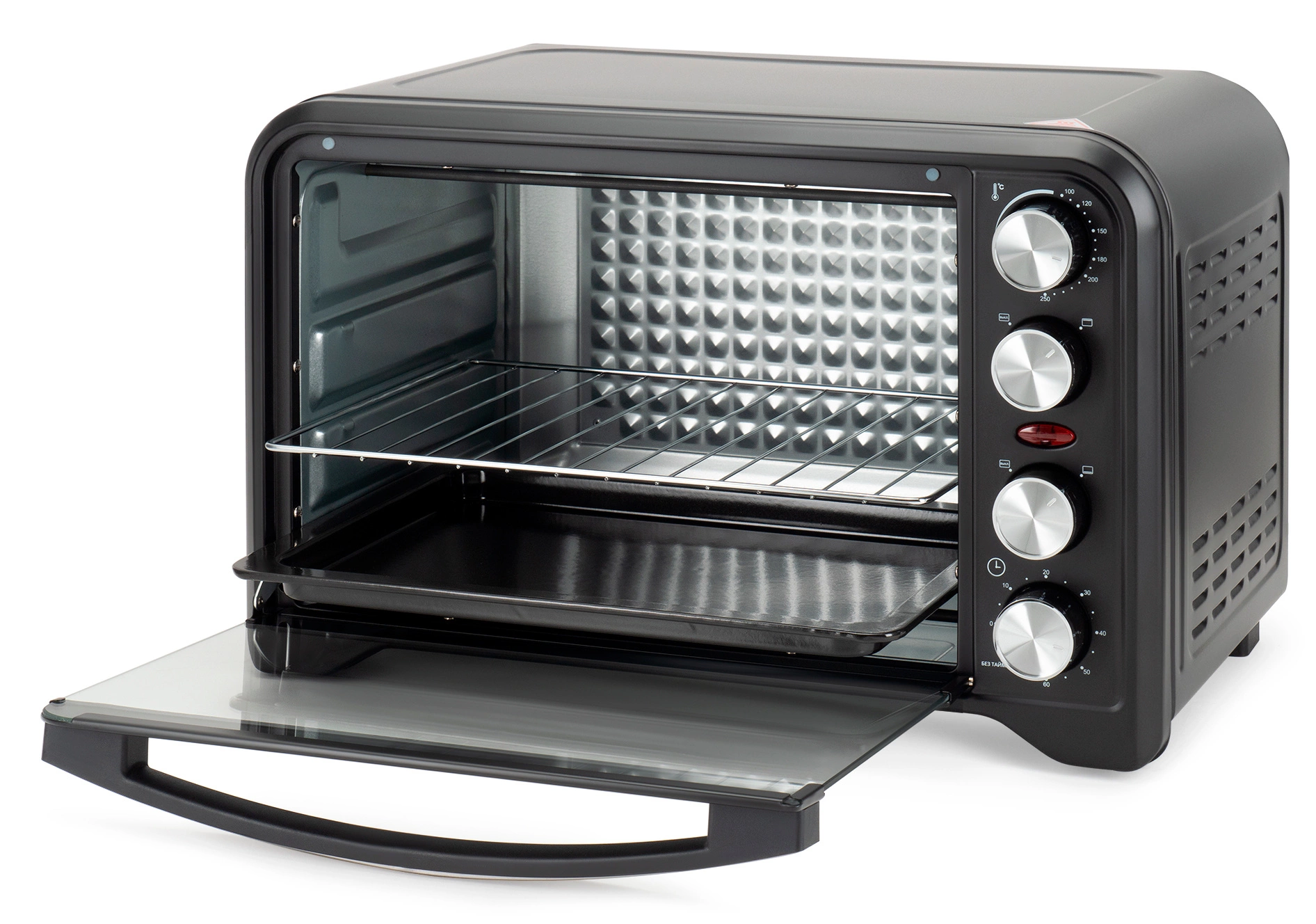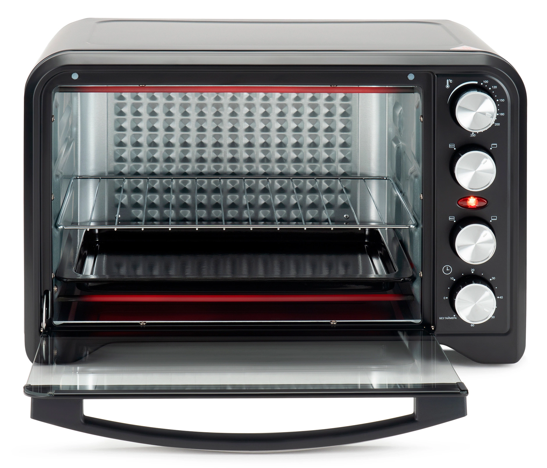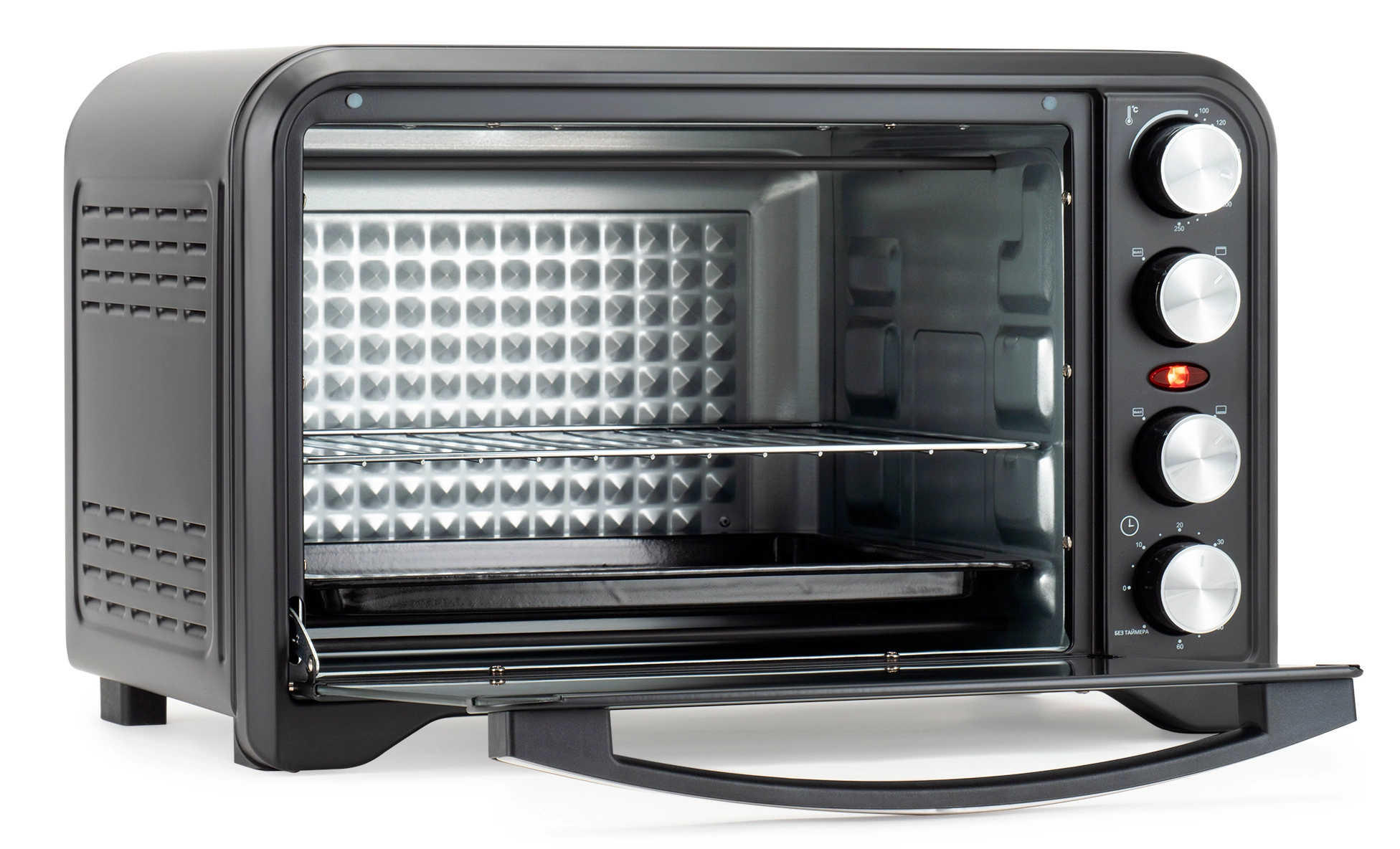 Компактная черная электрическая мини-печь DOMFY DSB-EO102 с вместительной камерой 30 л и интуитивно понятным управлением станет хорошей альтернативой полноразмерному духовому шкафу, раскроет новые возможности для приготовления различных блюд.. Верхний и нижний нагревательные элементы совокупной мощностью 1600 Вт обеспечивают быстрый набор и поддержание температуры до 250°C. Функция автоматического отключения по таймеру позволит спокойно заниматься своими делами во время готовки.