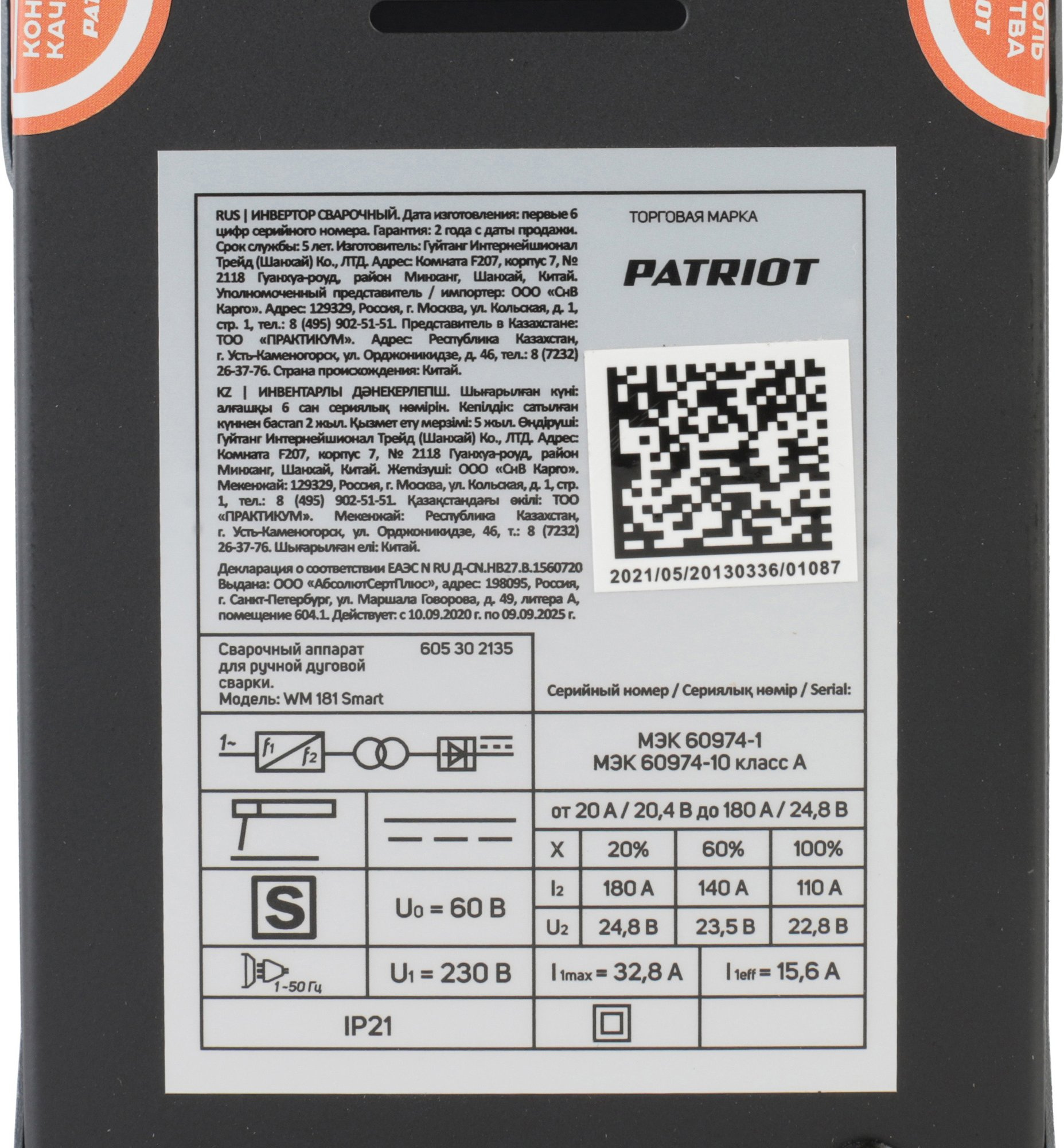 Сварочный аппарат портативный PATRIOT WM 181 Smart для проведения работ на больших площадях и на высоте. Небольшой вес, размеры и длинный ремень упрощают перенос аппарата и размещение его на любом рабочем участке.