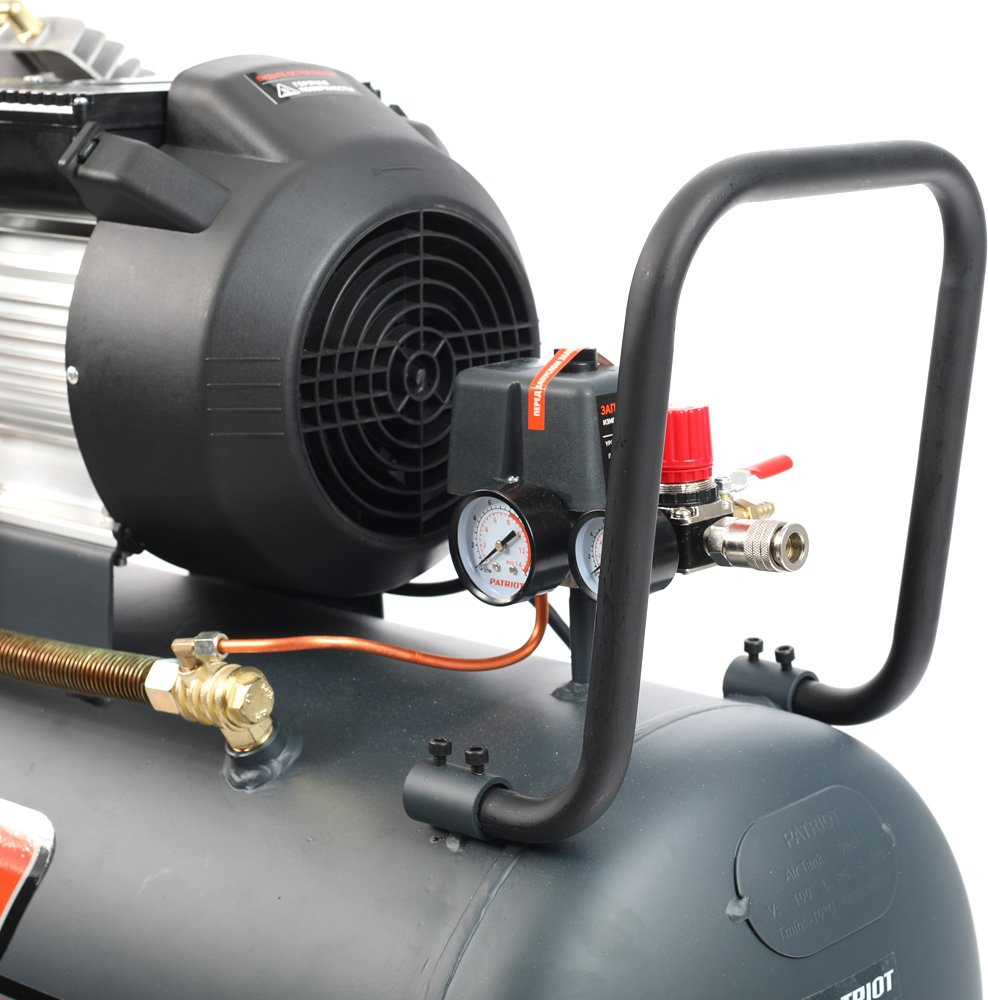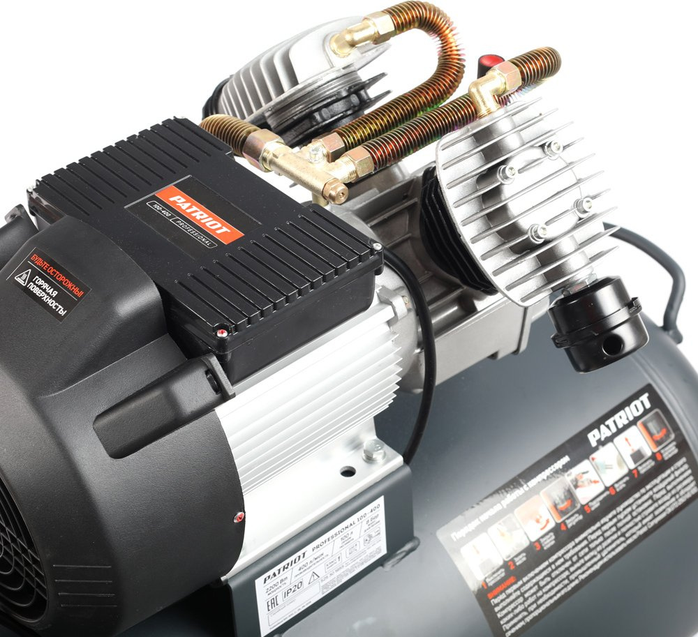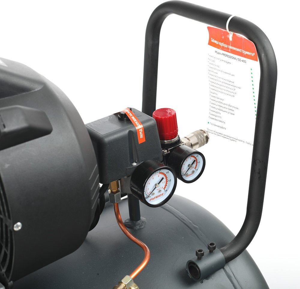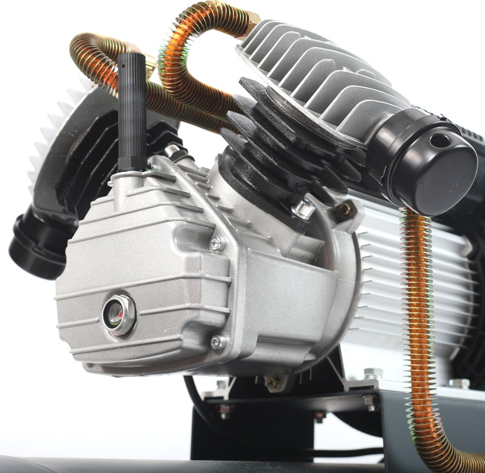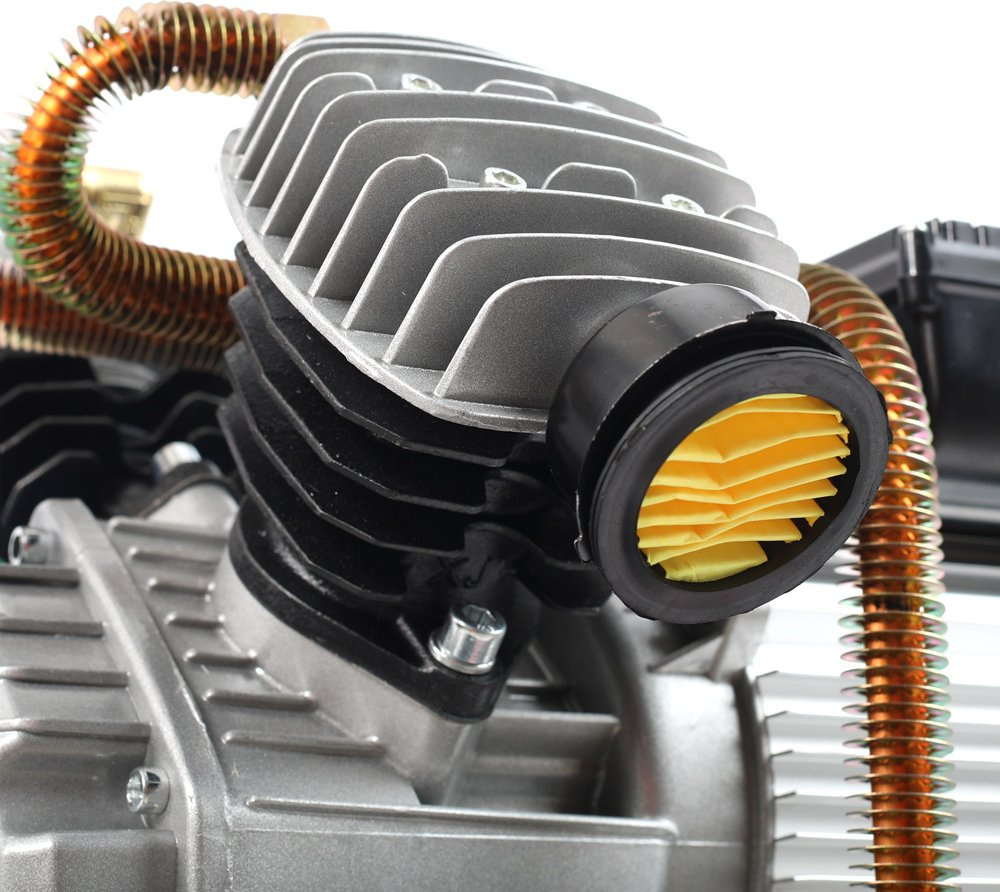 Современное и профессиональное оснащение. Увеличенные ребра охлаждения алюминиевой головки и чугунного цилиндра. Современный и профессиональный автоматический пневмовыключатель для четкой и безопасной работы компрессора.