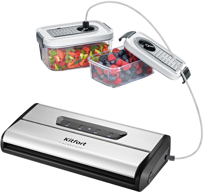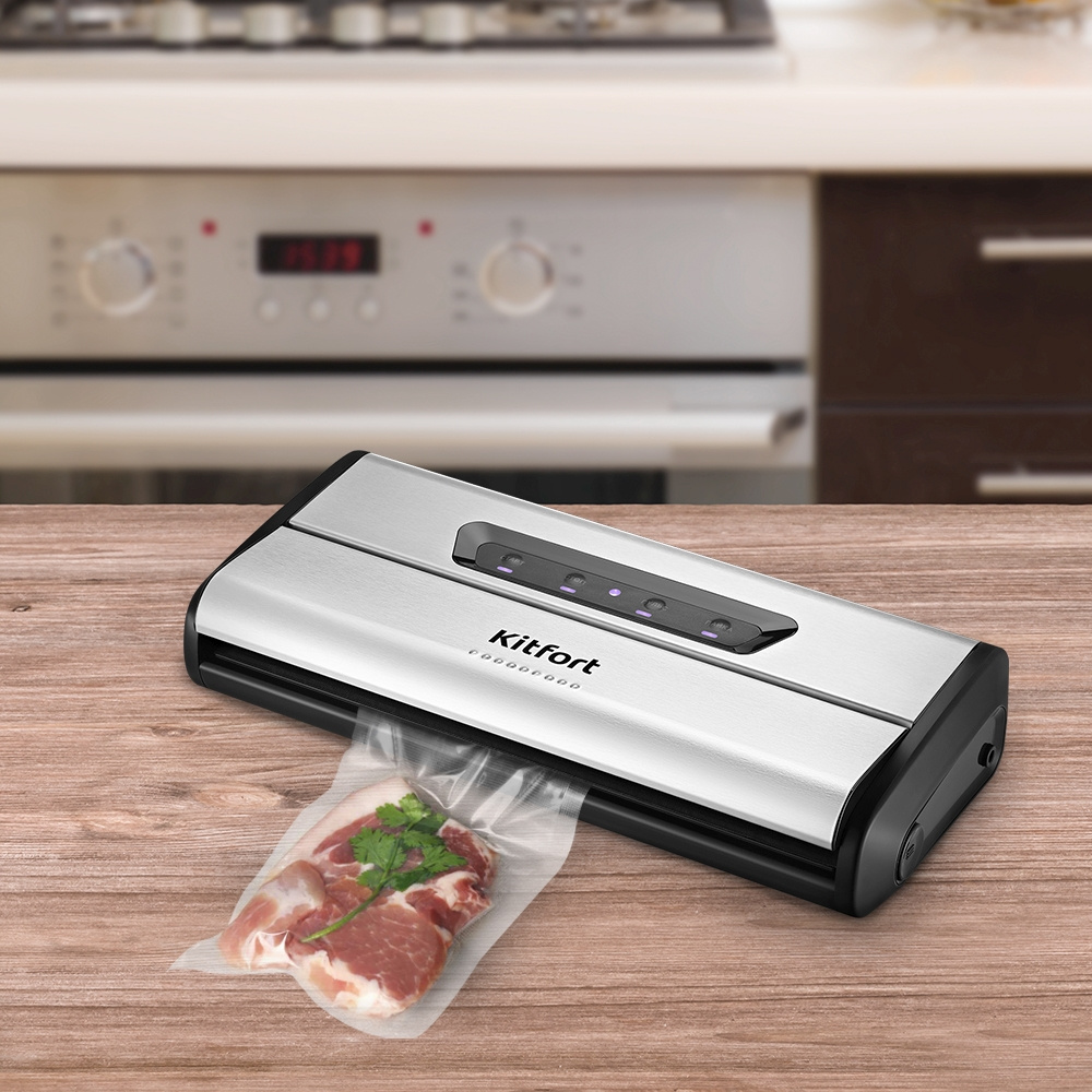 Вакууматор Kitfort КТ-1515 обеспечит долгие сроки хранения ваших любимых продуктов. Продукты, упакованные под вакуумом, сохраняют дольше аппетитный вид, вкус и полезные свойства, а портятся существенно дольше по сравнению с обычными условиями хранения.