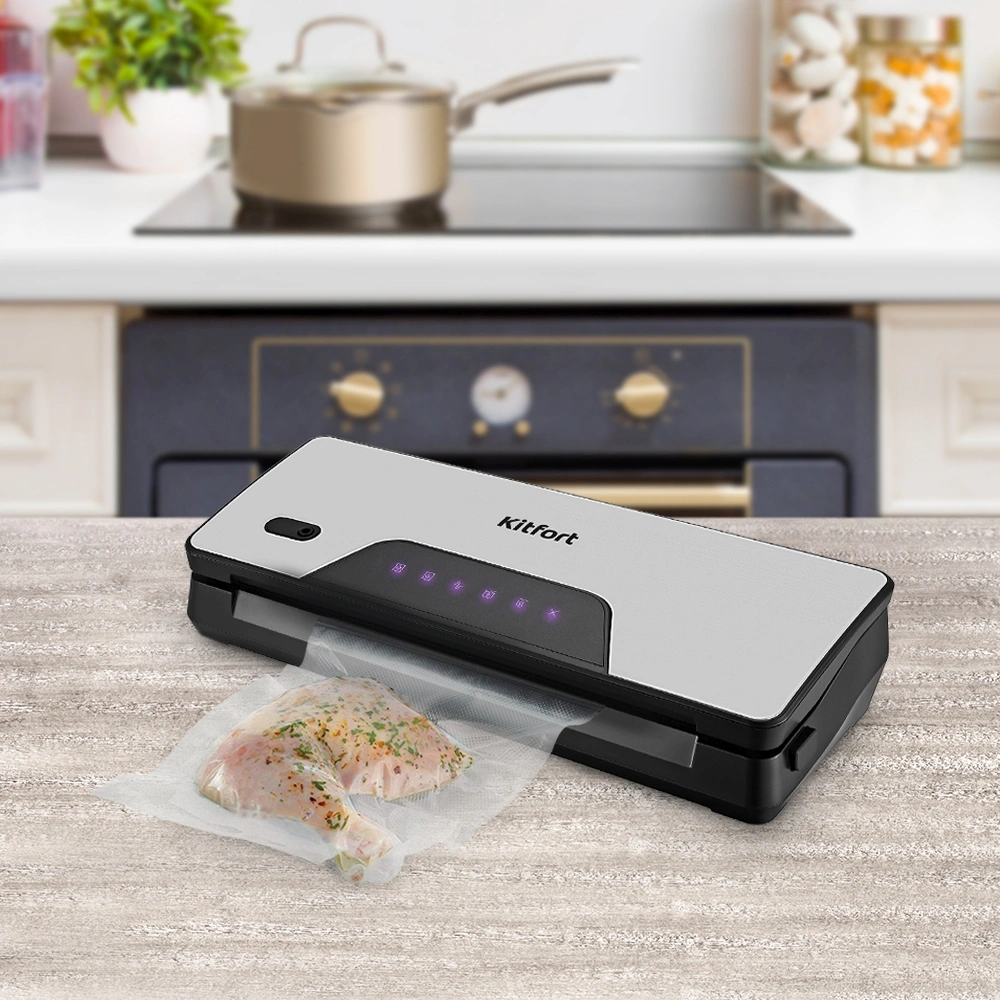 Вакууматор Kitfort КТ-1517 обеспечит долгие сроки хранения ваших любимых продуктов. Продукты, упакованные под вакуумом, сохраняют дольше аппетитный вид, вкус и полезные свойства, а портятся существенно дольше по сравнению с обычными условиями хранения.