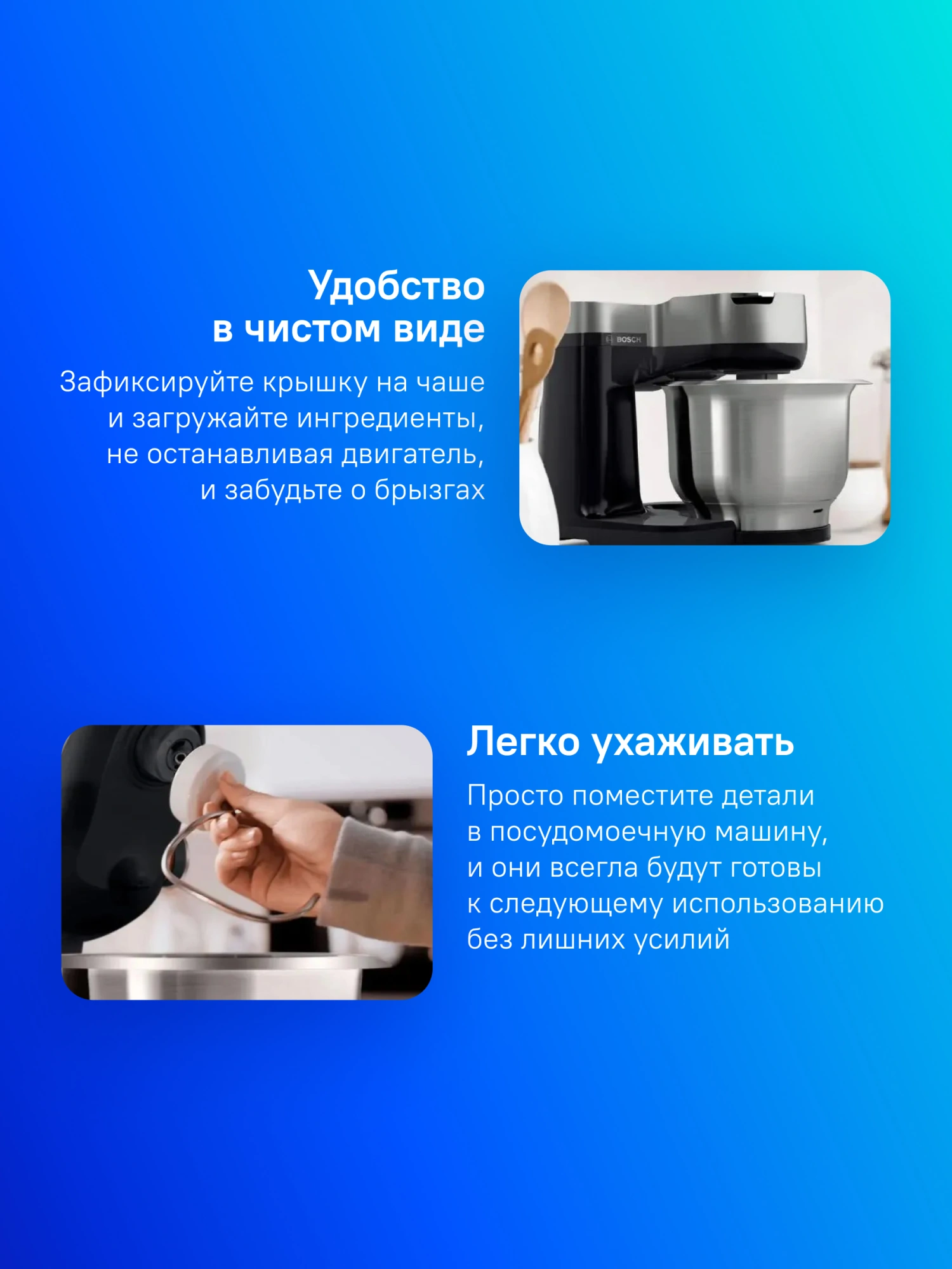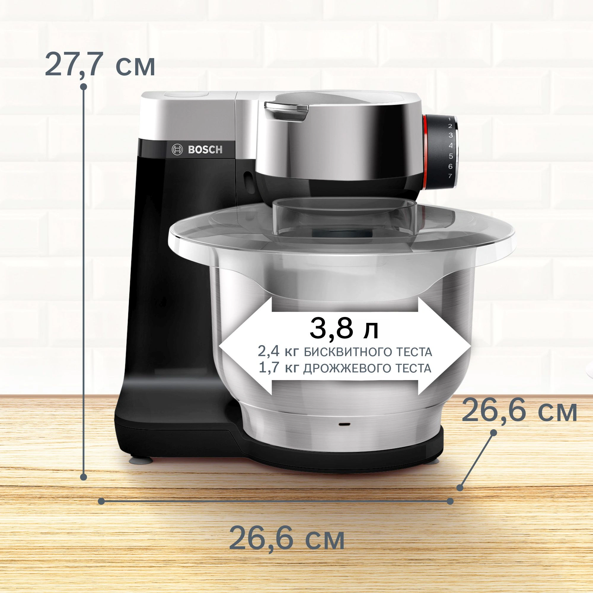 Металлическая чаша 3.8 л: подходит для как для смешивания небольших объемов, так и для замеса до 2,4 кг бисквитного теста и 1,7 кг дрожжевого теста.