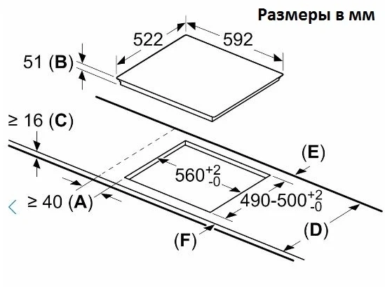 Размер (левой ближней конфорки)