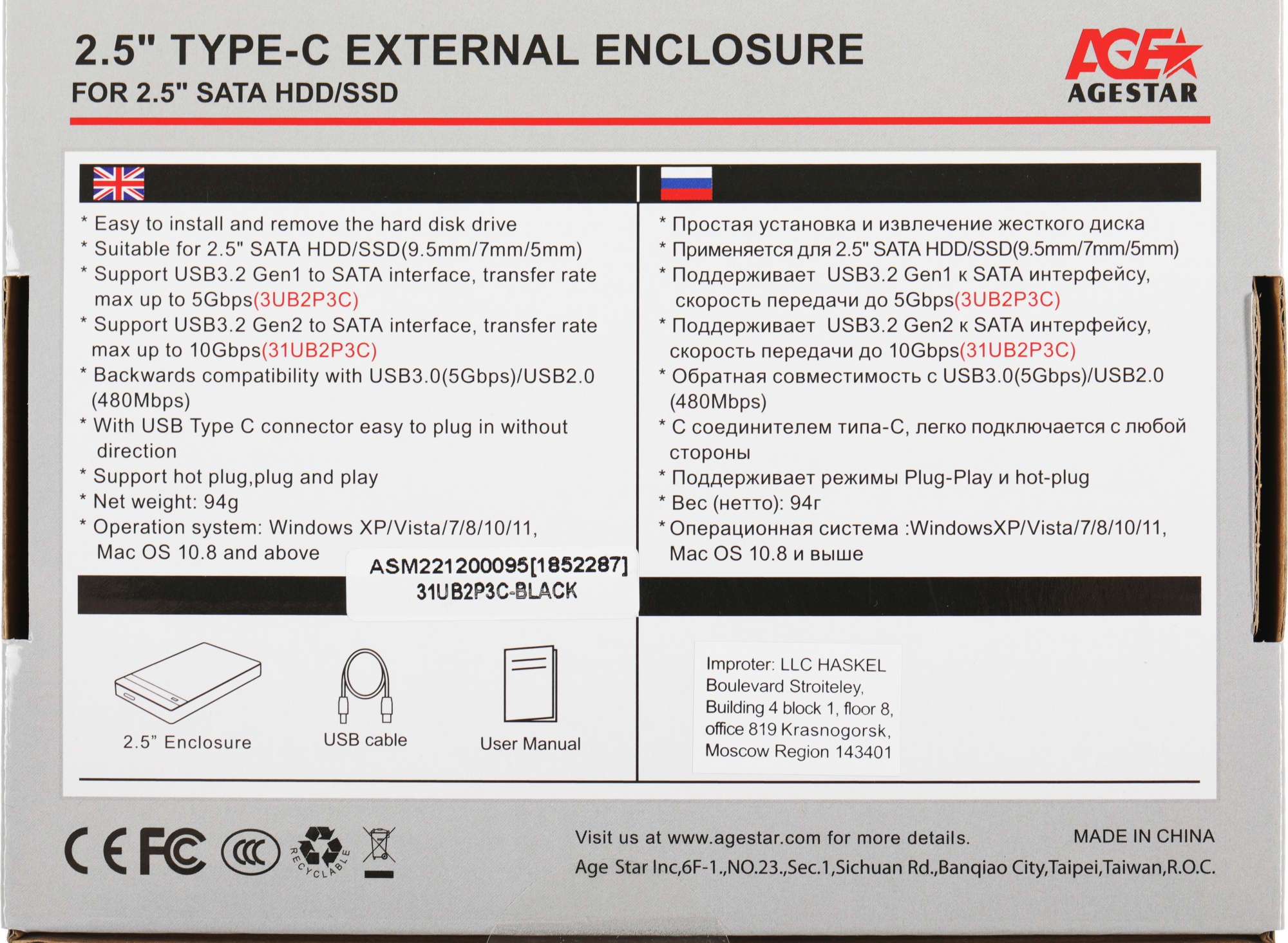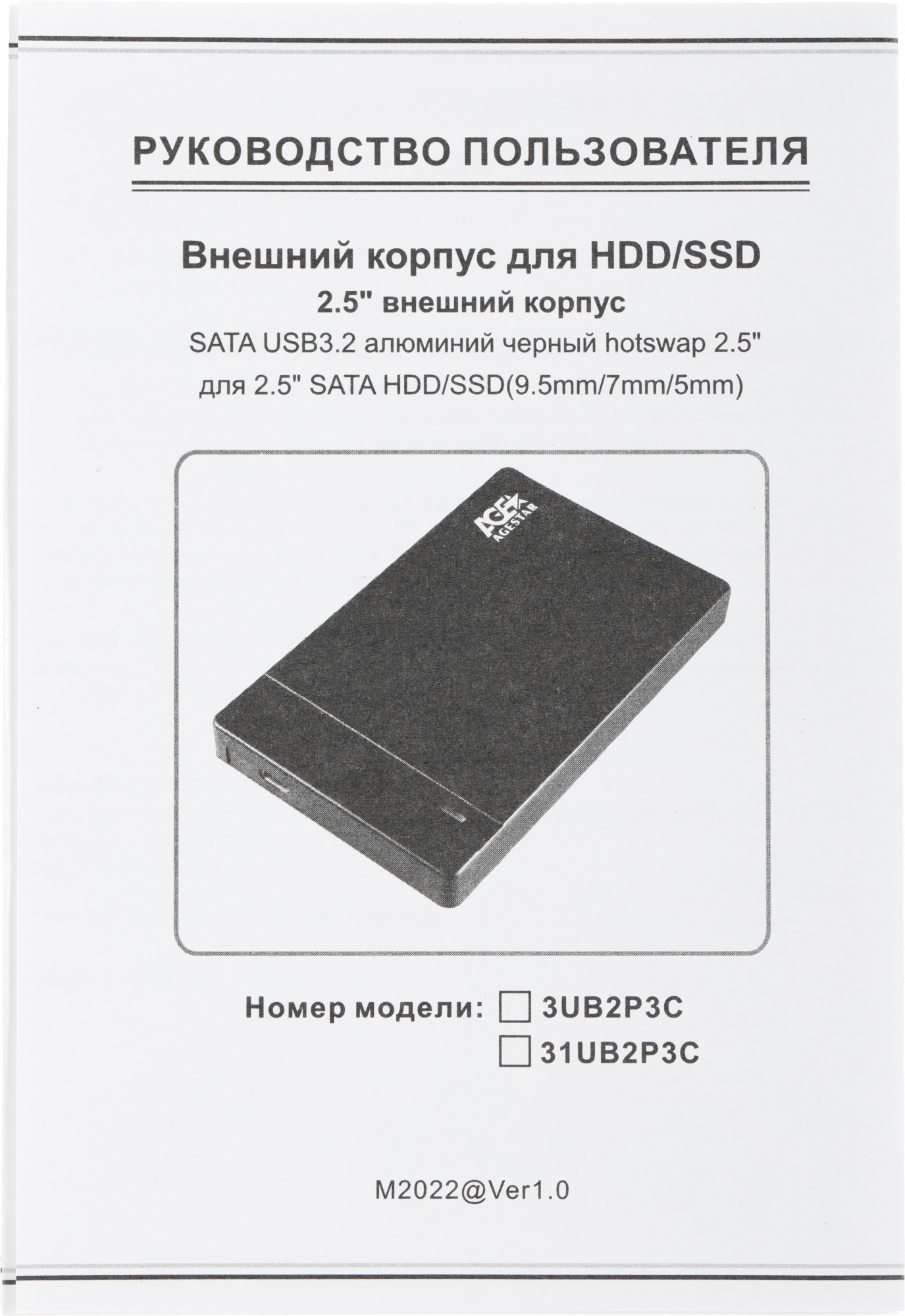 SATA USB3.2 пластик черный hotswap 2.5"