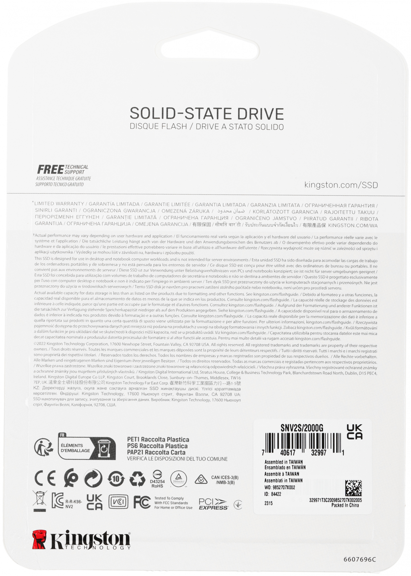 Накопитель SSD Kingston PCIe 4.0 x4 2TB SNV2S/2000G