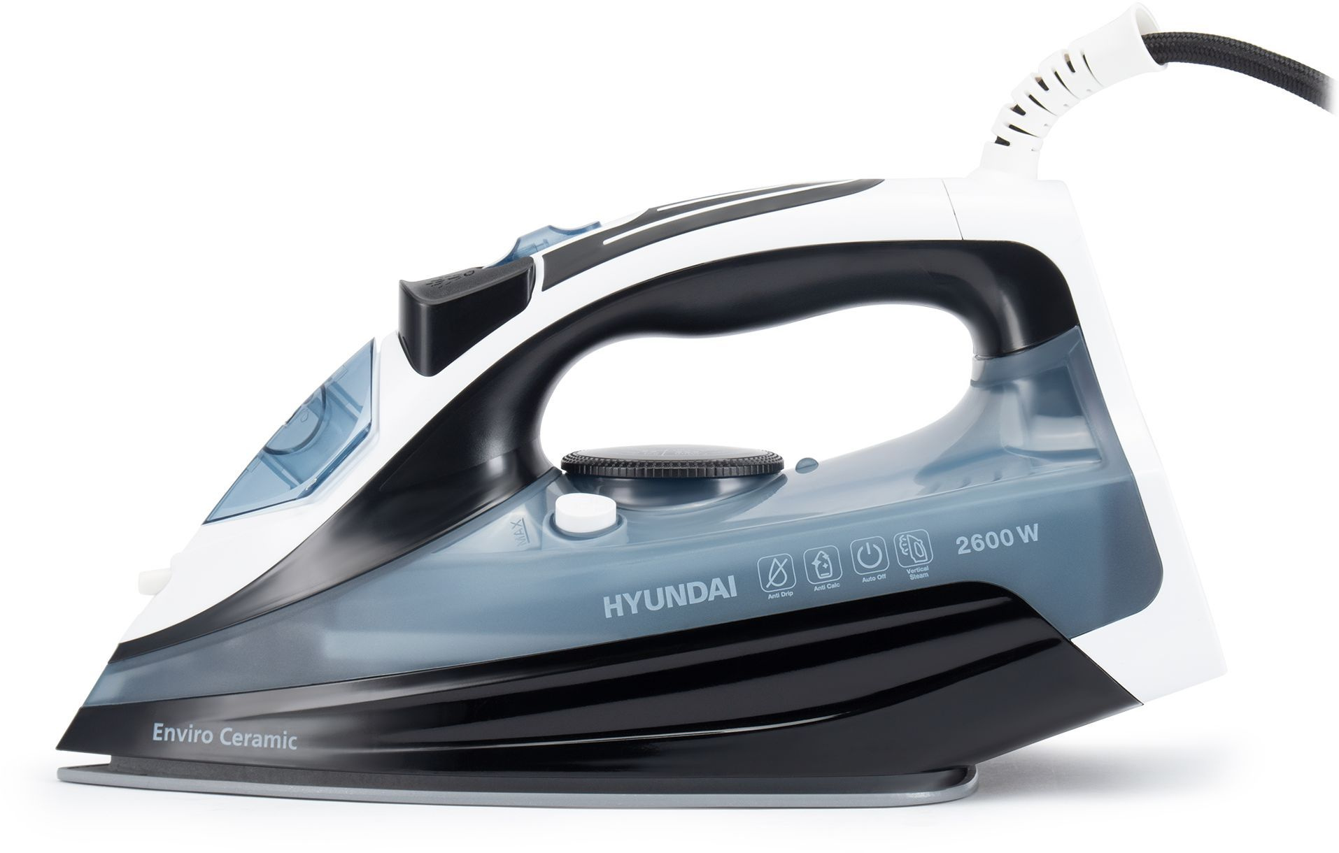 Прибор может автоматически отключаться при длительном бездействии, а также имеет противокапельную систему. С ней на месте, где стоял утюг, не останется ни следа. Шнур Hyundai H-SI01573 имеет длину 2 м и не сковывает движения при глажке. Он крепится к корпусу при помощи шарнирного механизма, снижающего вероятность перекручивания провода и его преждевременного выхода из строя.