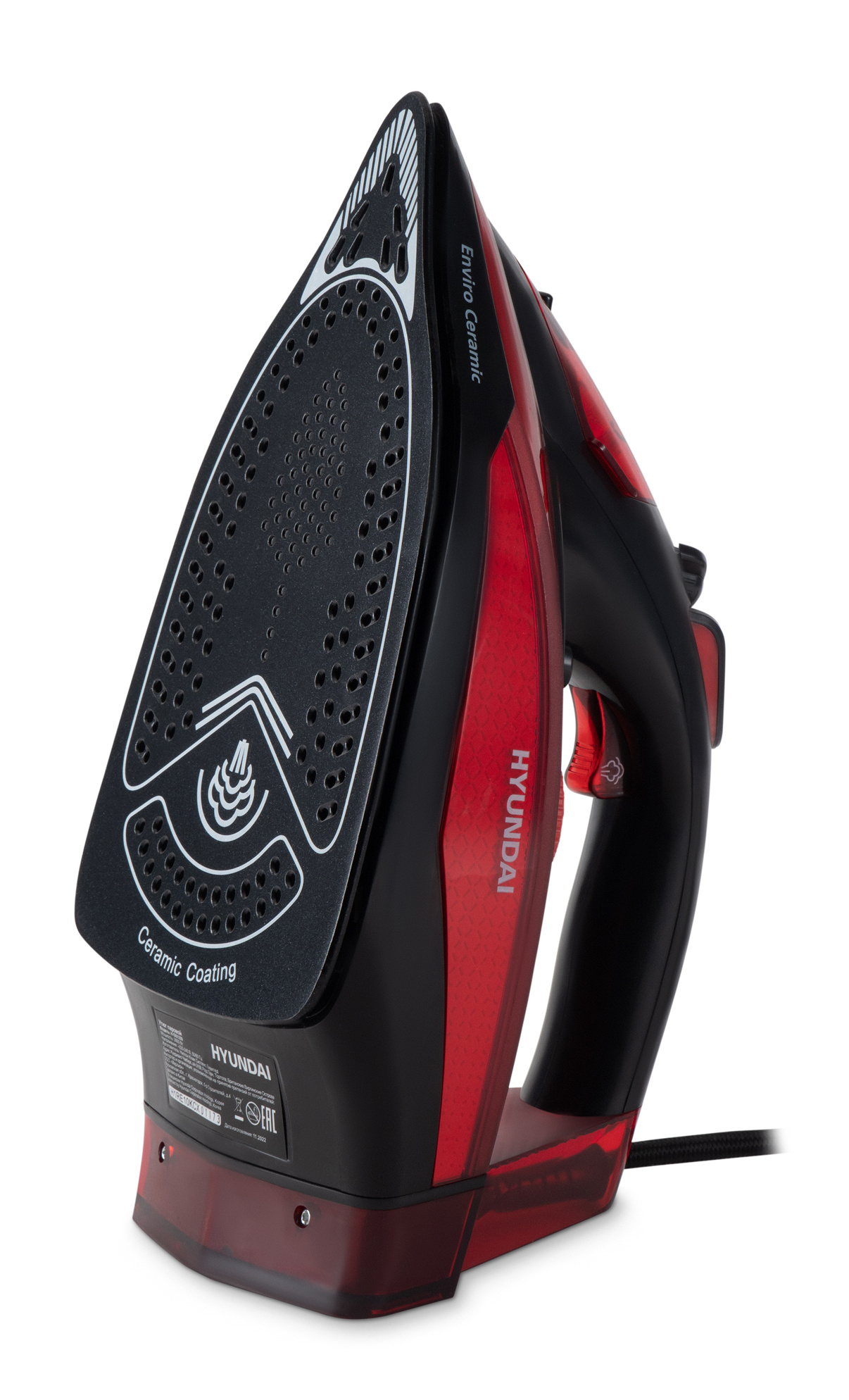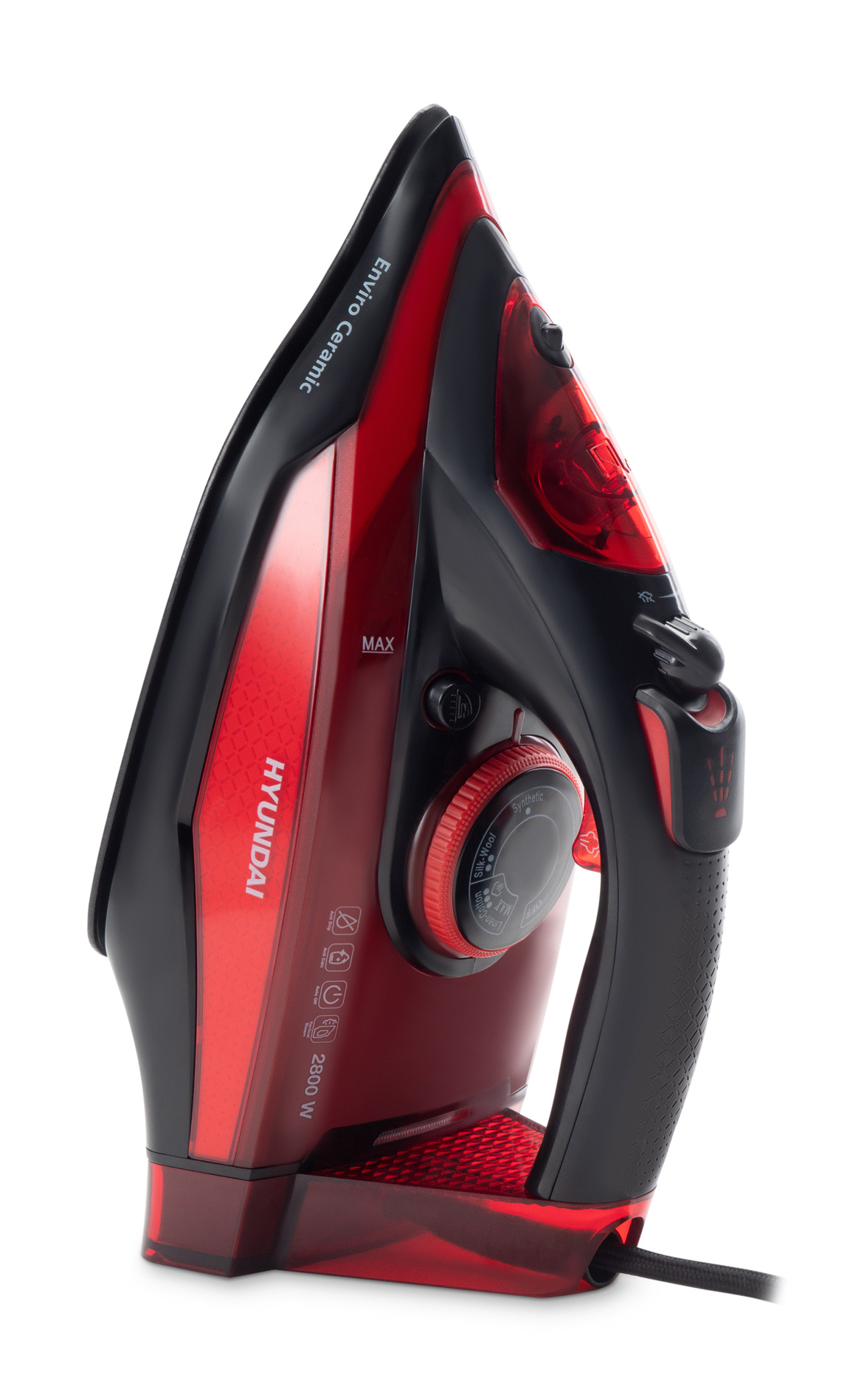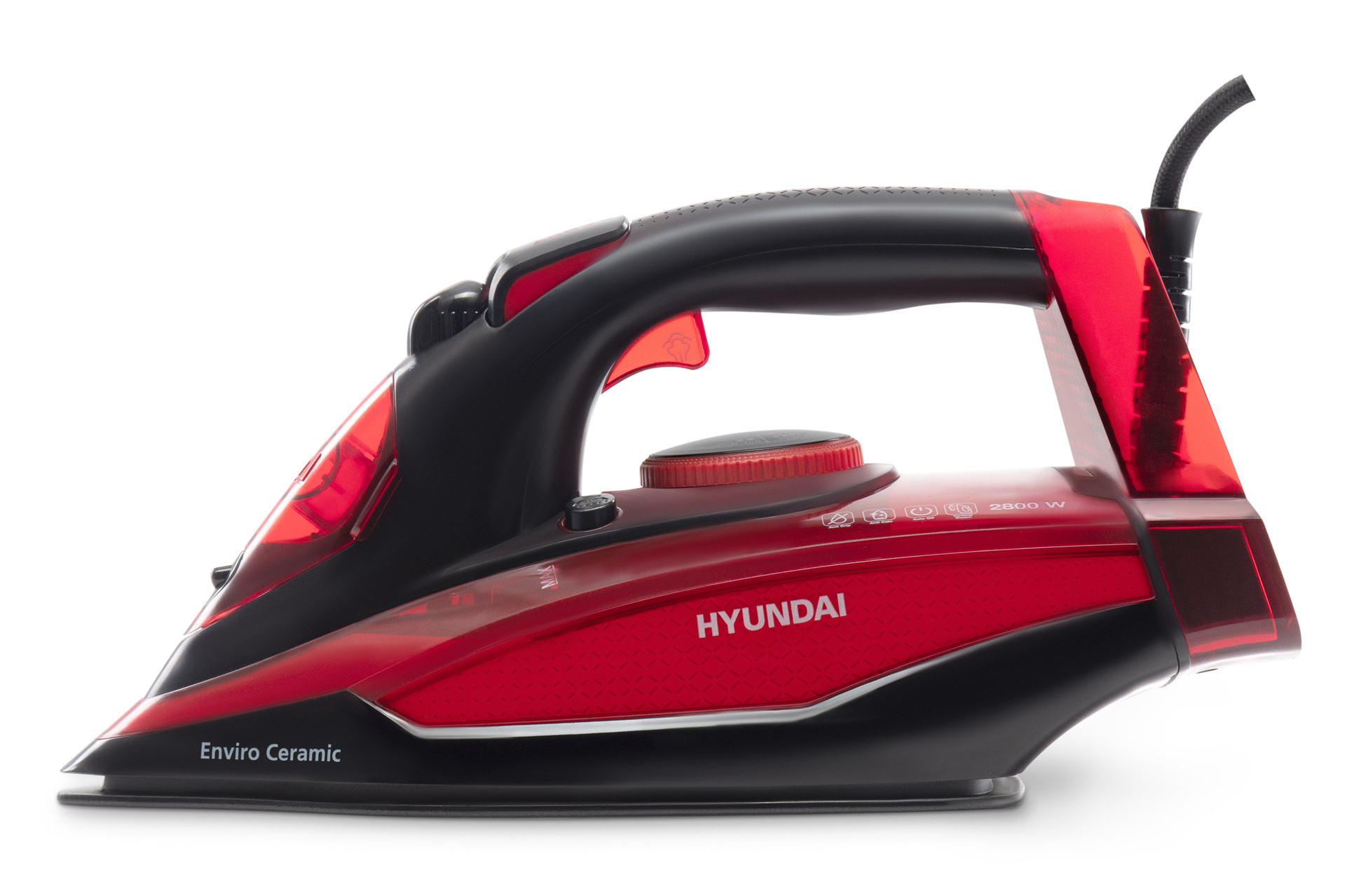 Электрический утюг Hyundai H-SI01339, выполненный в оригинальном красно-чёрном дизайне с полупрозрачными частями, не оставит от складок на одежде и следа.