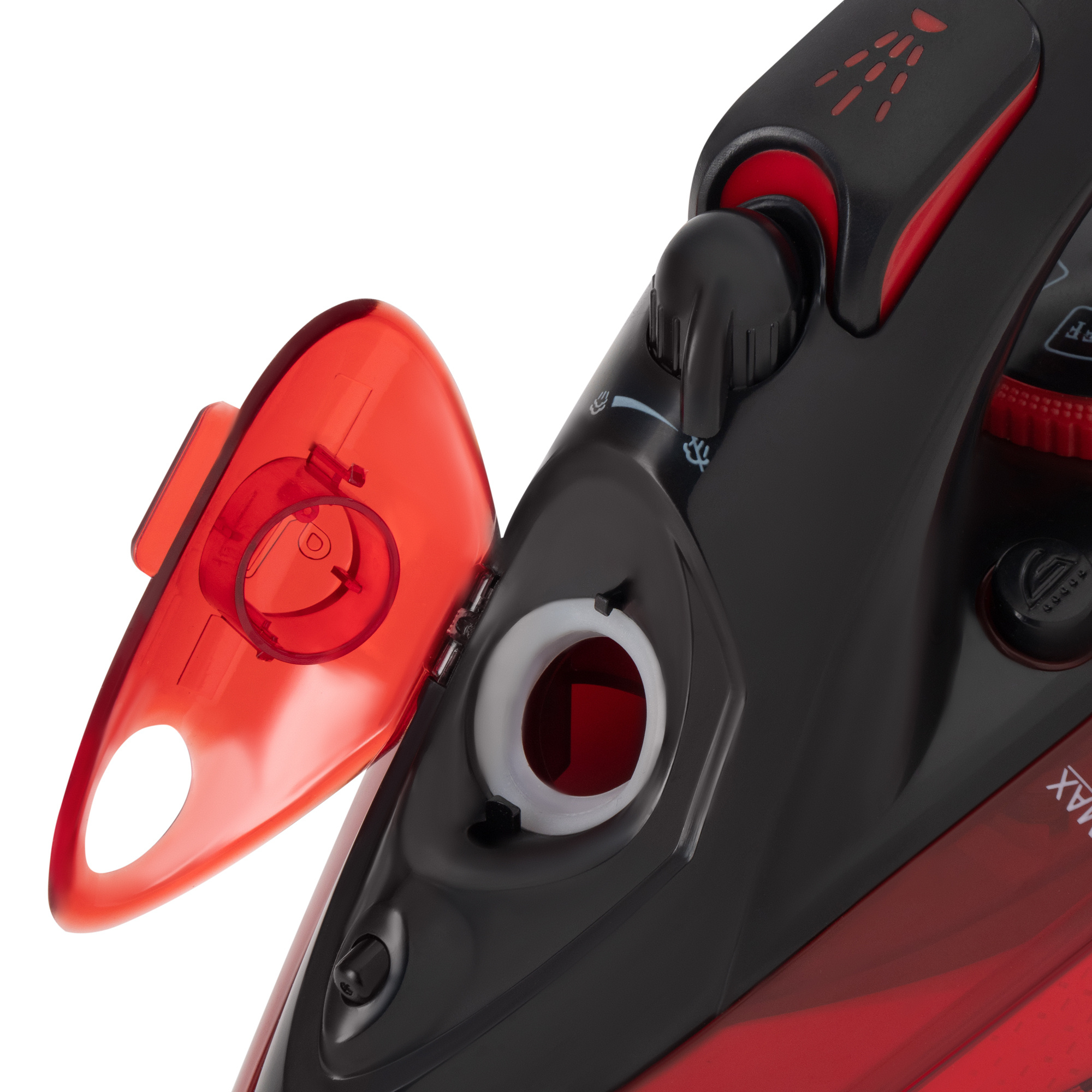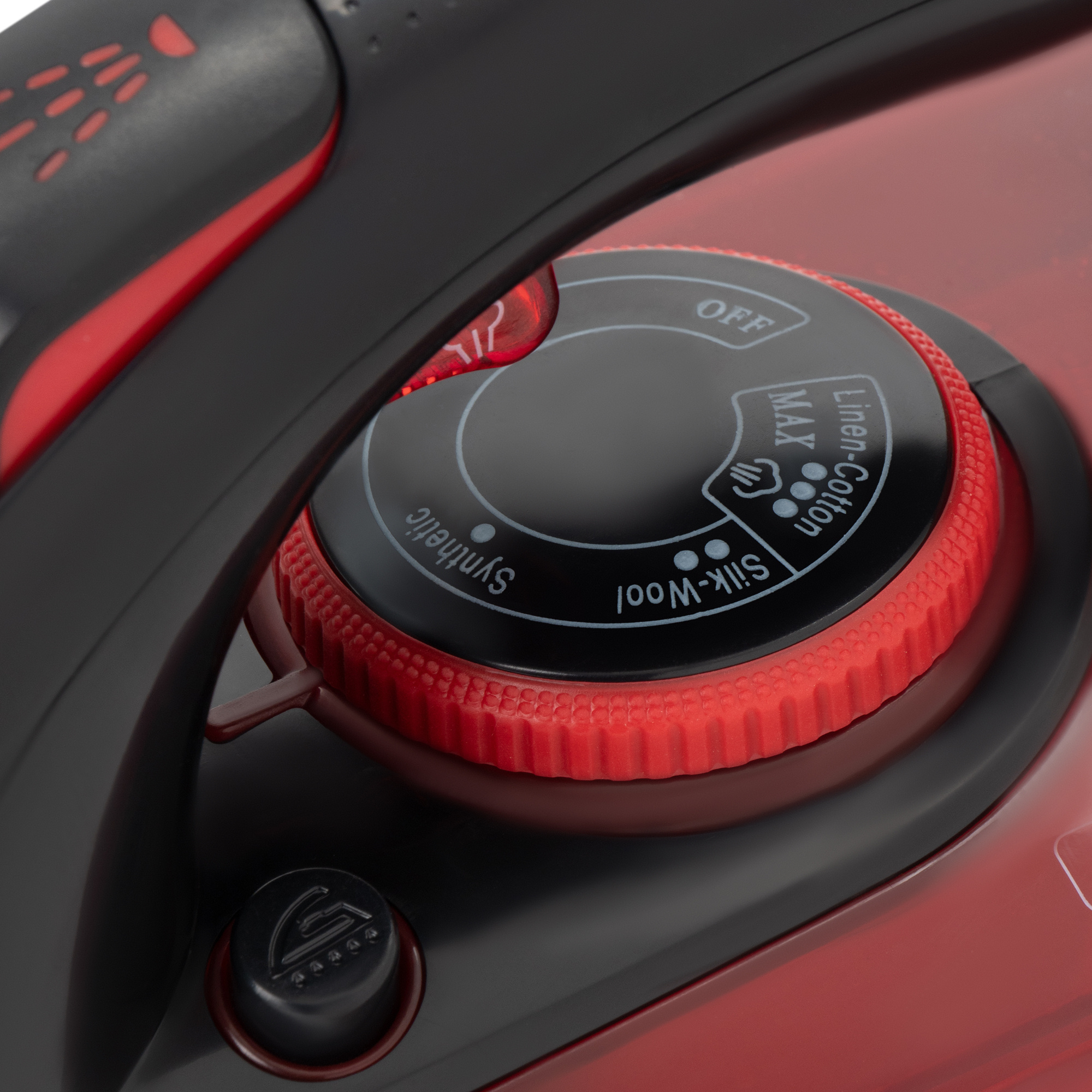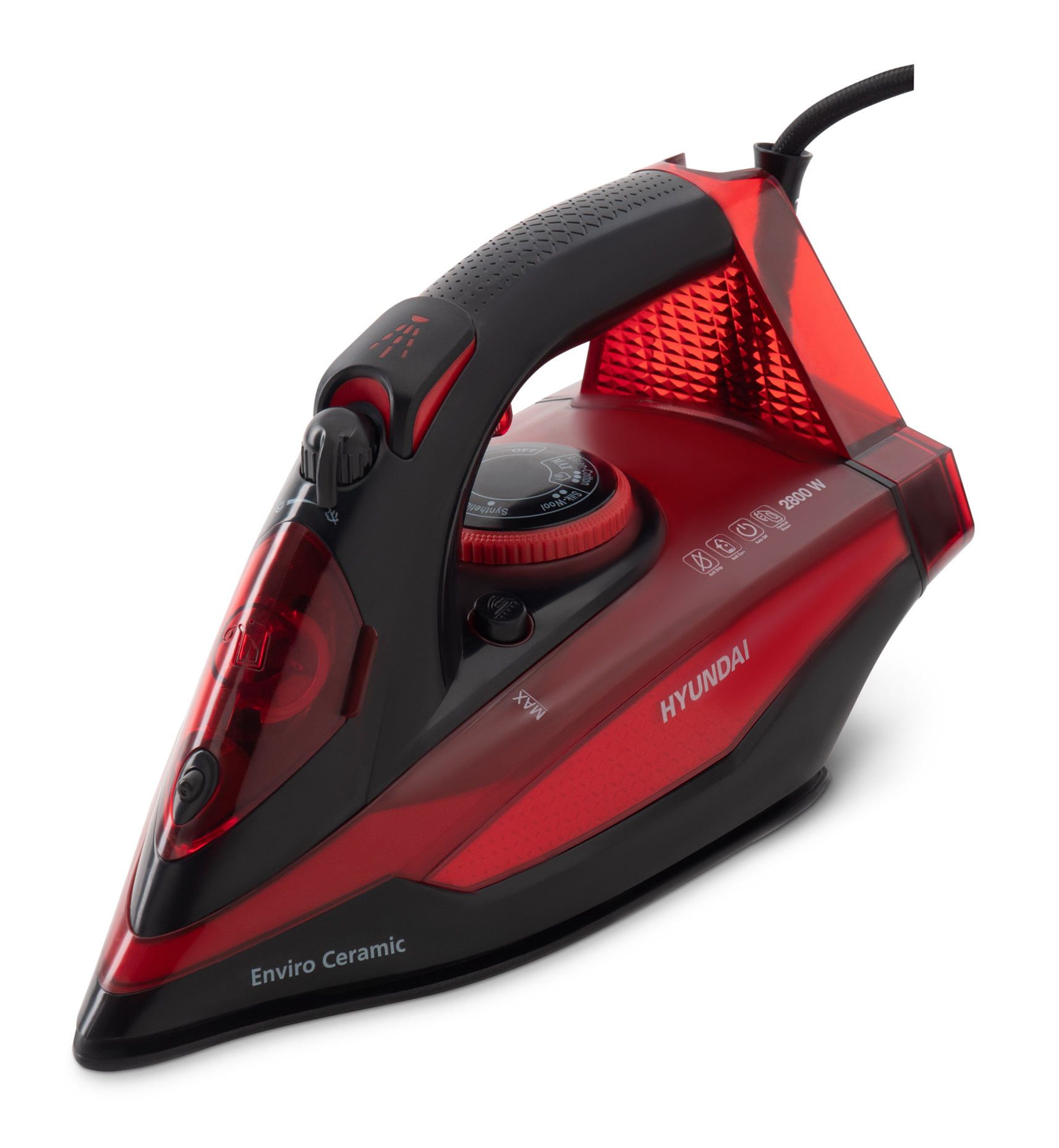 Электрический утюг Hyundai H-SI01339, выполненный в оригинальном красно-чёрном дизайне с полупрозрачными частями, не оставит от складок на одежде и следа.
