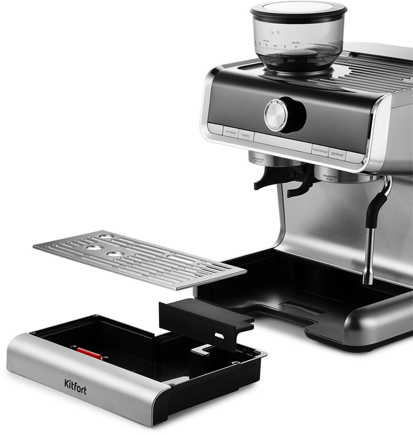 встроенная кофемолка, дисплей, капучинатор, панель для подогрева чашек, съемный дренажный отсек для капель