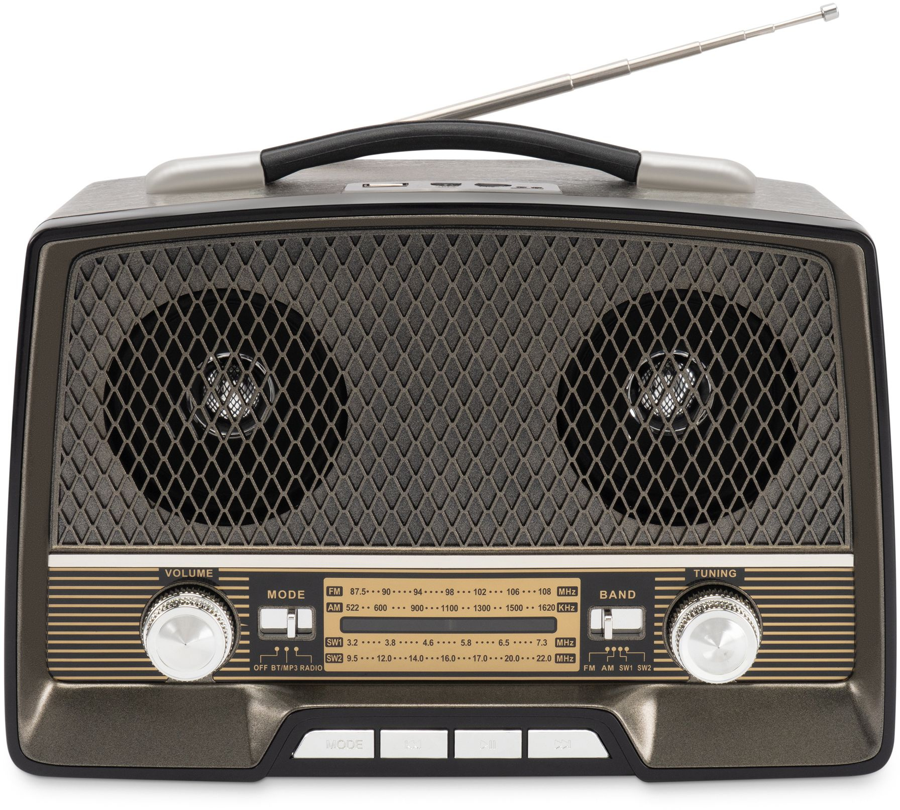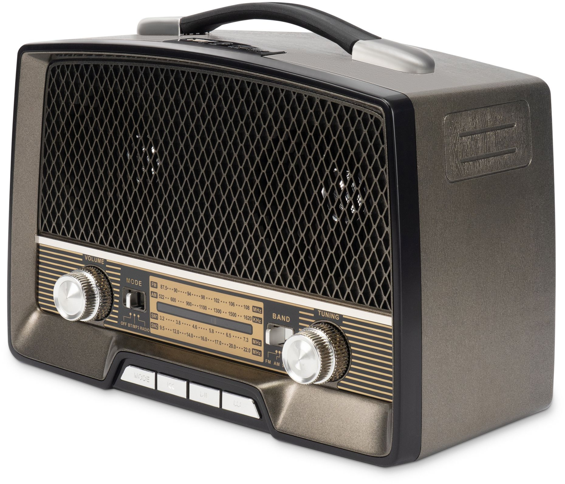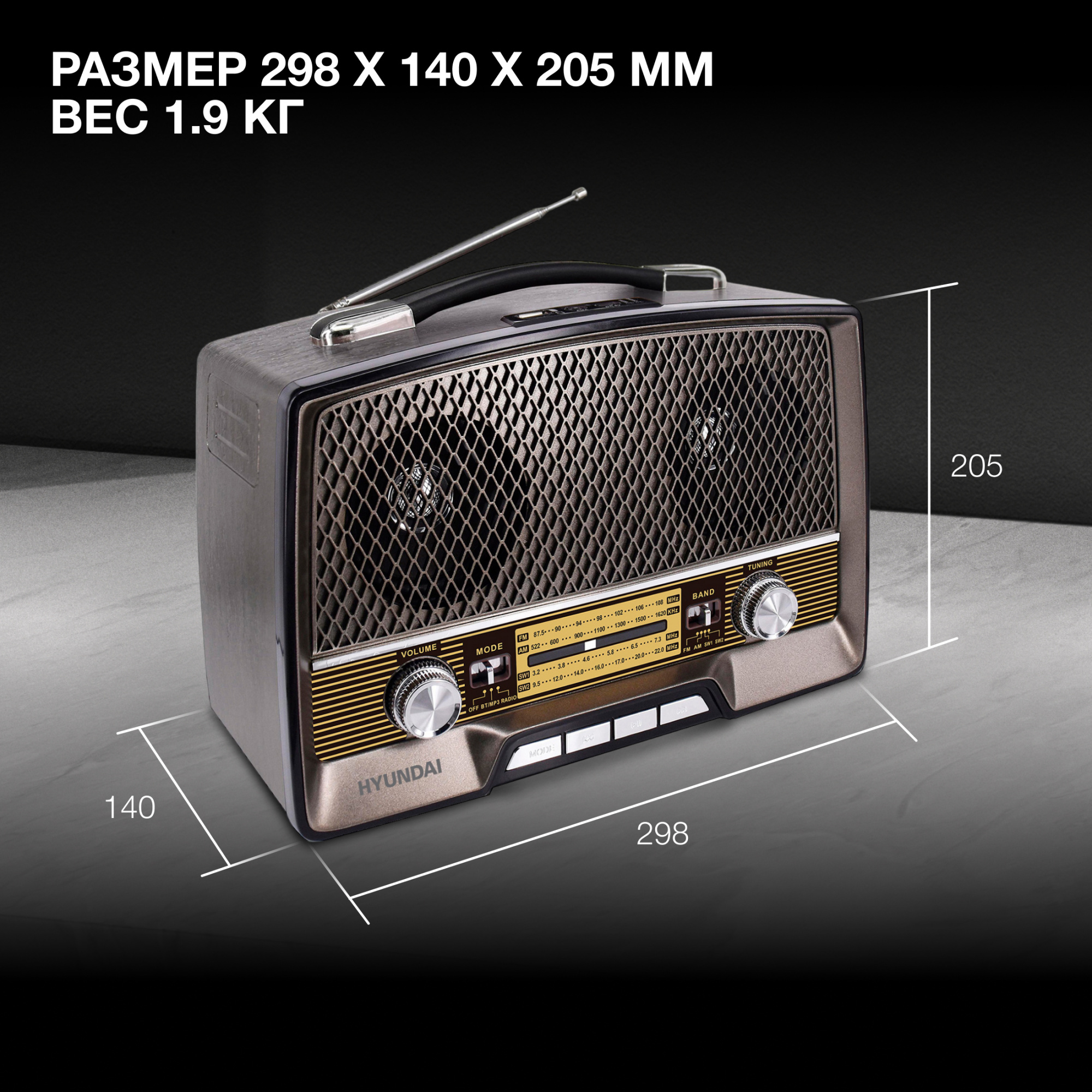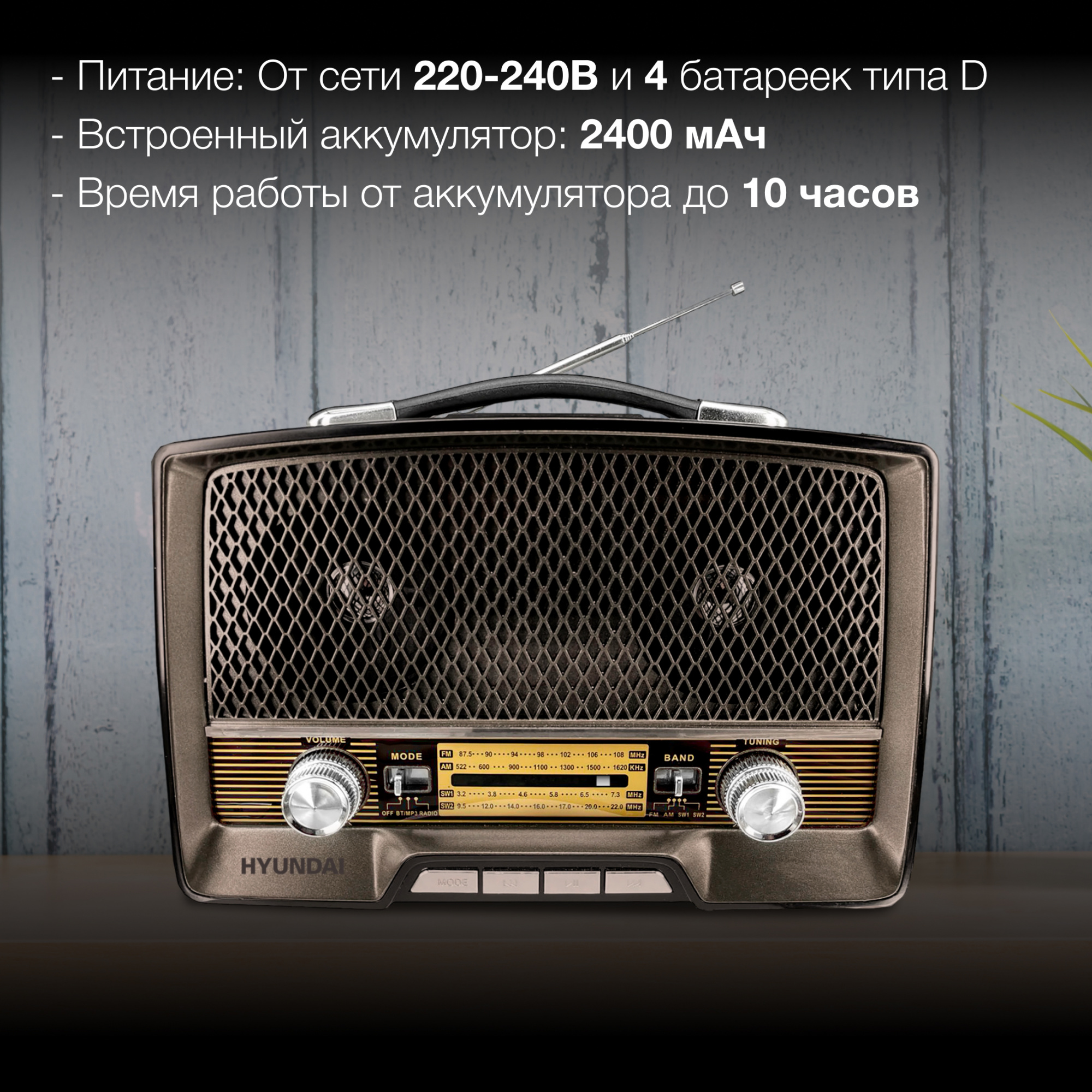 Воспроизводить музыку на HYUNDAI H-PSR156 можно также несколькими способами. Для каждого из них применяются стереодинамики прибора мощностью 12 Вт. Первый – в качестве классического приёмника, который использует три аналоговых диапазона, чтобы ловить радиостанции: FM (87.5-108 МГц), АМ (522-1620 МГц), SW1 (3.2-7.3 МГц) и SW2 (9.5-22 МГц). Второй – посредством встроенного USB-входа версии 2.0 или слота для карт памяти TF ёмкостью до 32 ГБ. Третий подразумевает соединение с данной моделью через интегрированный в неё беспроводной протокол Bluetooth 5.0. В последних случаях HYUNDAI H-PSR156 будет выступать в качестве внешней акустической системы с поддержкой самых распространенных аудиоформатов.