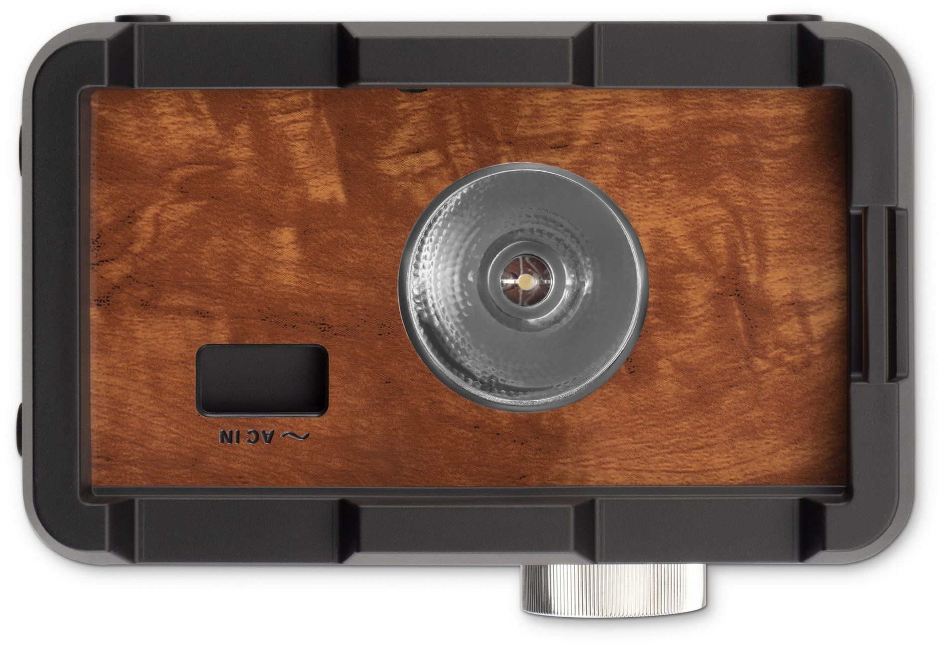 Корпус прибора имеет противоударную конструкцию с защитными жёсткими бамперами по бокам и ручкой для удобства переноски. Он лёгкий, прочный и оснащён интуитивно понятными органами управления на лицевой части, по бокам и сверху. Мощный динамик устройства защищен металлической сеткой. Среди других особенностей данной модели стоит выделить встроенный в неё фонарик, незаменимый на свежем воздухе.