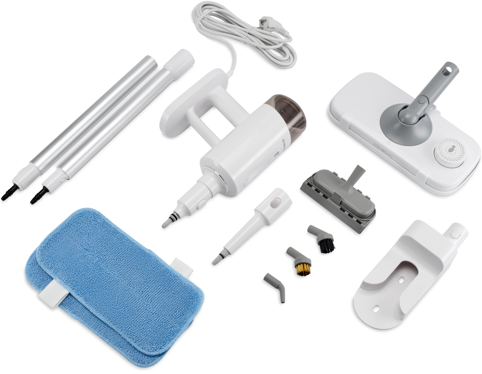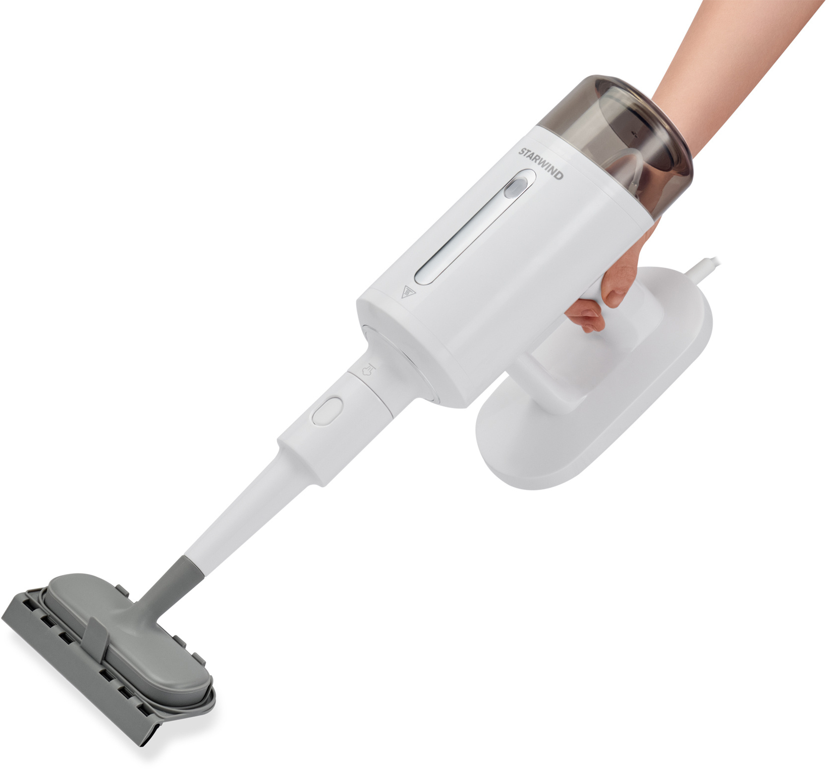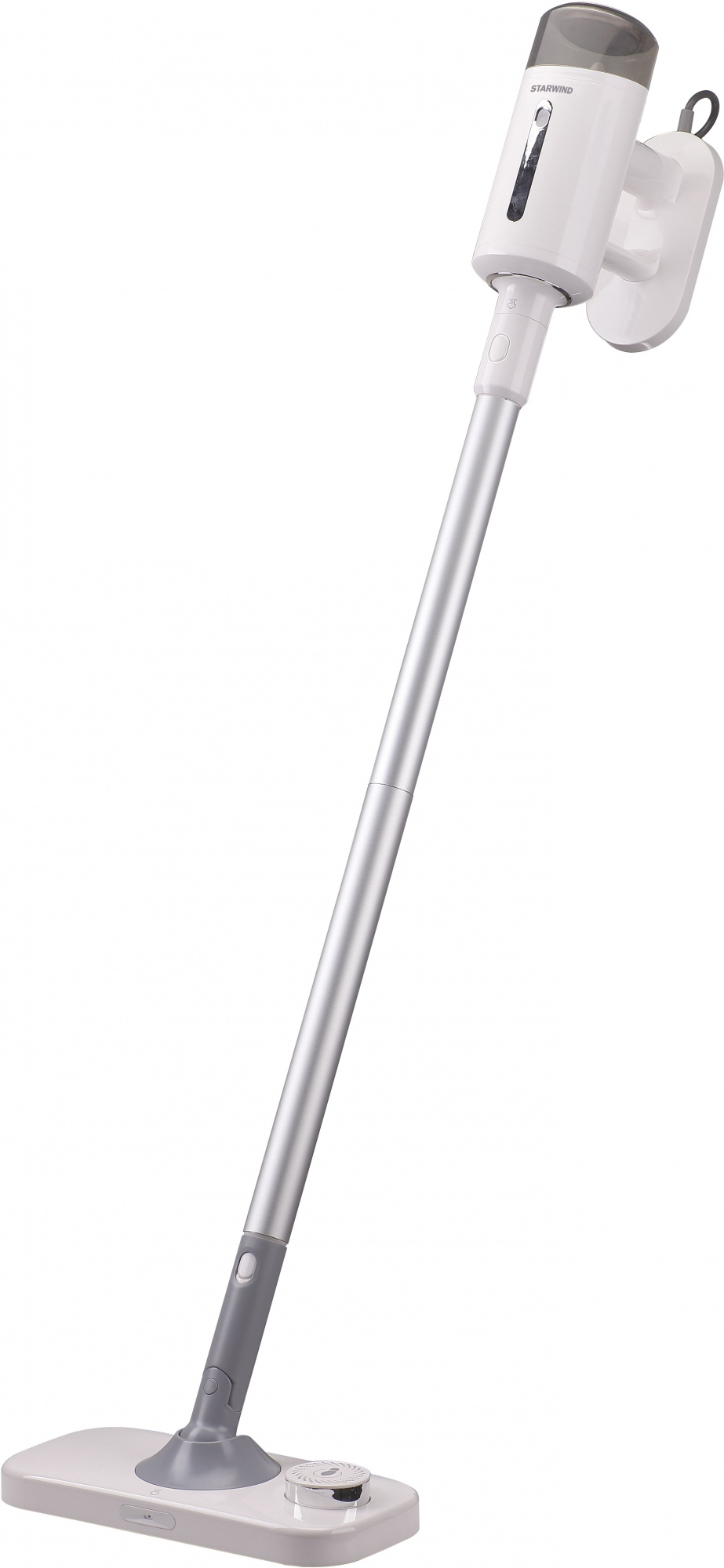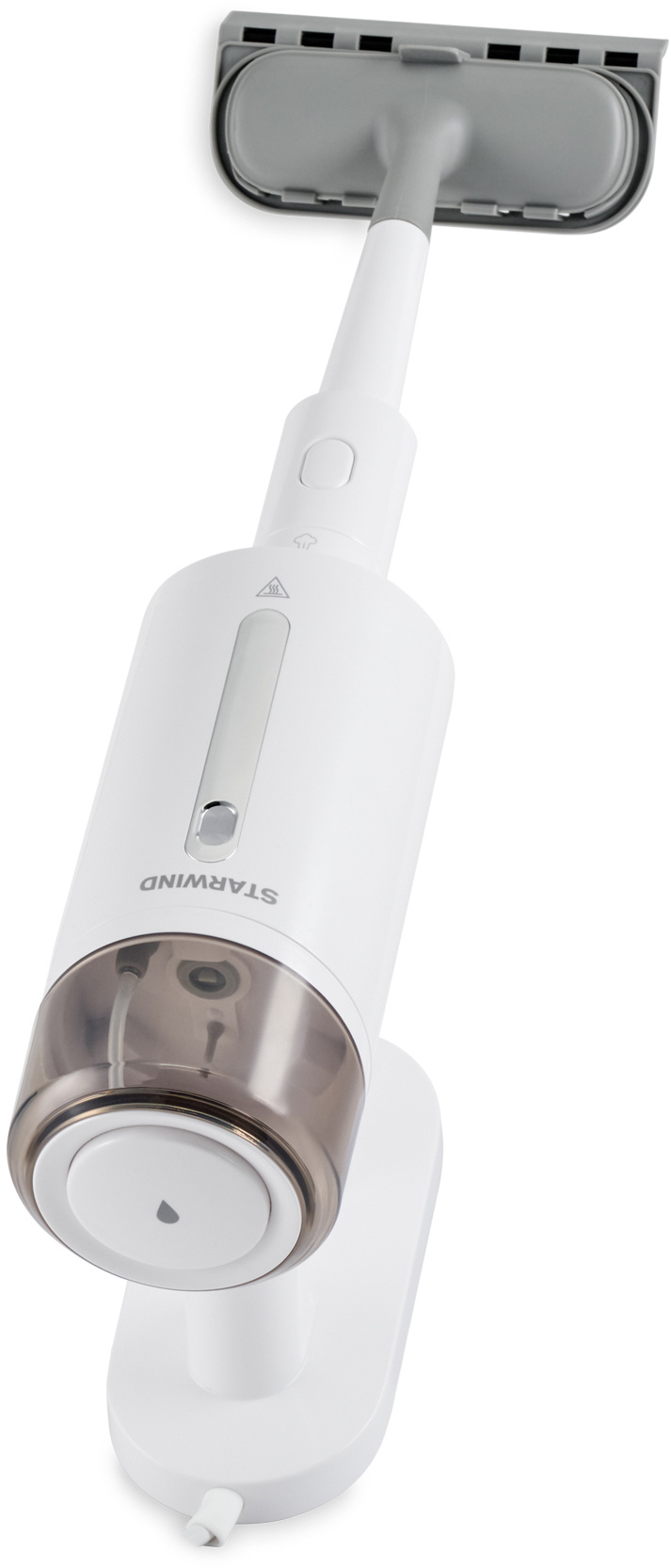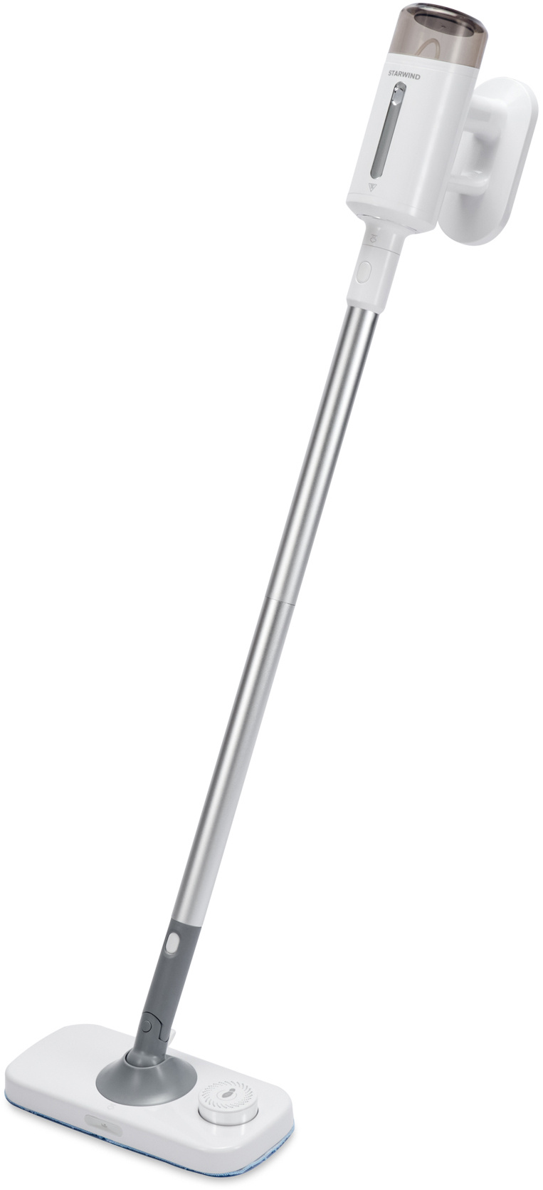 Паровая швабра Starwind SSM5590 оснащена алюминиевой удлинительной трубкой, но её можно использовать и в ручном варианте handstick, что дополнительно облегчает хранение. Шарнирное крепление наконечника позволяет ему вращаться на 180 градусов.