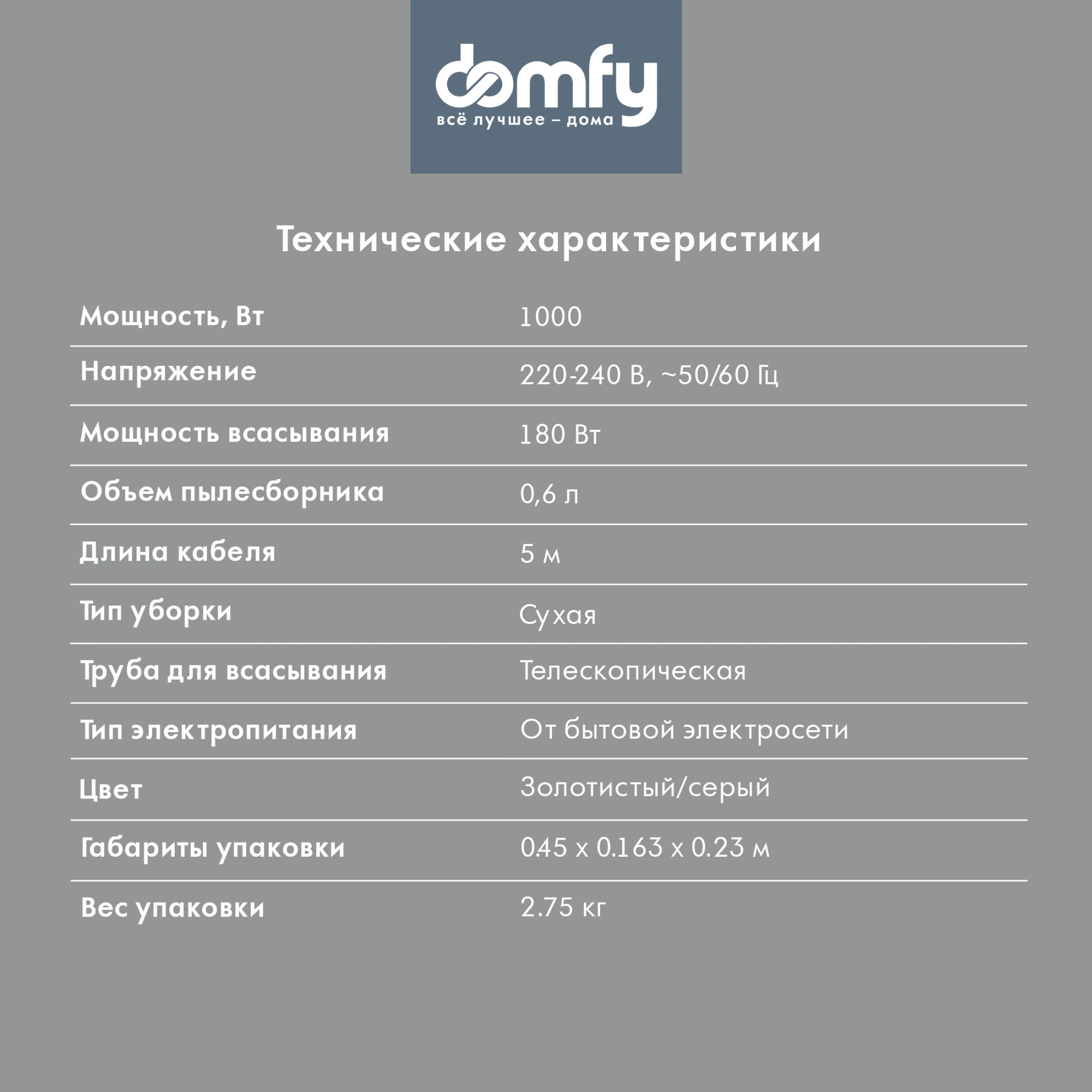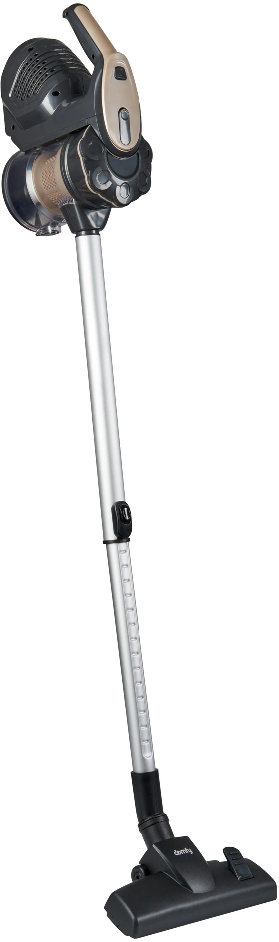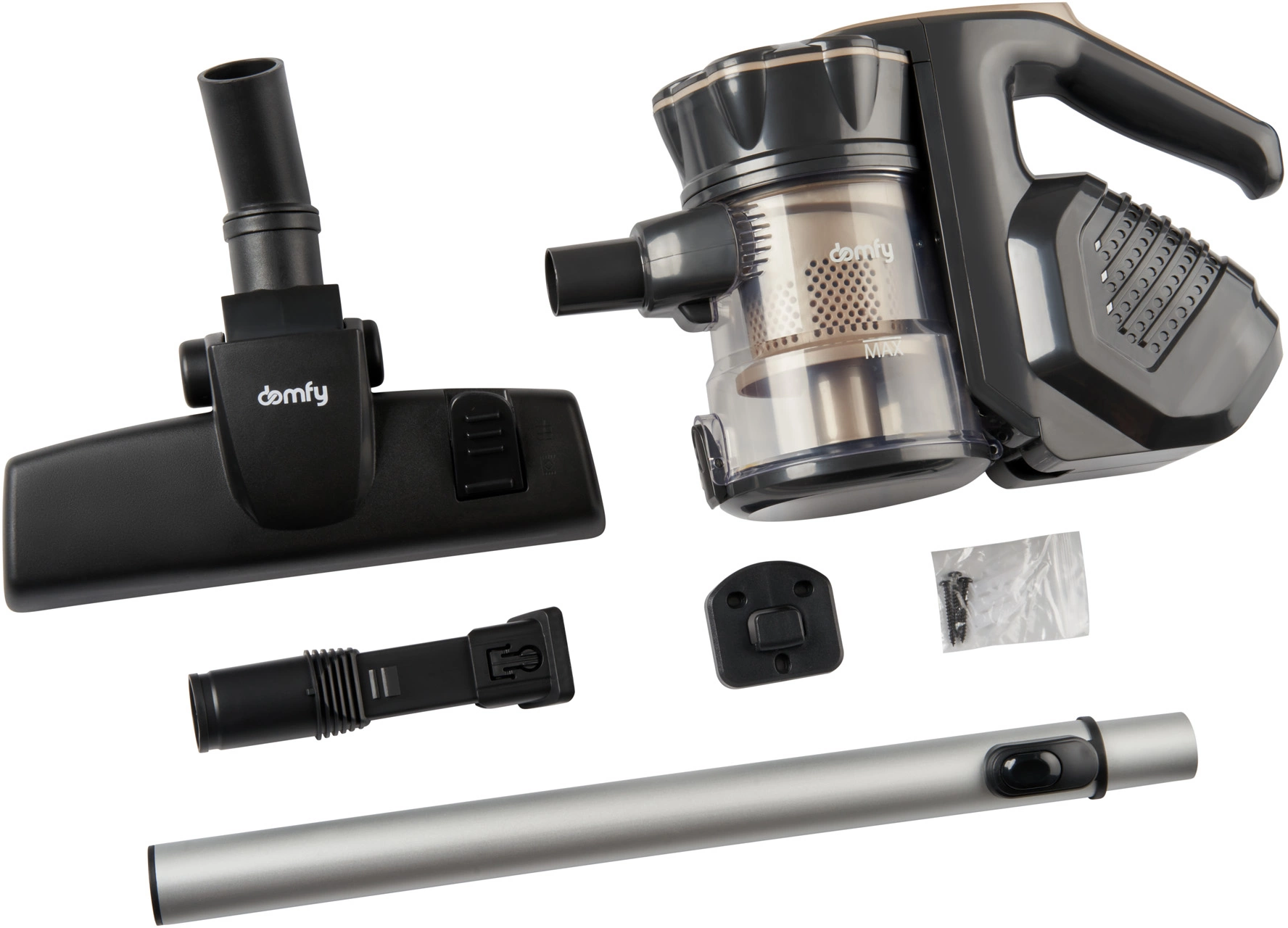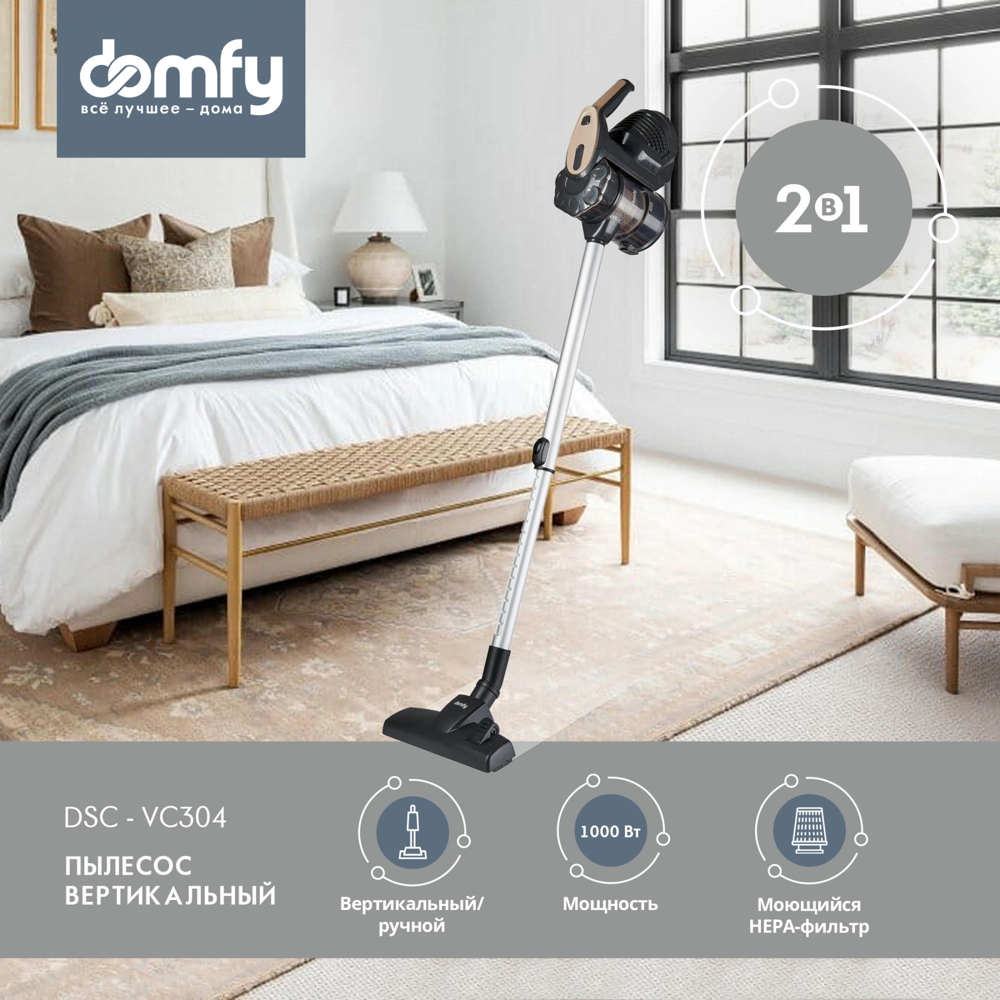 Вертикальный ручной пылесос c циклонным фильтром Domfy DSC-VC304 мощностью 1000 Вт сделает сухую уборку дома и в машине максимально простой и удобной. Модель занимает совсем немного места при хранении, легко собирается, при необходимости мгновенно трансформируясь в ручную модель для сухой уборки мебели. Длинный шнур питания обеспечивает большой радиус действия и не стесняет движений, а телескопическая трубка и сменные насадки позволят удалить пыль даже из самых труднодоступных мест.