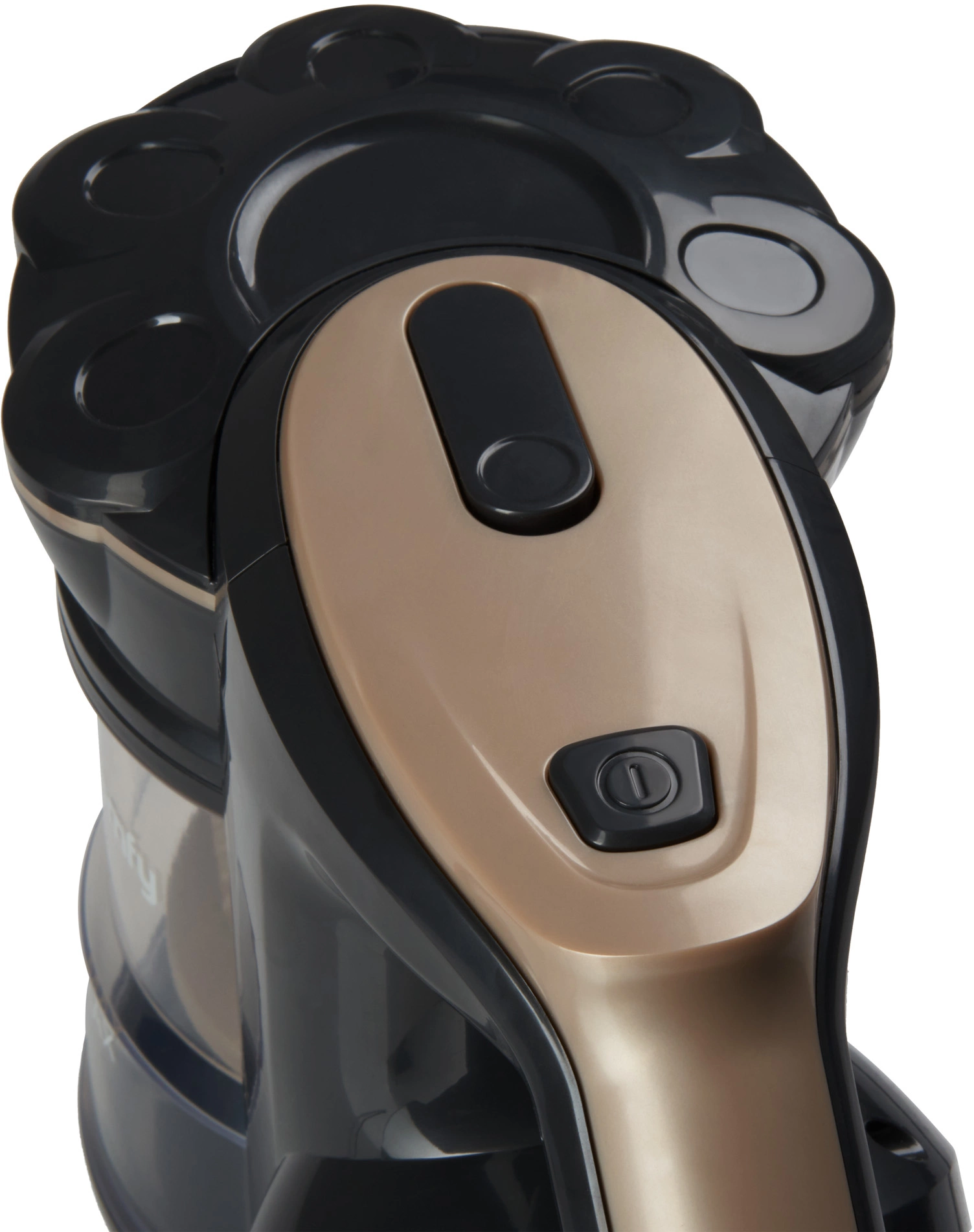 Современный практичный дизайн. Эргономичная рукоятка с удобно расположенной кнопкой включения, перпендикулярное расположение пылесборника и стильная комбинация цветов придают модели высокотехнологичный и стильный внешний вид.