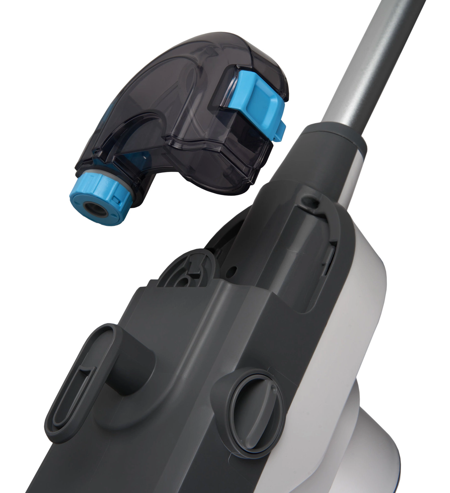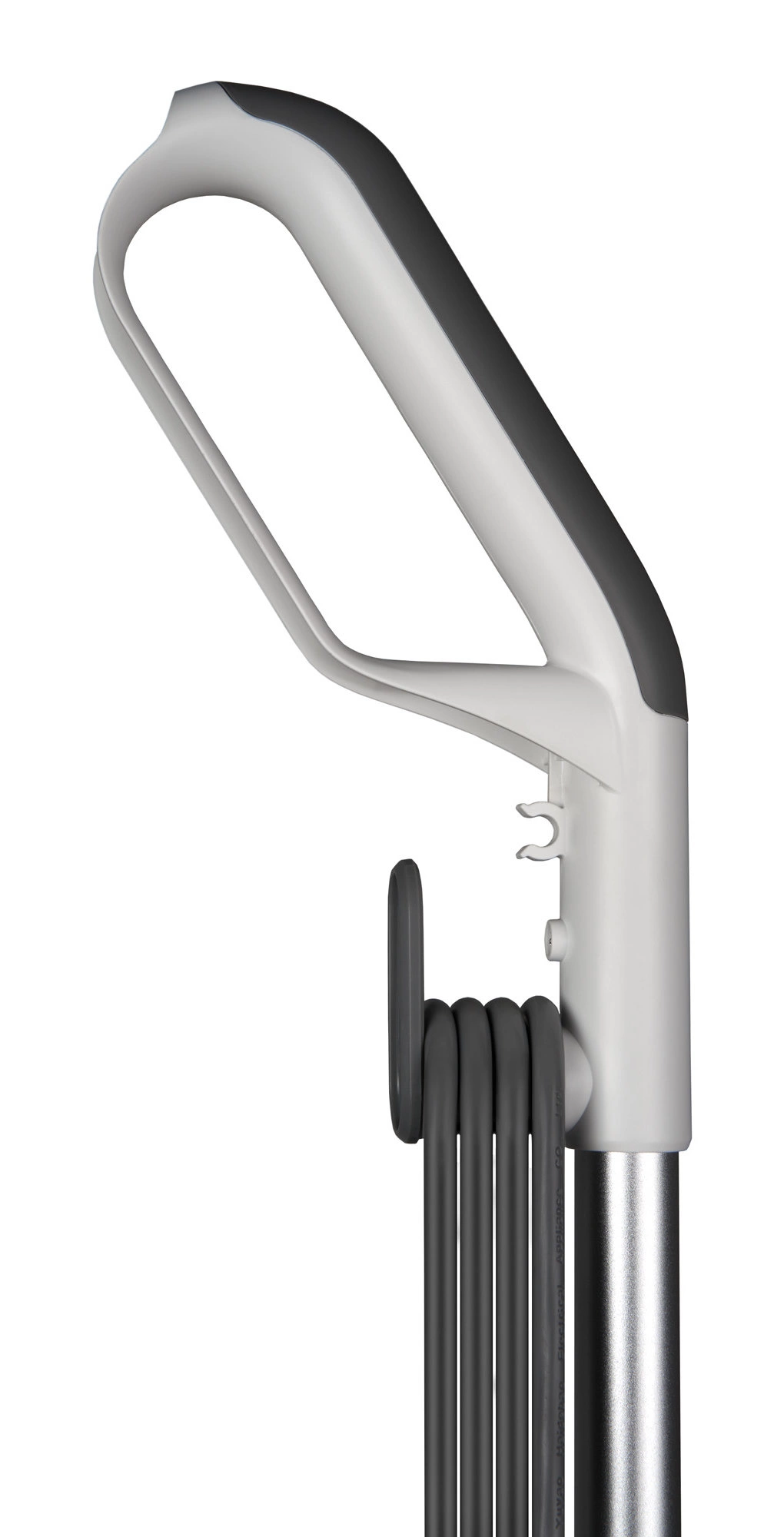 Крючки для шнура. Верхнее поворотное и нижнее статичное крепления способствуют удобному размещению шнура и его снятию со швабры.