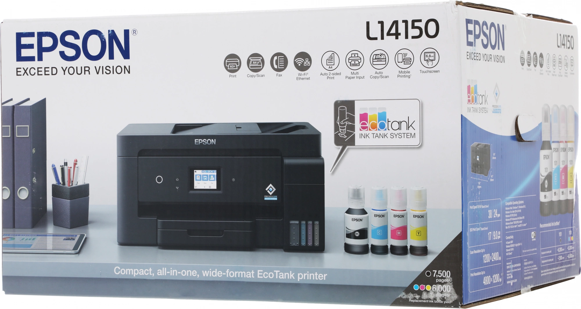Принтер-сканер-копир-факс, кабель питания, CD с программным обеспечением и драйверами для Windows и macOS, руководство по установке, гарантийный талон, контейнеры с чернилами (черный, голубой, пурпурный, желтый).