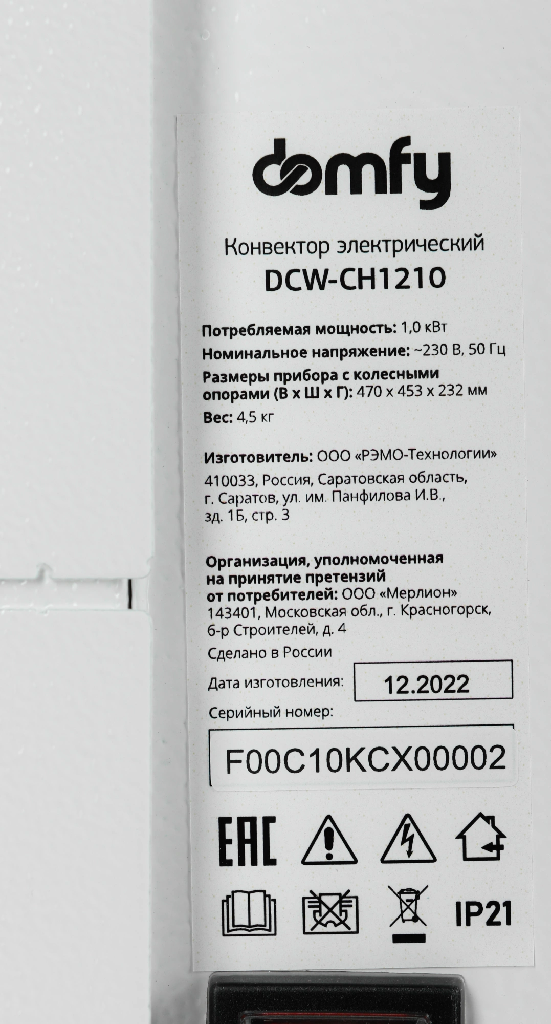Электрический конвектор Domfy DCW-CH1210 мощностью 1000 Вт сохранит и поддержит комфортную температуру в доме в любую погоду. Тепловой прибор при грамотном размещении равномерно отапливает помещение площадью до 15 кв. м.