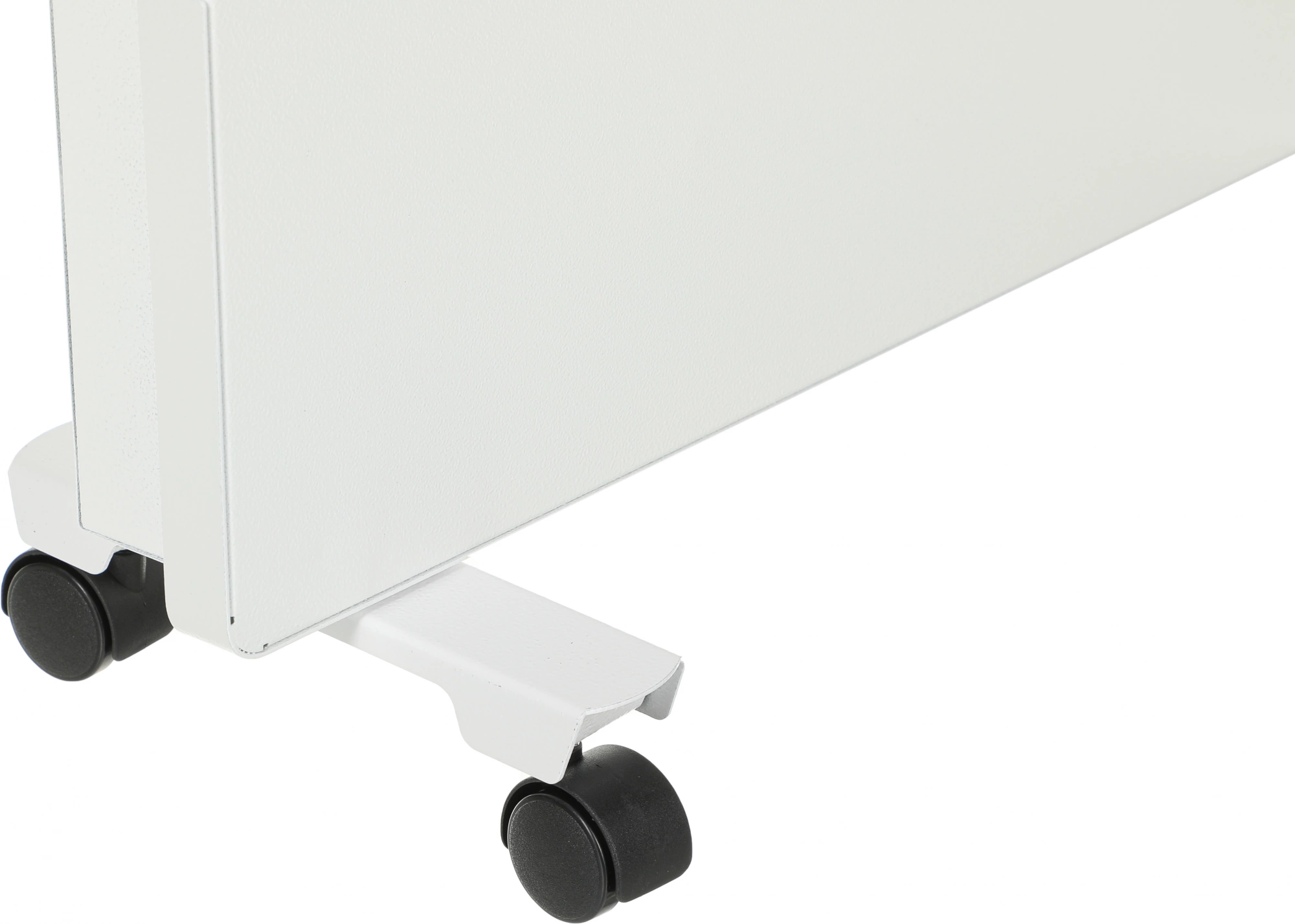 Конвектор оснащен эргономичными колесиками, поэтому, несмотря на размеры, его можно легко и безопасно перемещать по офису или квартире. Напольное покрытие останется целым и невредимым. Для установки обогревателя нужна лишь электрическая розетка. Никакого нестандартного монтажа или подведения воды не понадобится.
